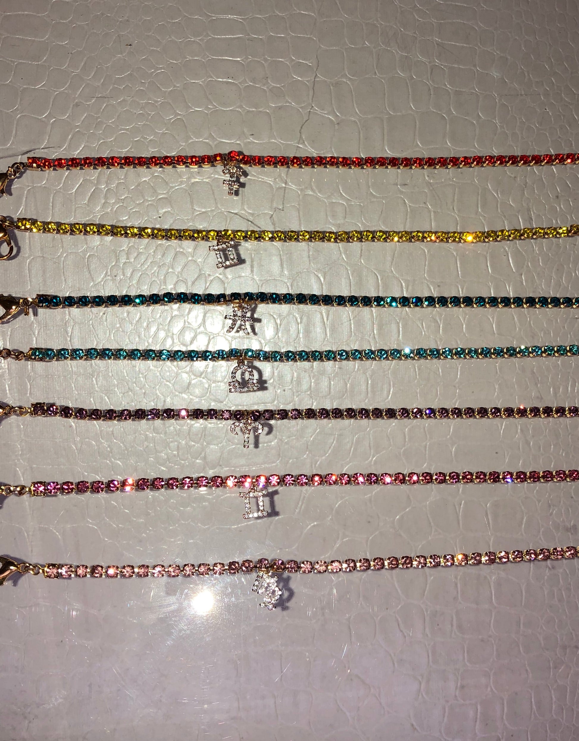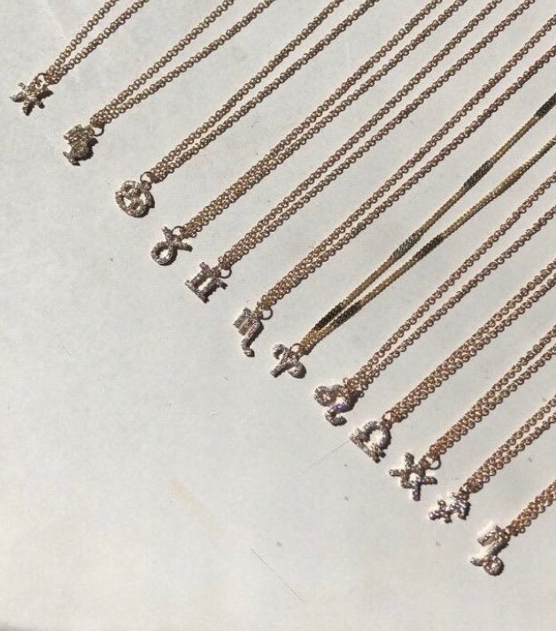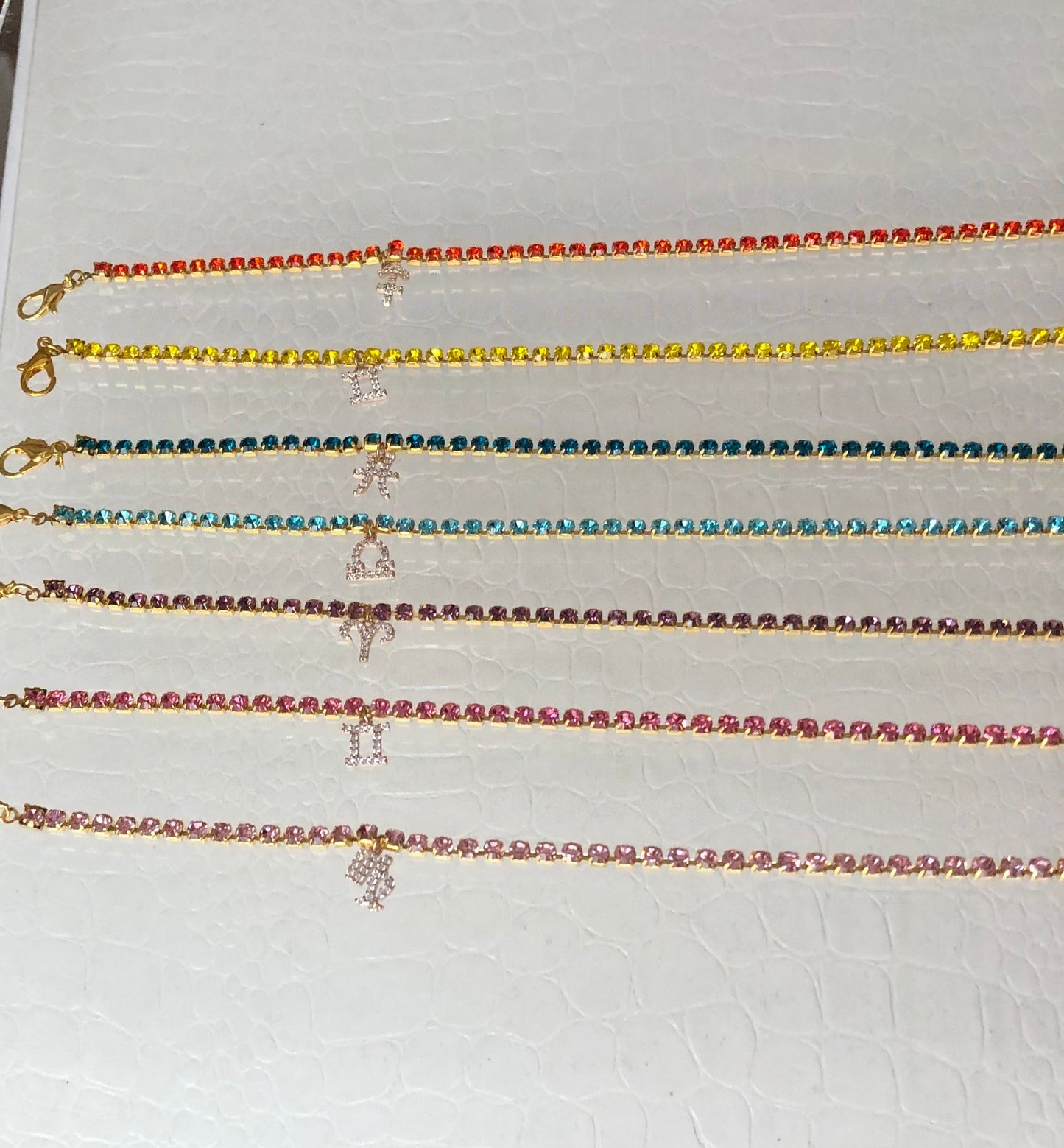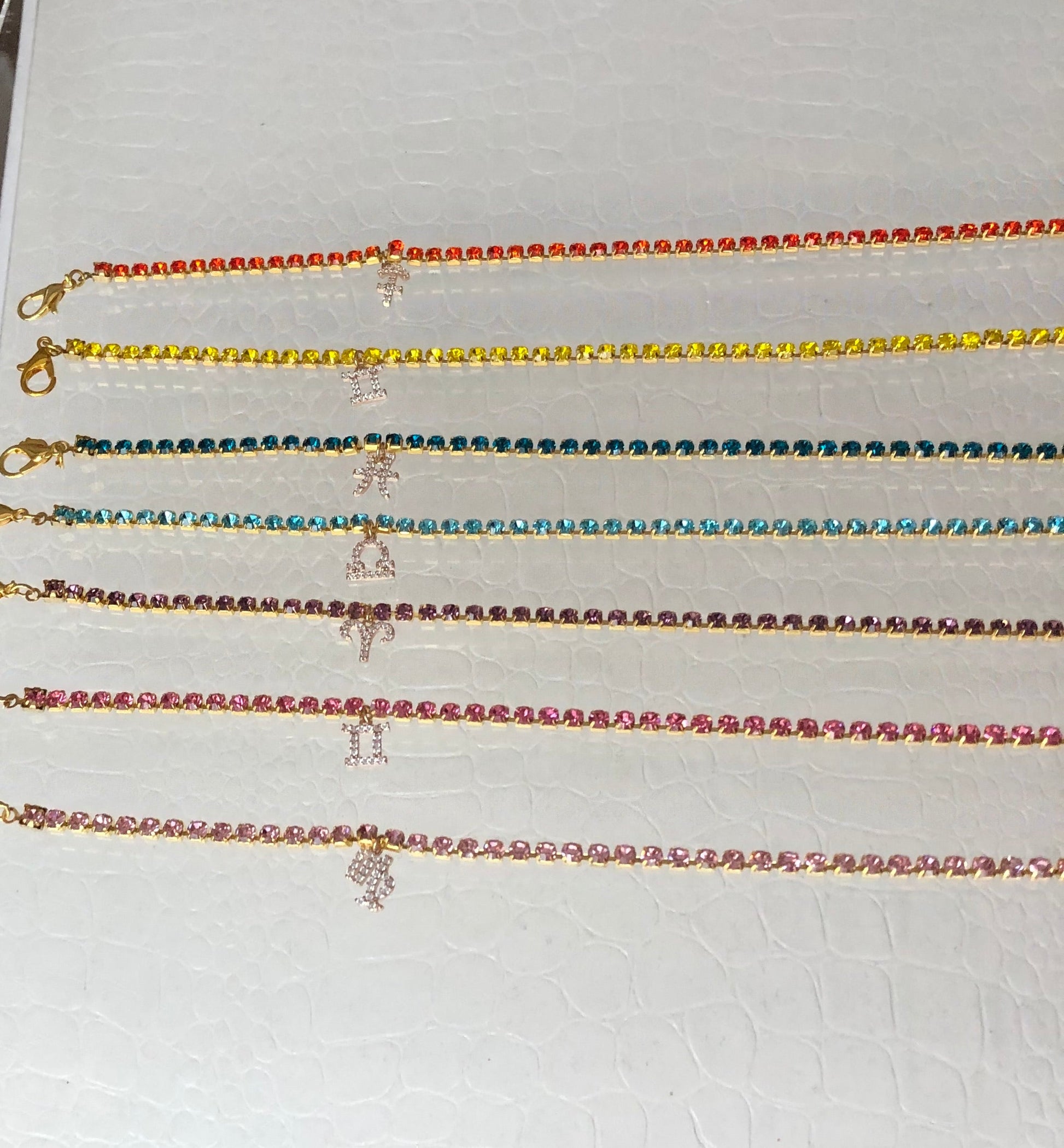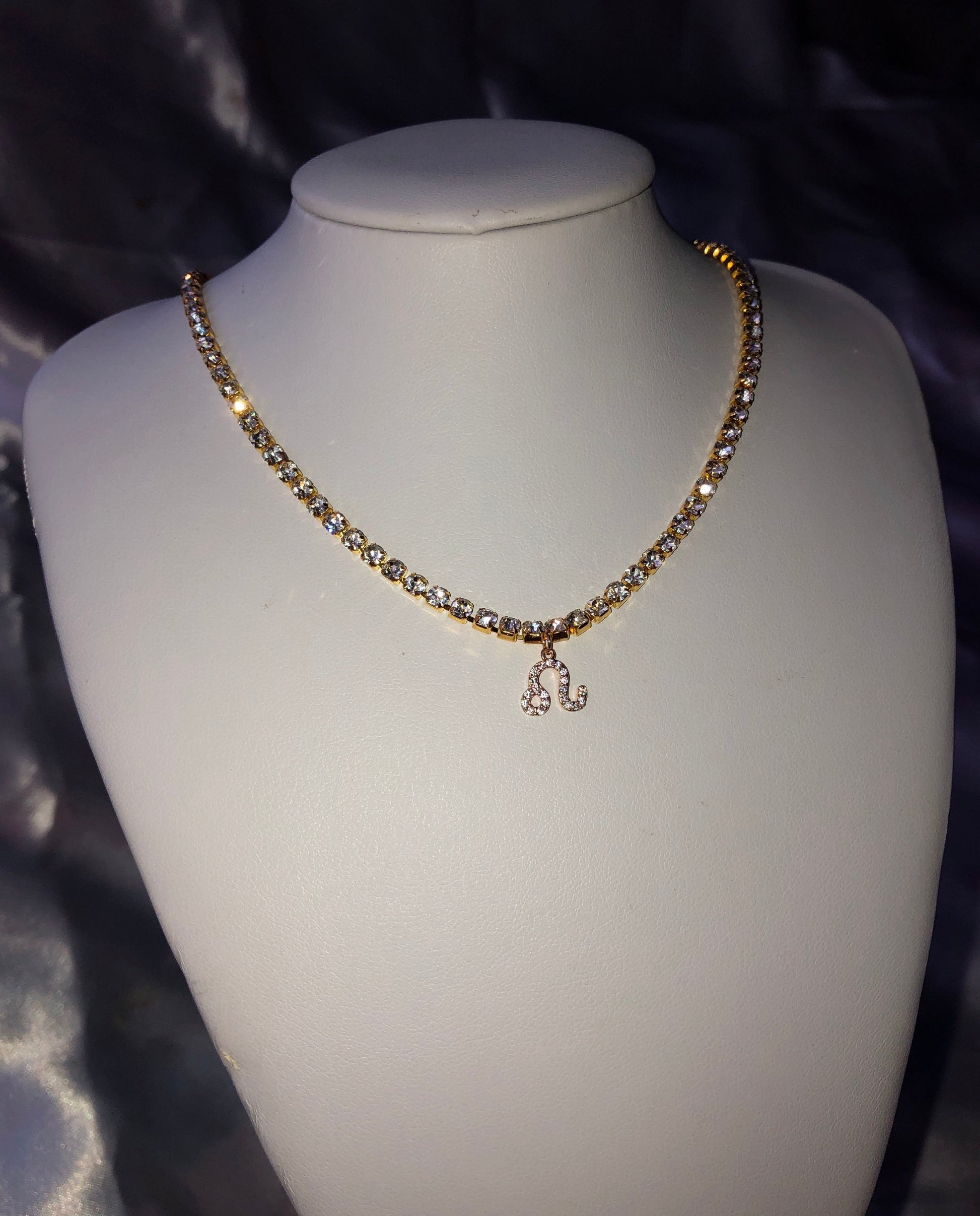 Beautiful handmade rhinestone necklace with cz zodiac sign pendant detail.