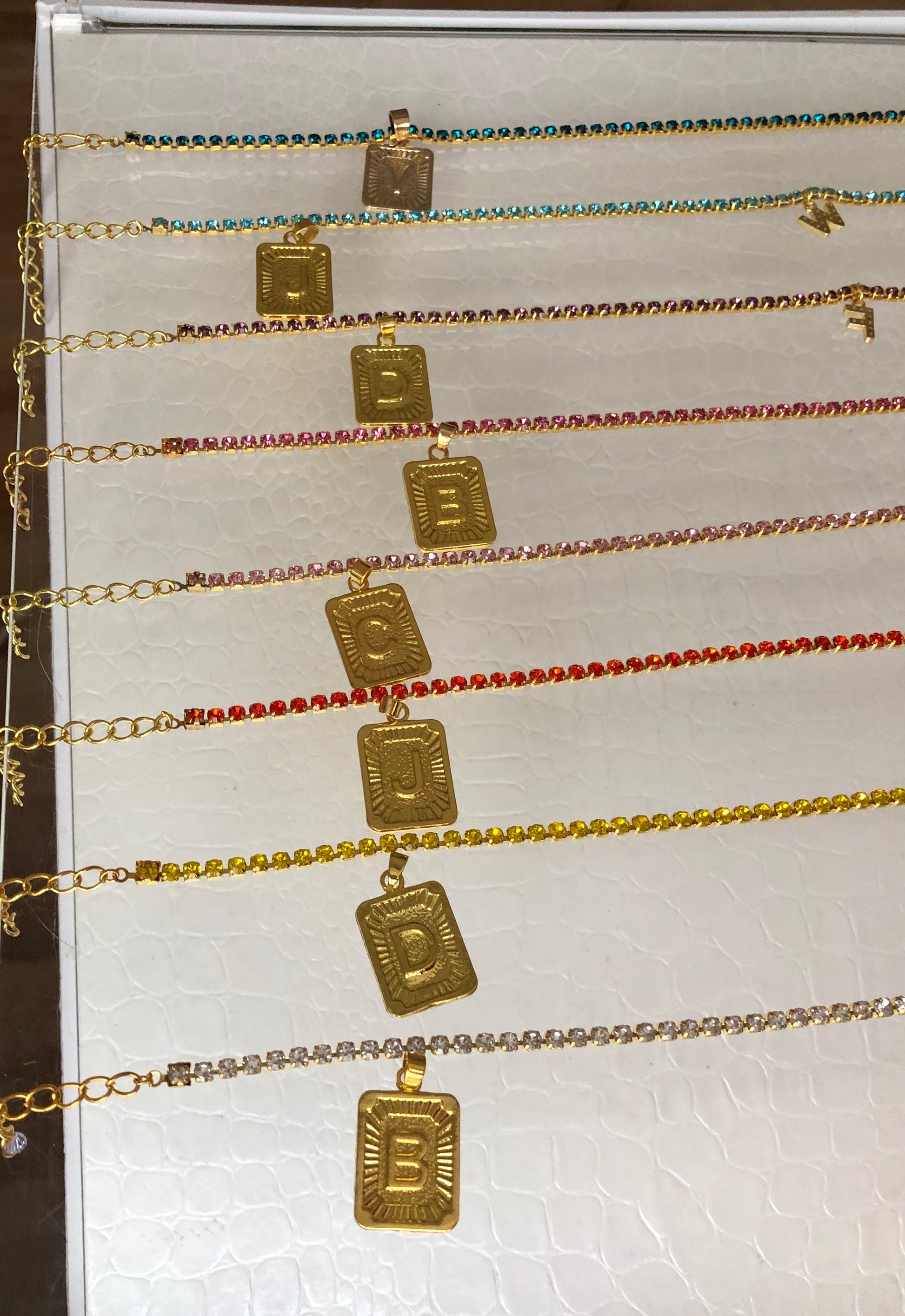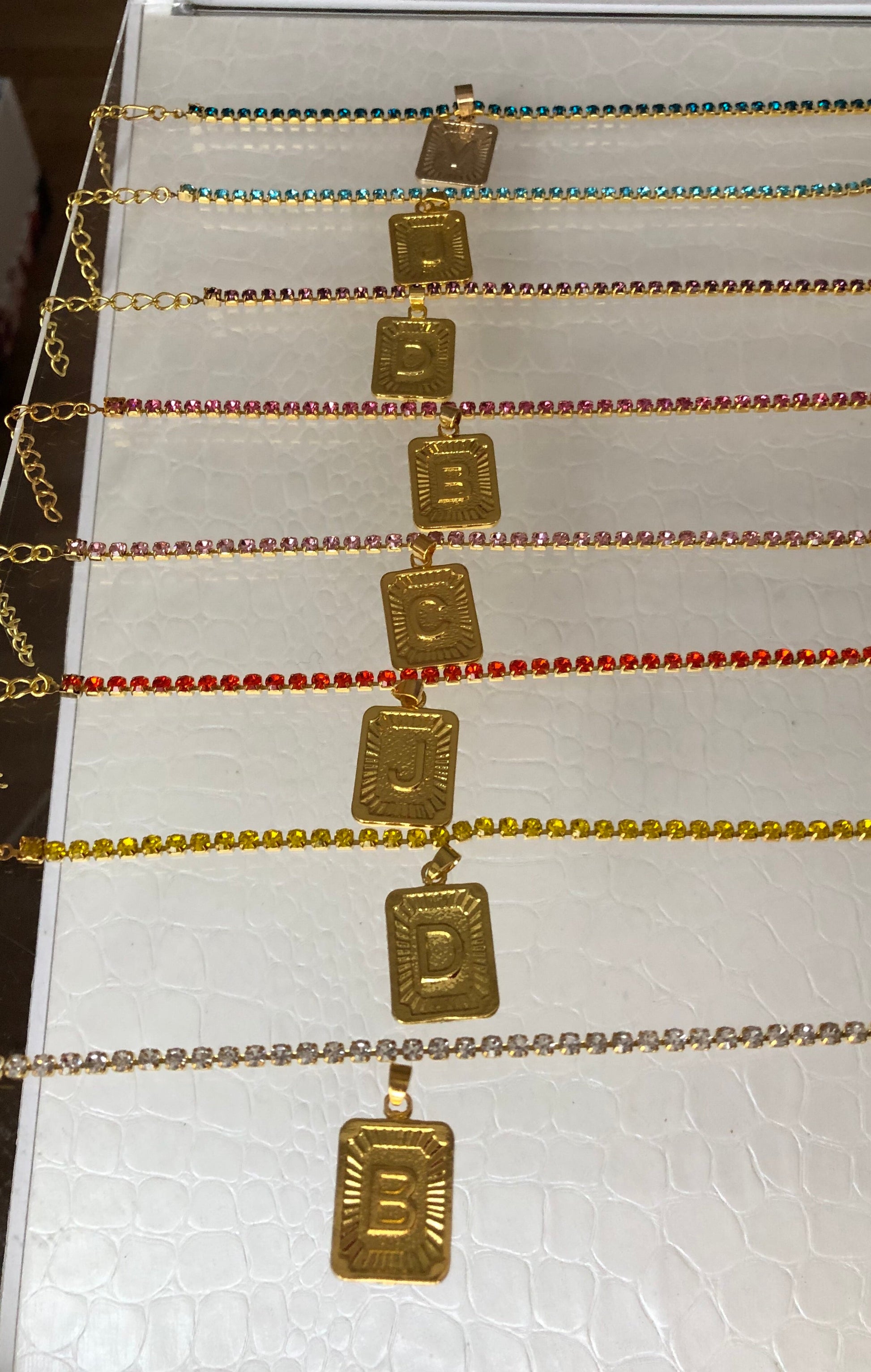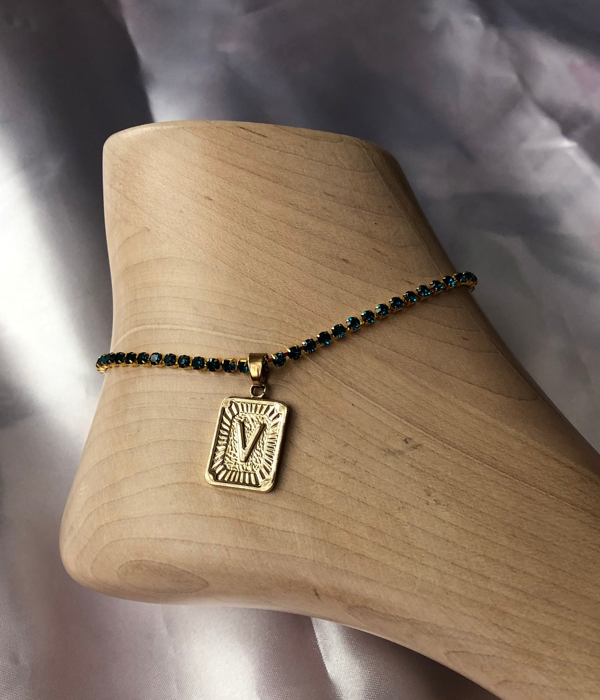 Beautiful handmade rhinestone anklet with a letter pendant detail
