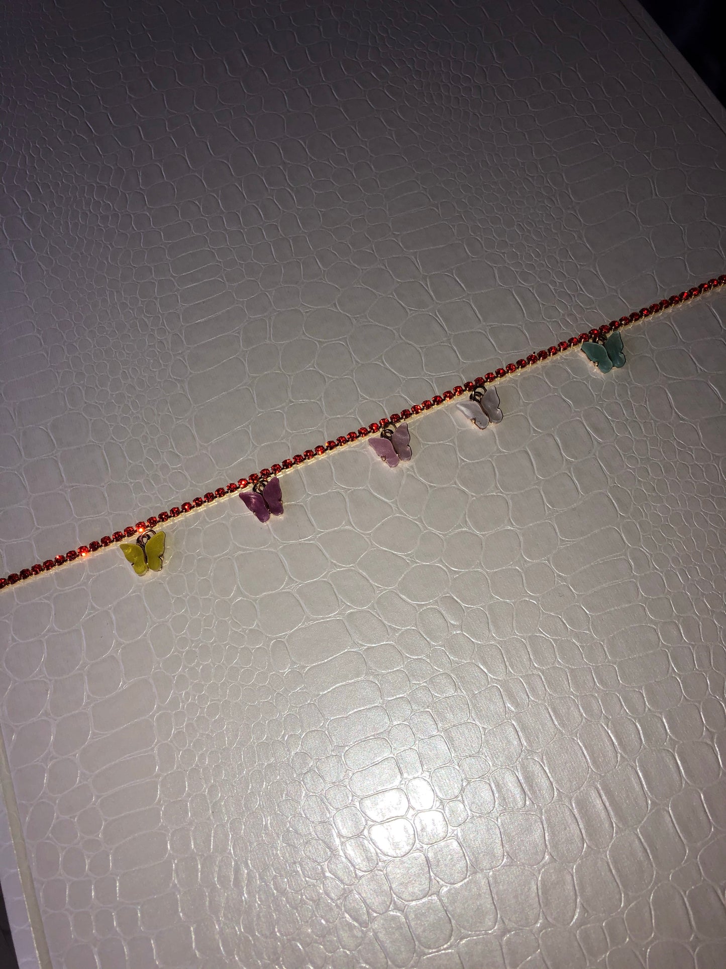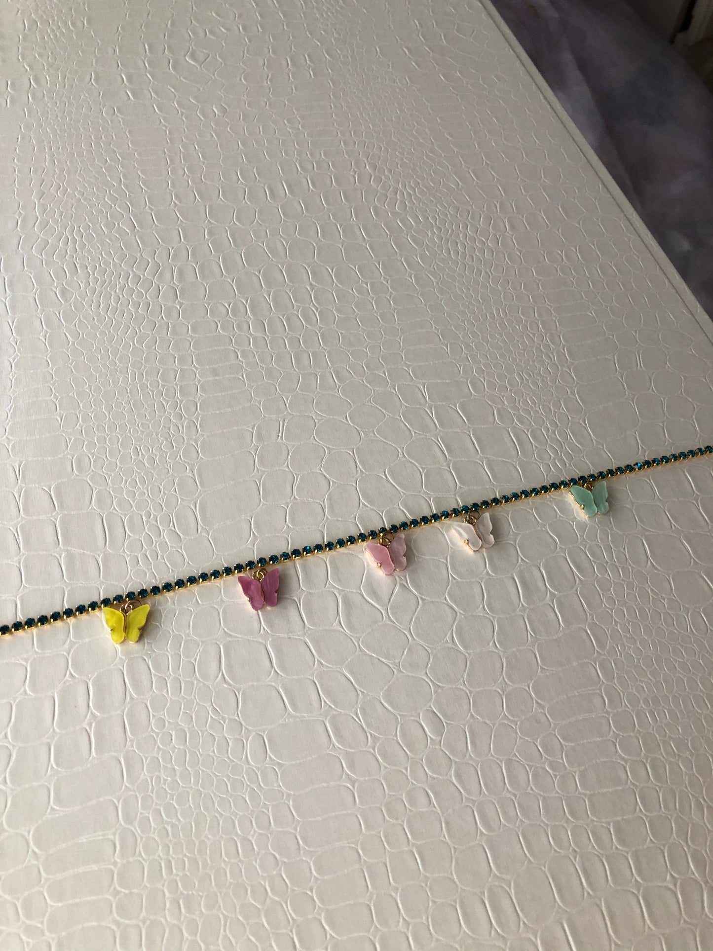 Choose between 8 rhinestone chain colours and 4 butterfly pendant colours. WJITE BUTTERFLY IS SOLD OUT!