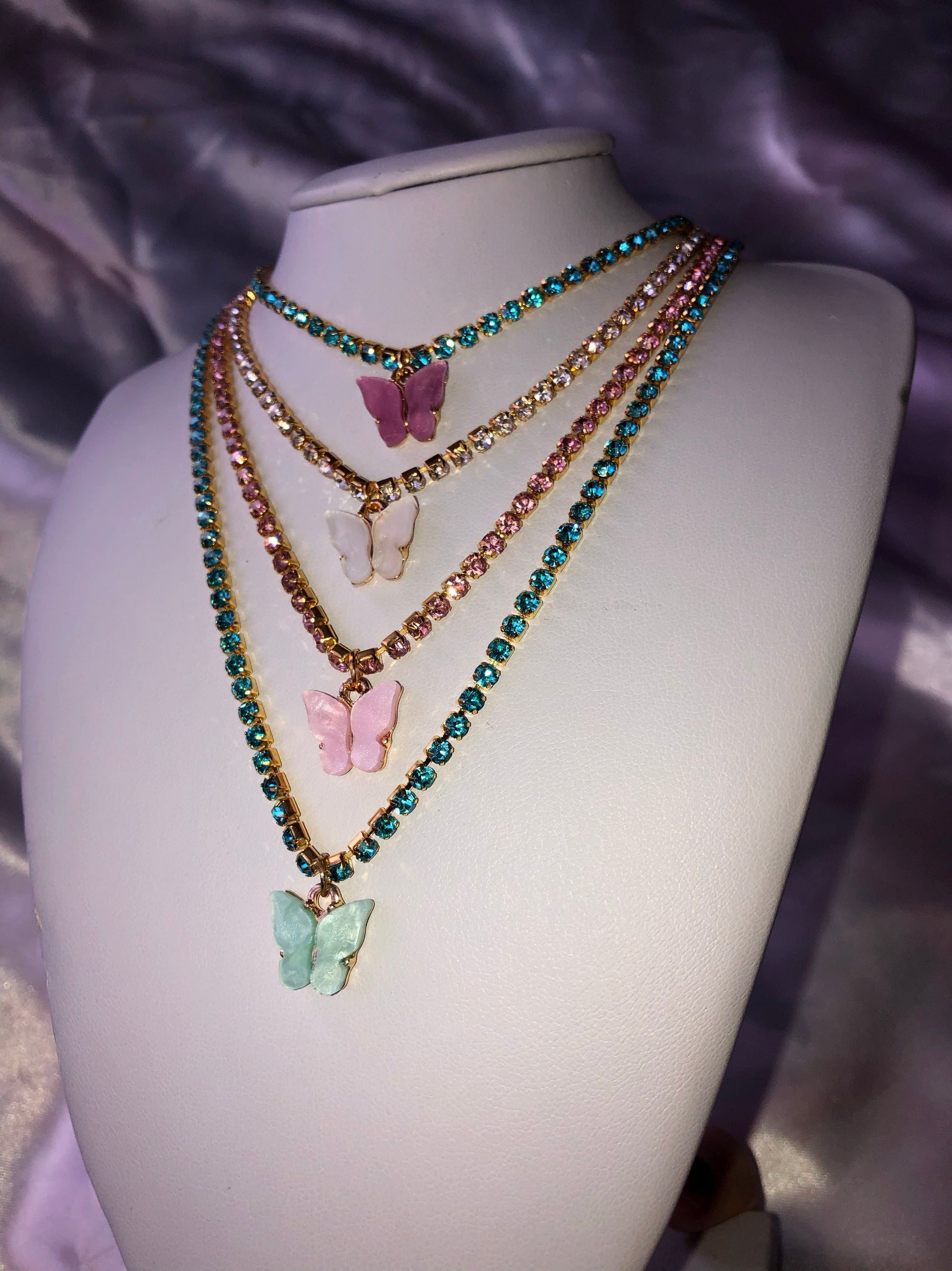Available in 8 rhinestone colour chains and 4 butterfly colours. WHITE BUTTERFLY IS SOLD OUT!