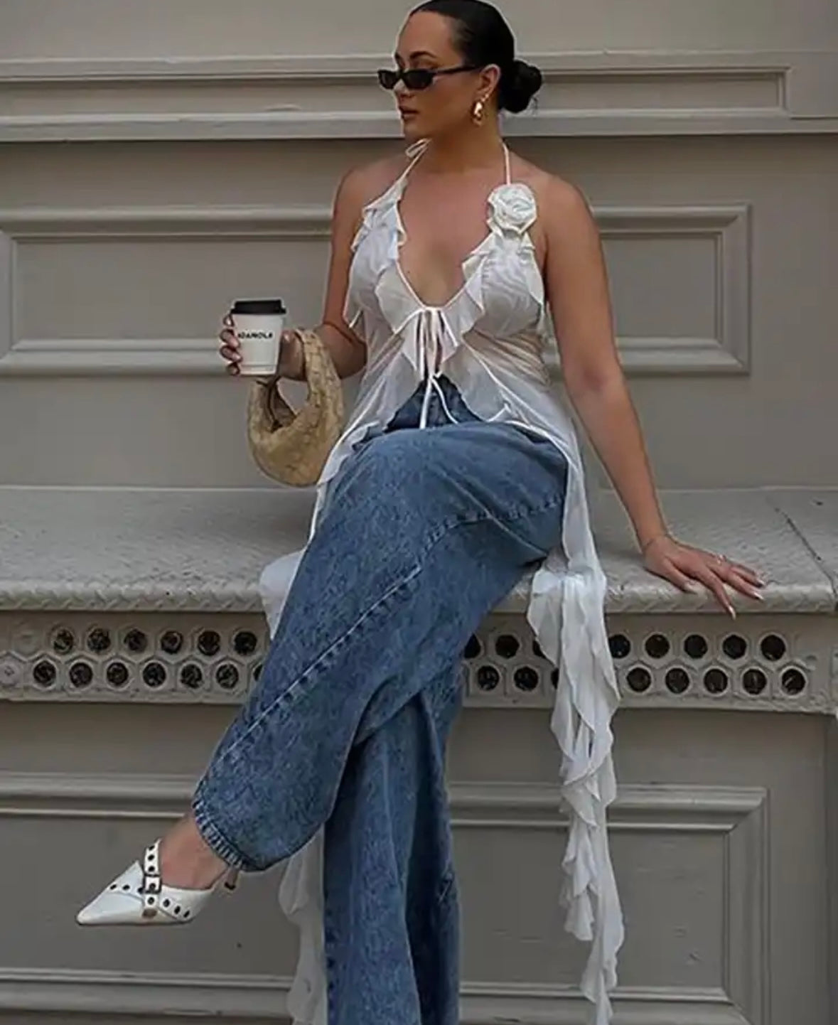 This white summer top is the perfect addition to your wardrobe with its light and airy fabric and versatile color. Made for warm weather, it keeps you cool and stylish.