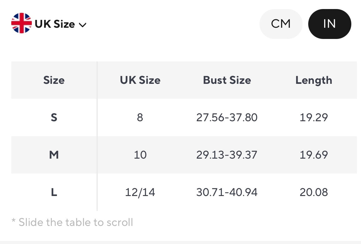Available in S, M and L