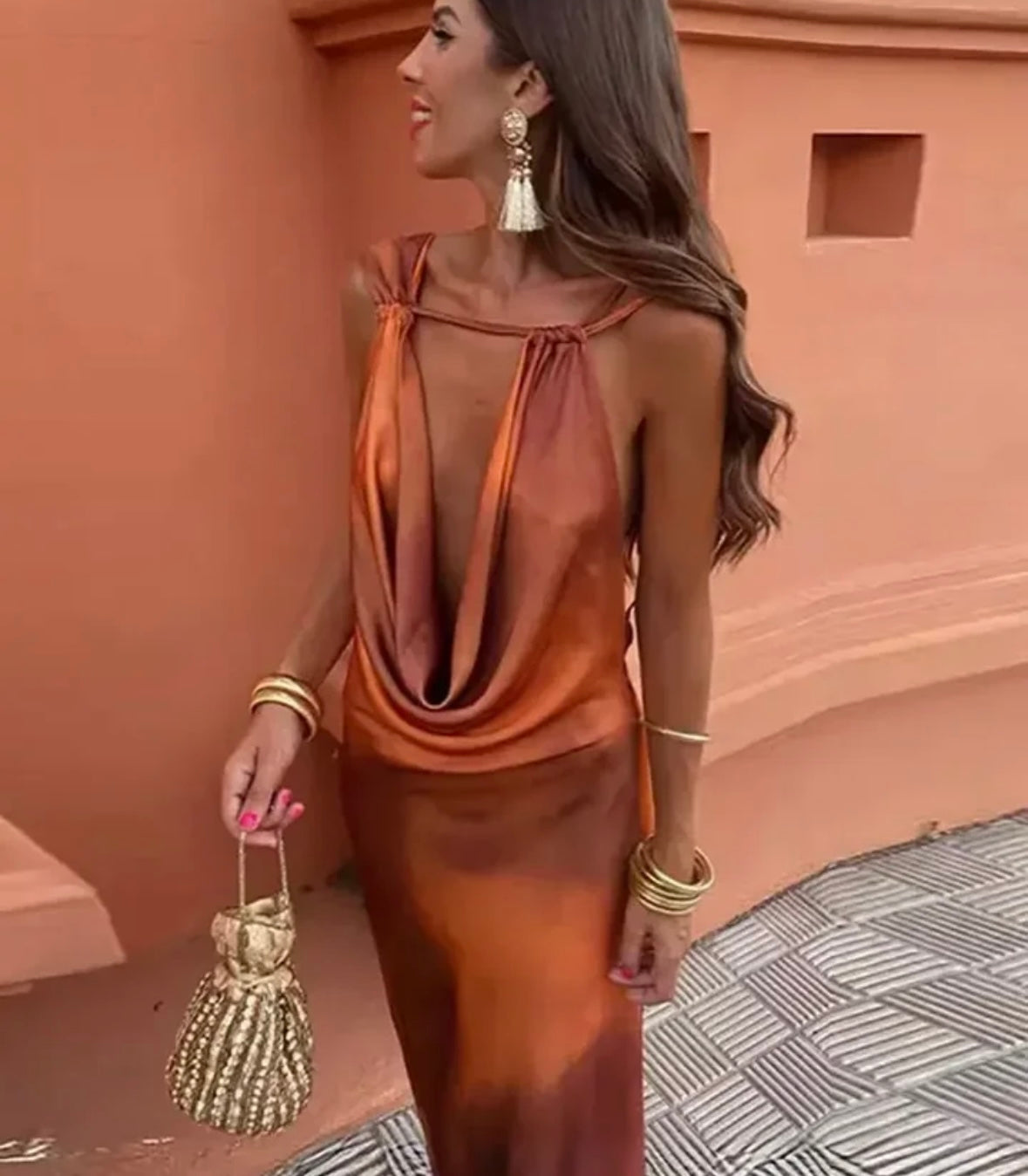 Satin backless dress