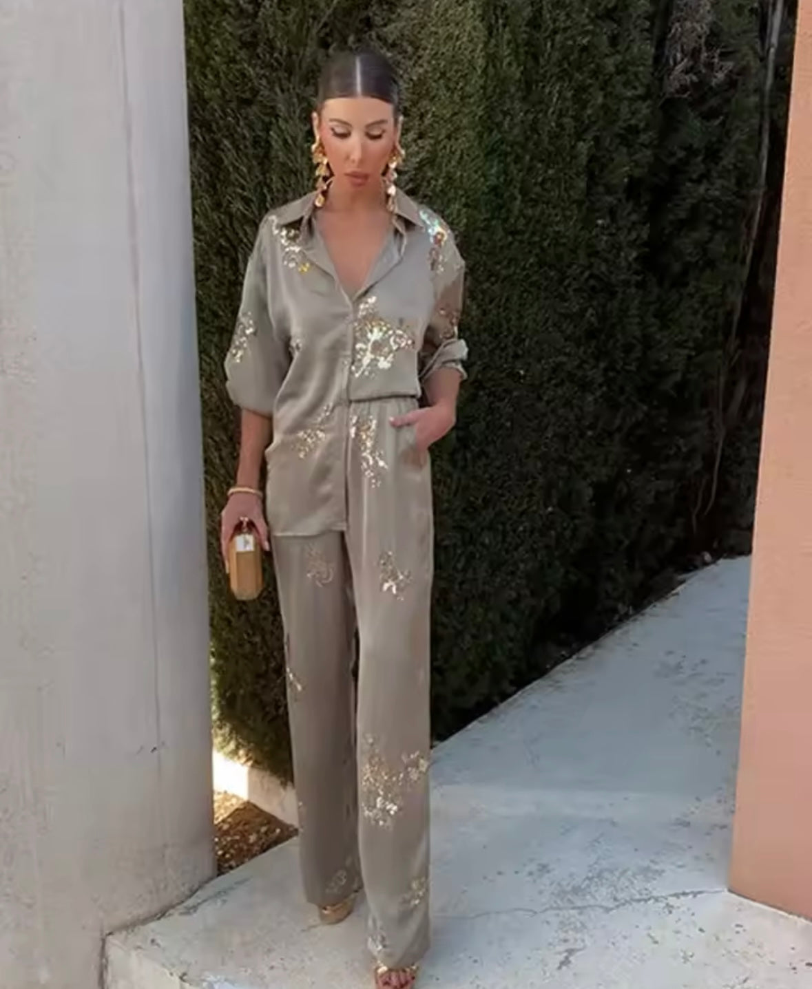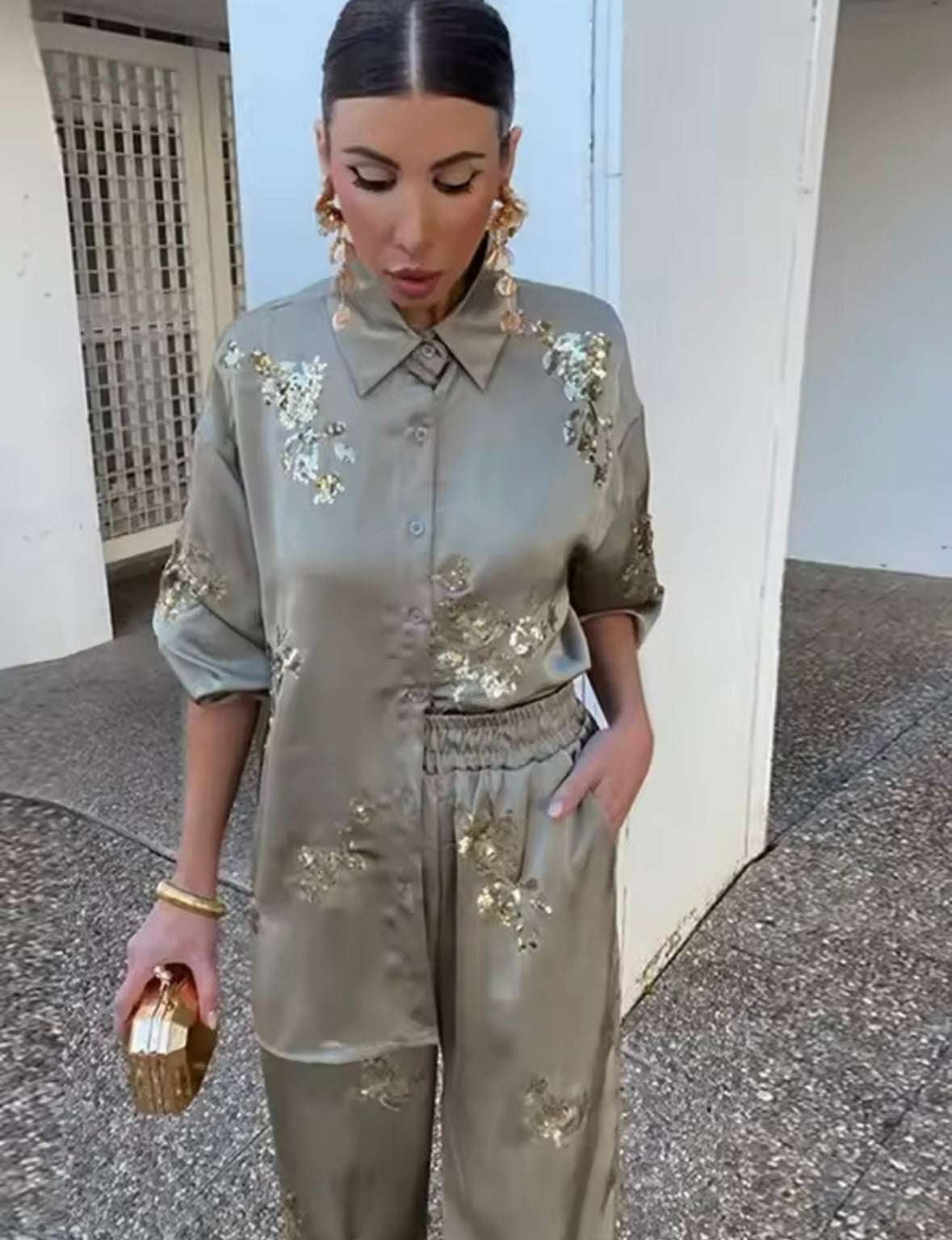 Satin sequin trousers