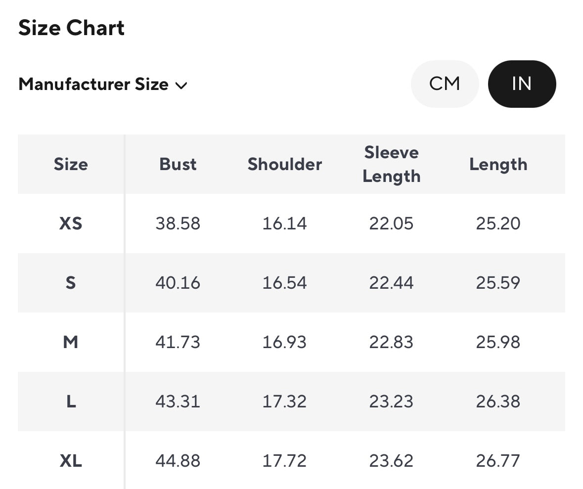 Available in XS, S, M, L and XL