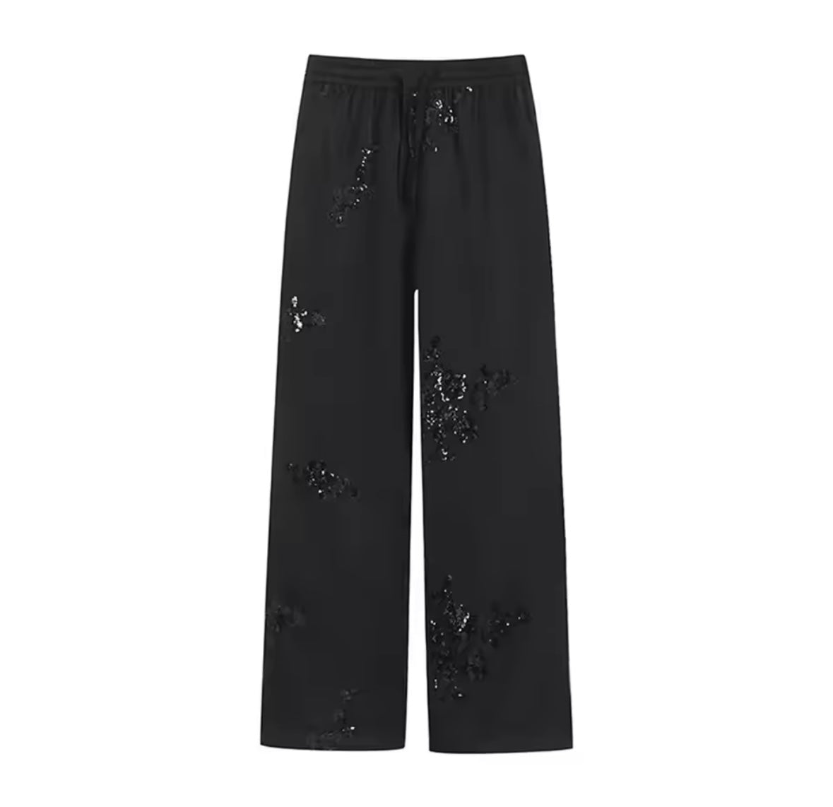Upgrade your wardrobe with our stunning Satin Sequin Trousers. Made from high-quality satin like material and adorned with sequins, these trousers add a touch of elegance and glamour to any outfit. The perfect choice for a night out or a special occasion.