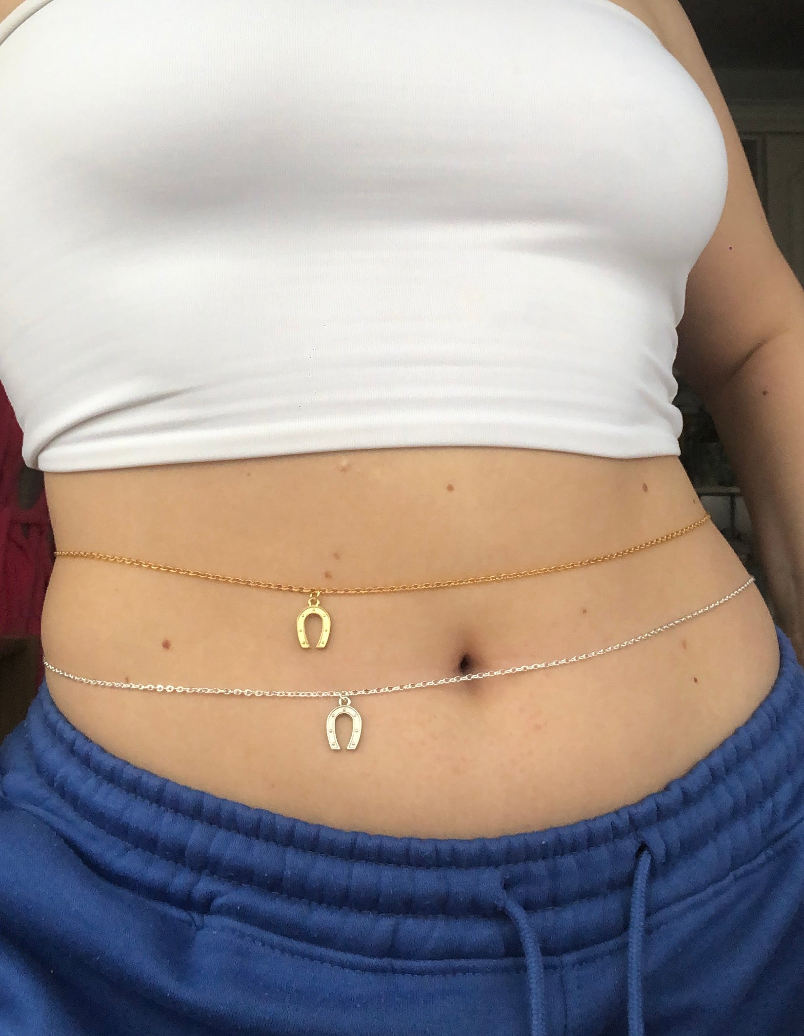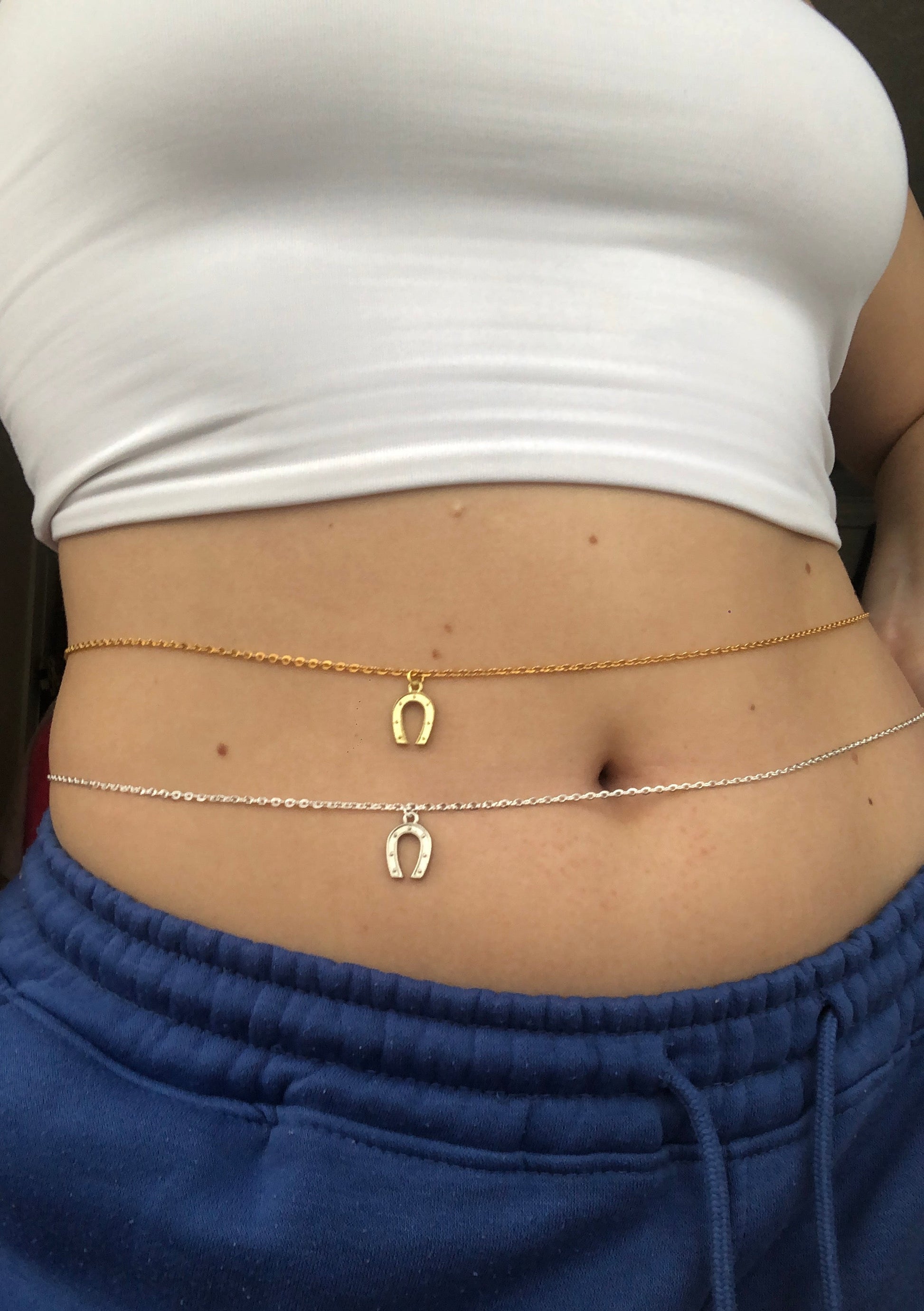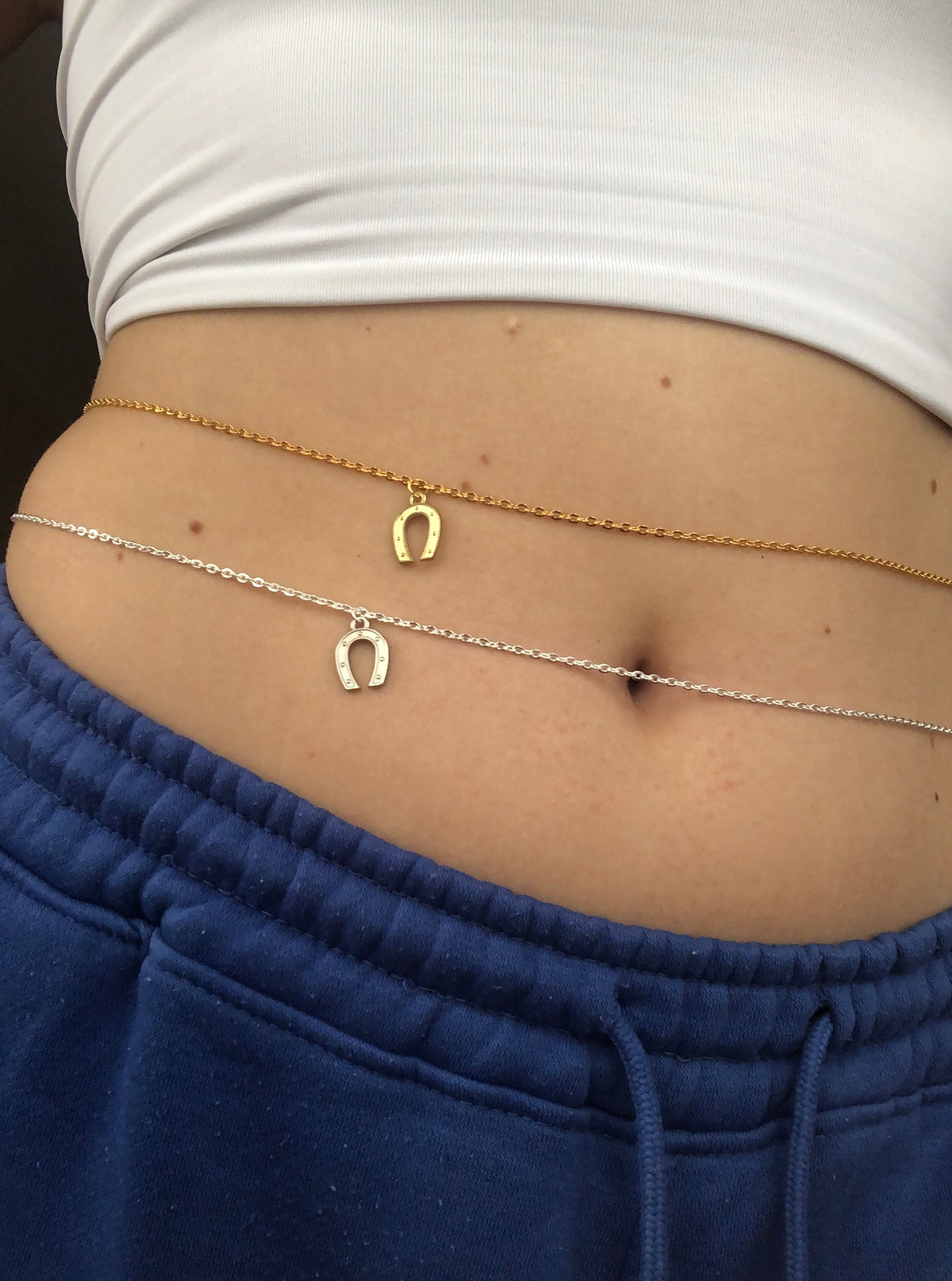 Beautiful handmade belly chain with a cute shoehorn pendant detail