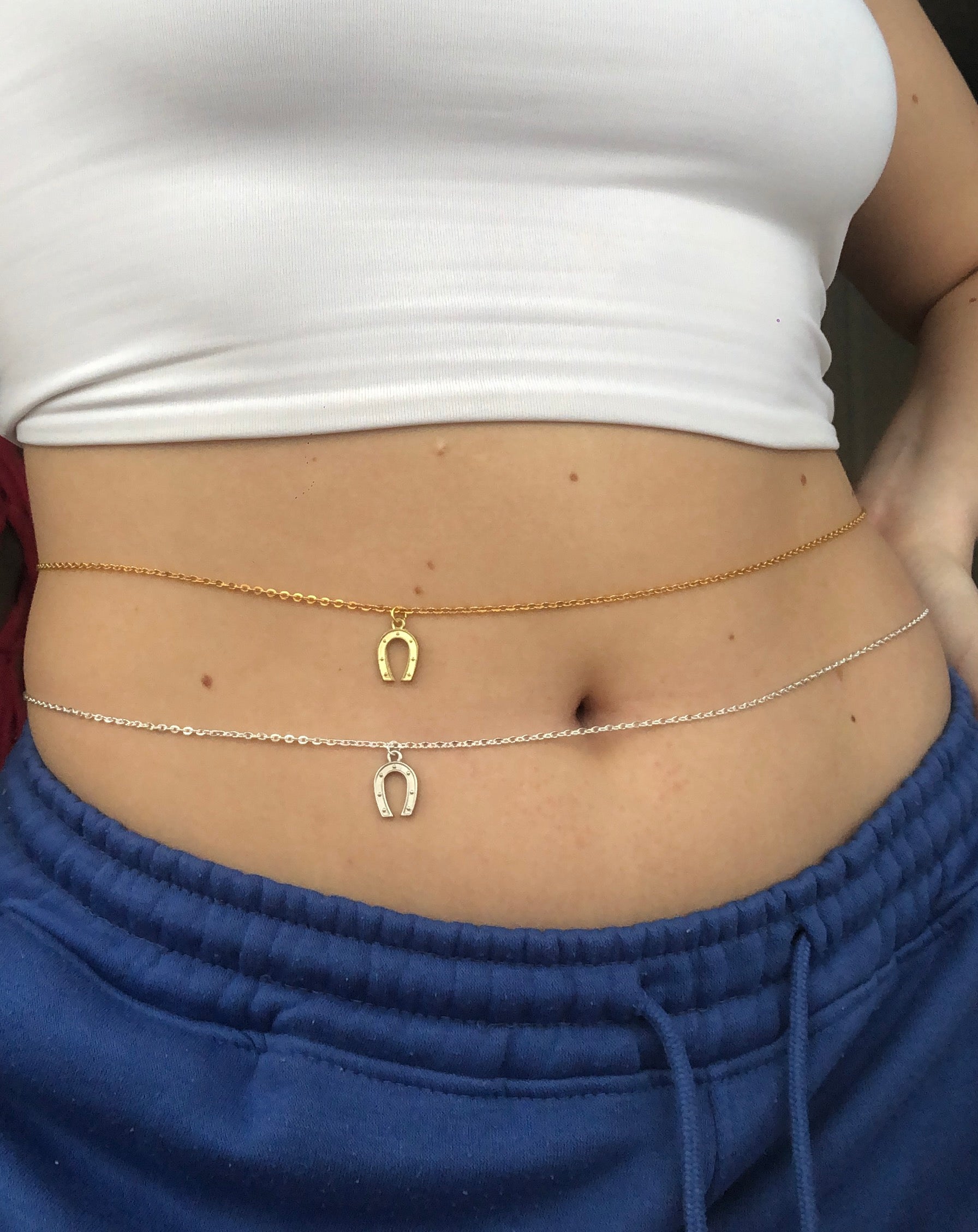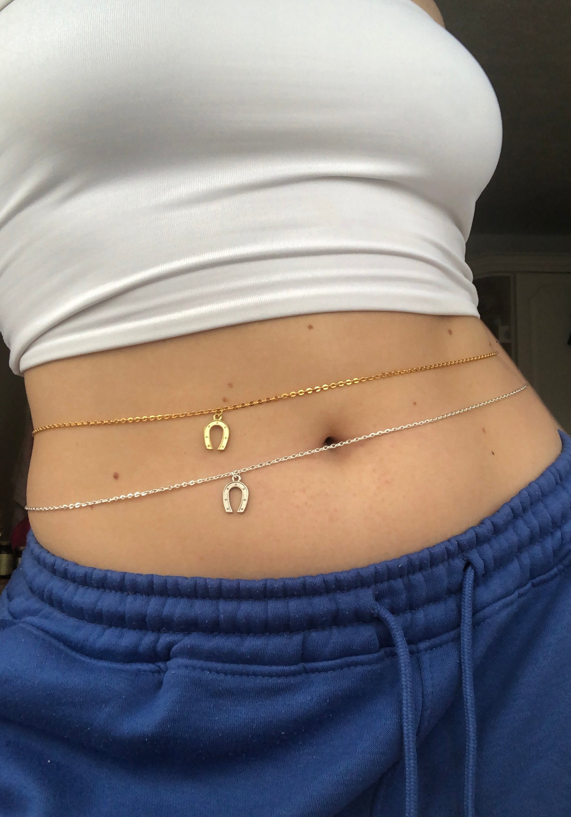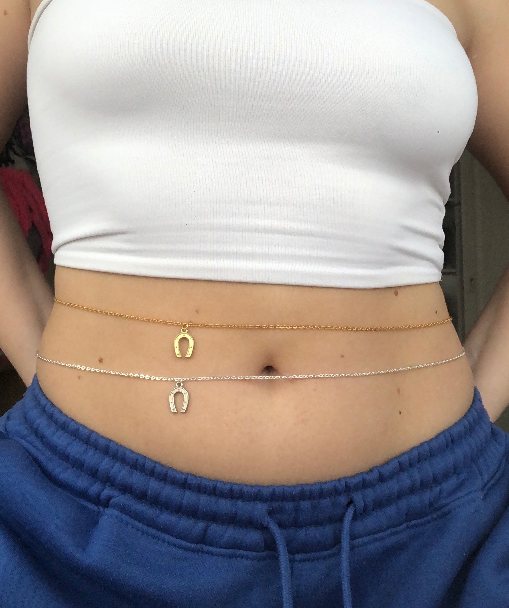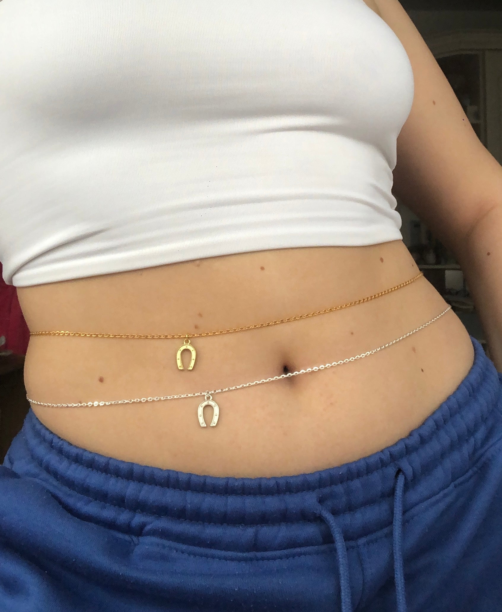 Beautiful handmade belly chain with a cute shoehorn pendant detail