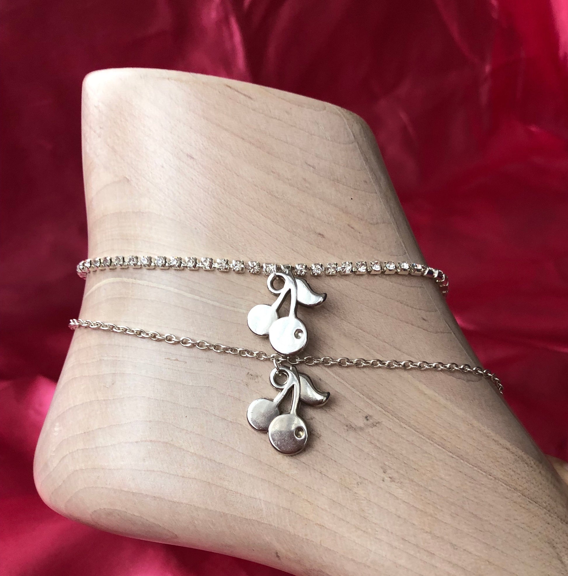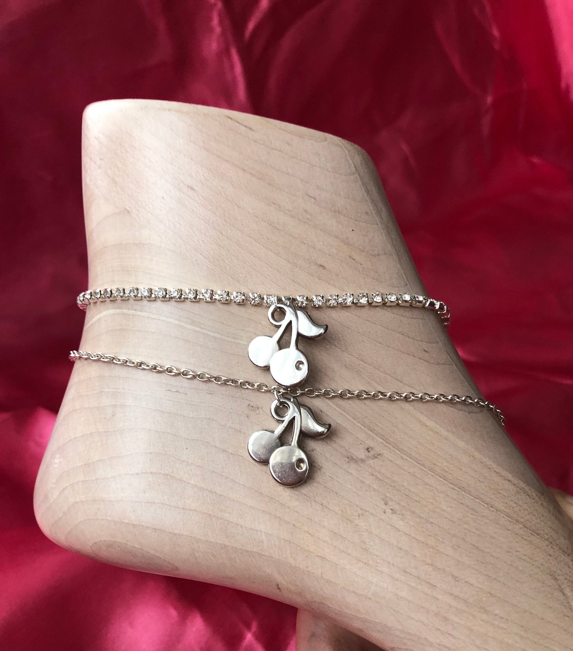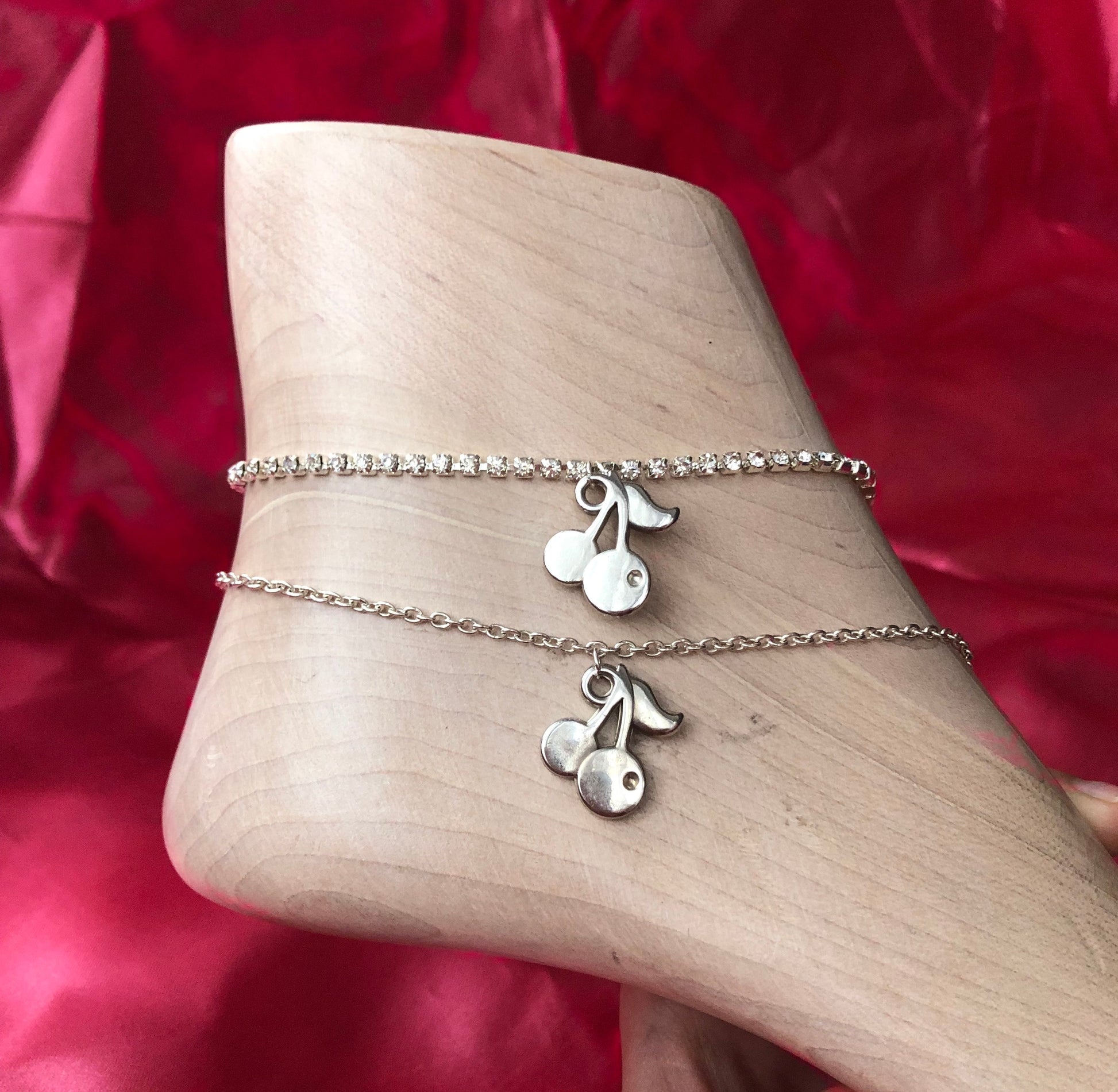 Beautiful handmade anklet with cute silver cherry pendant detail.