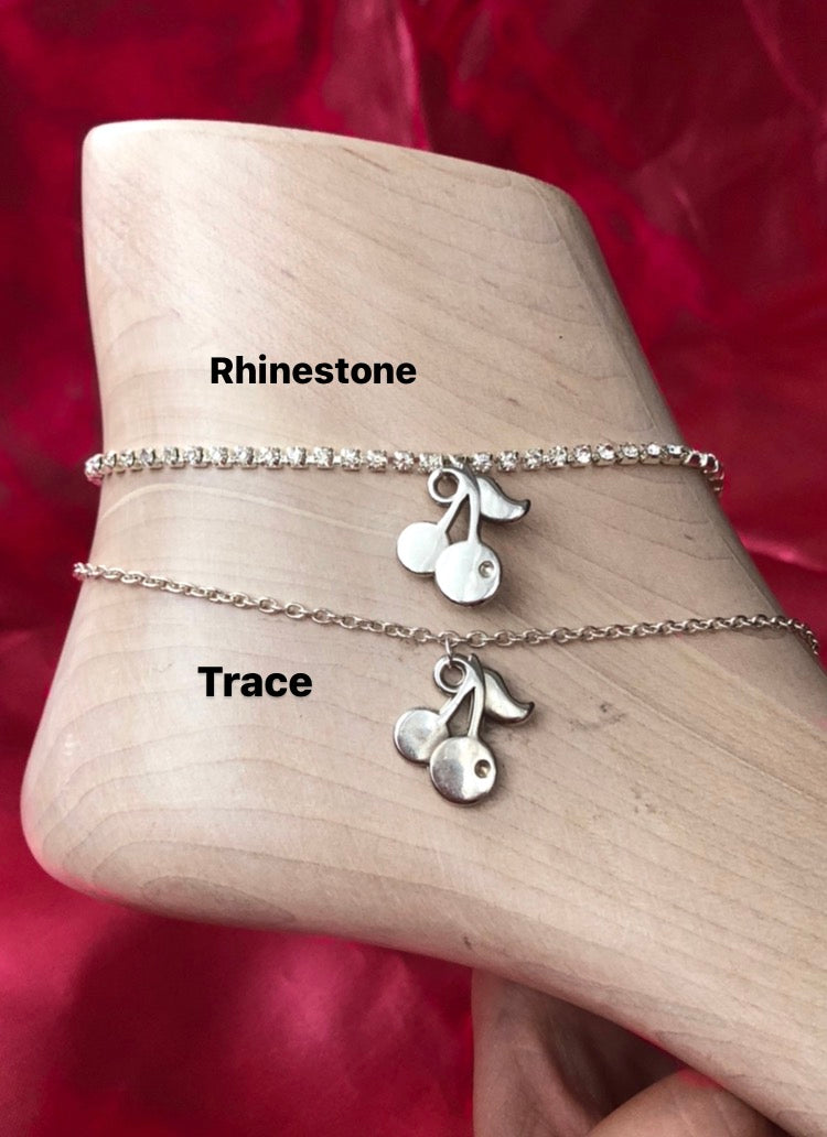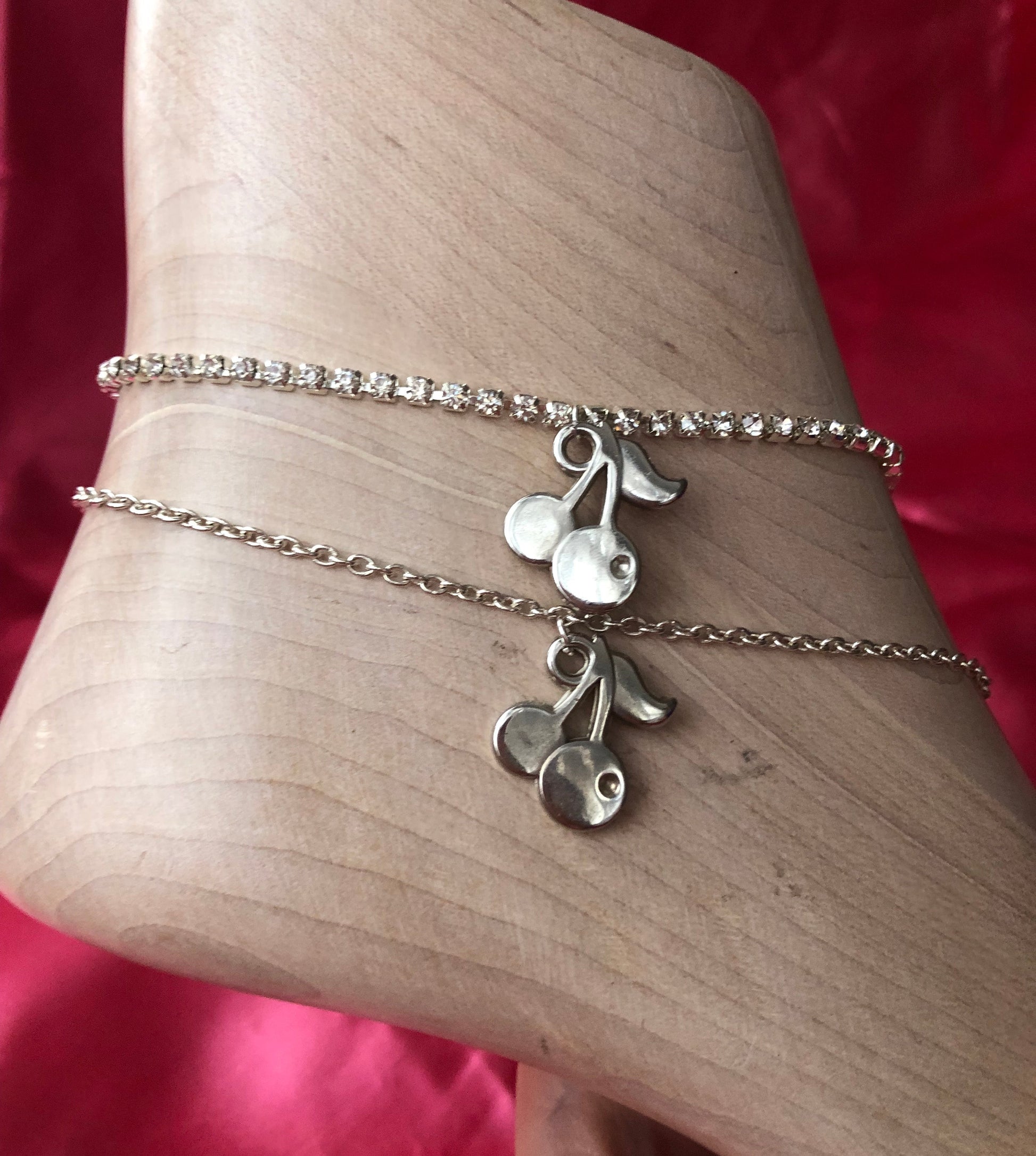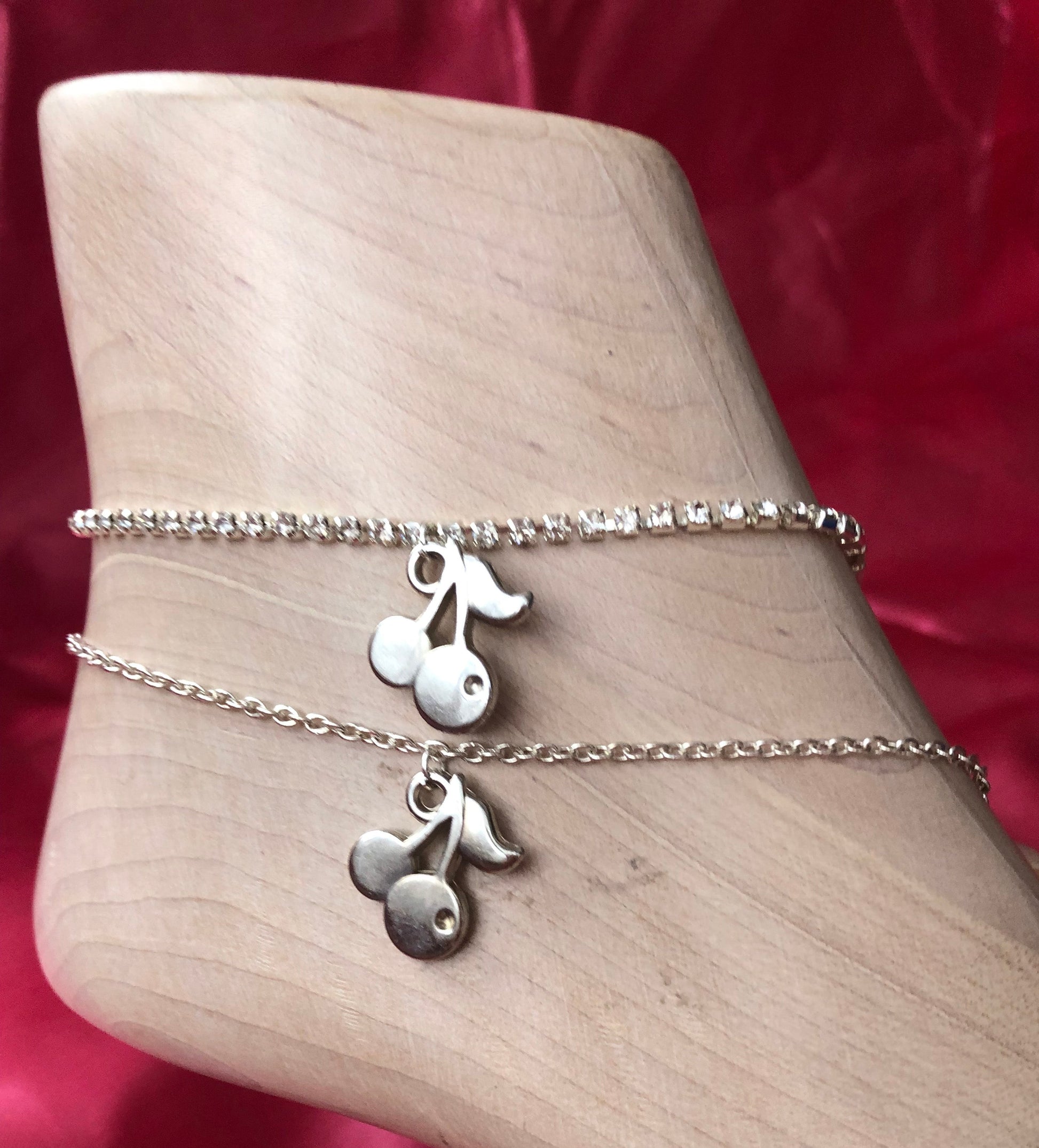 Beautiful handmade anklet with cute silver cherry pendant detail.