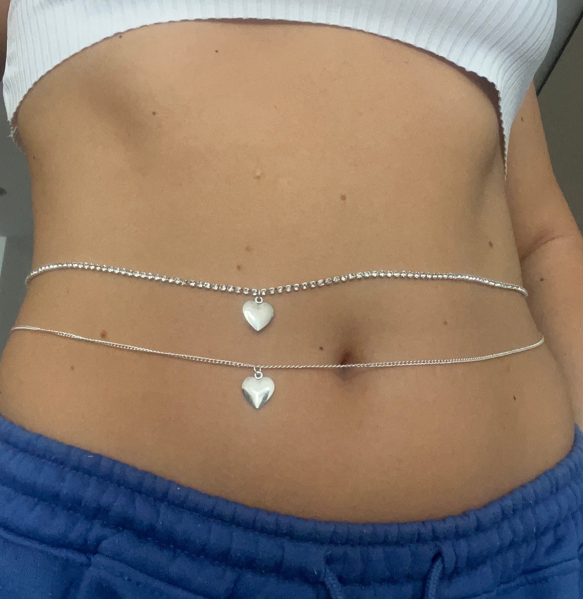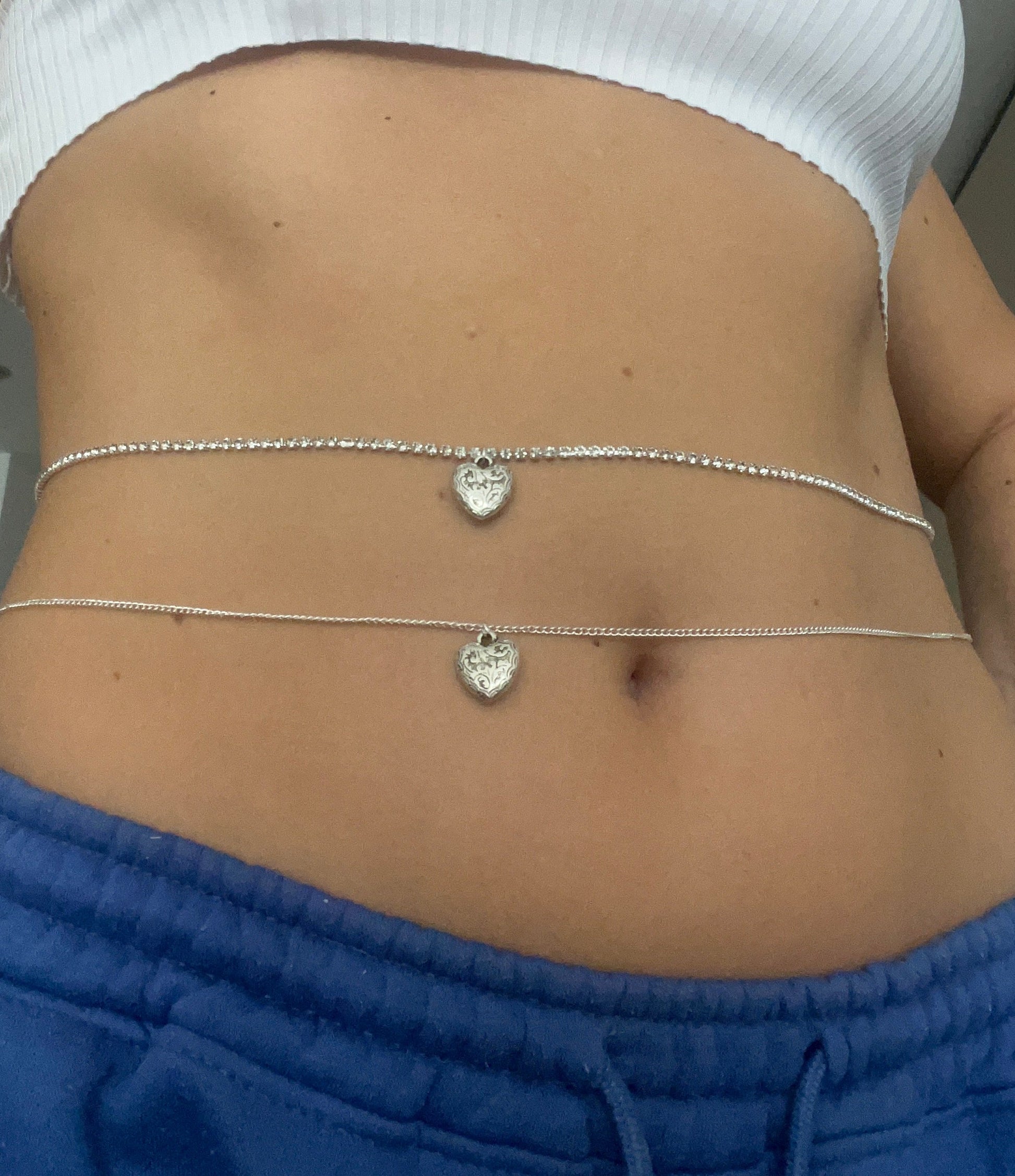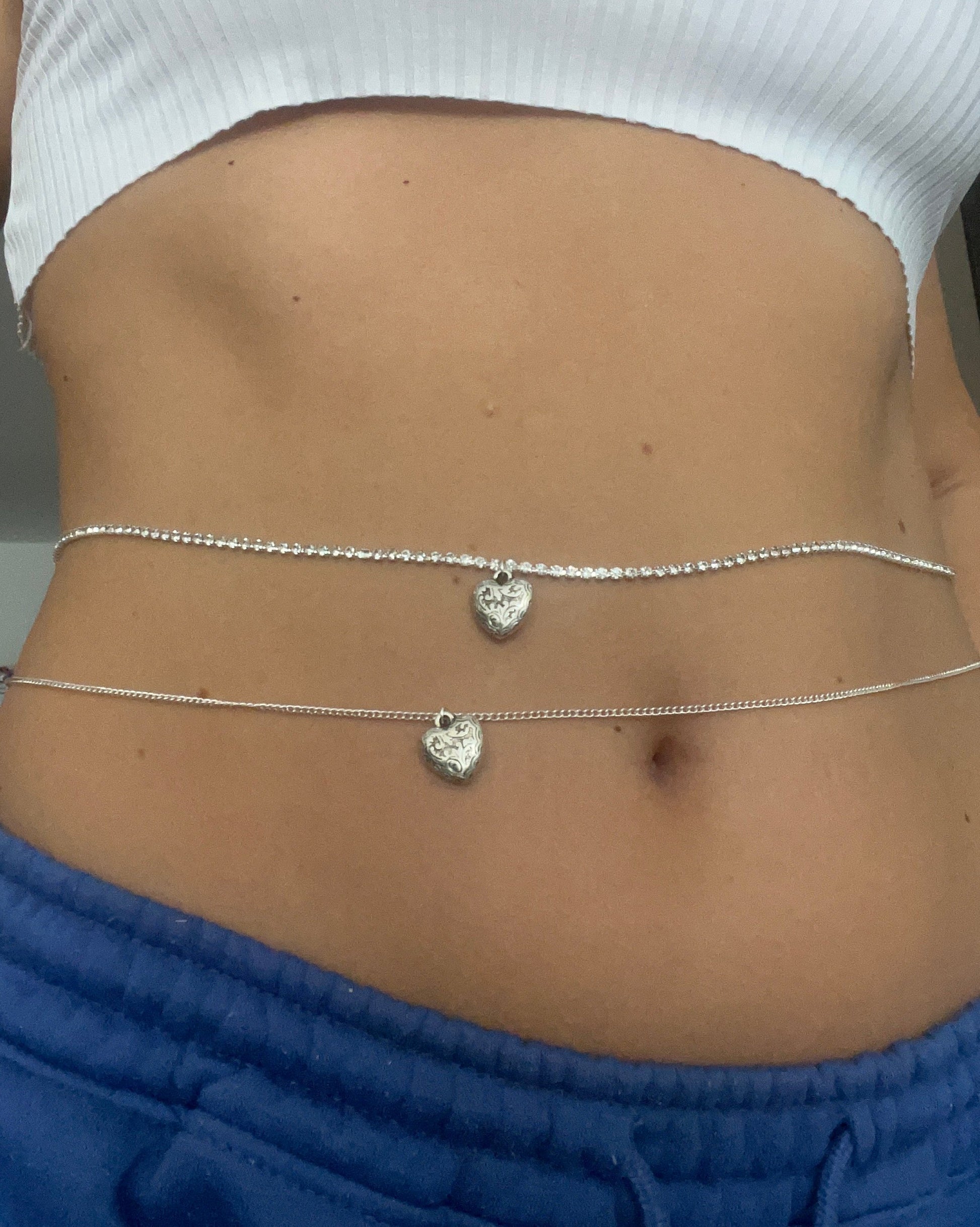 Silver heart belly chain