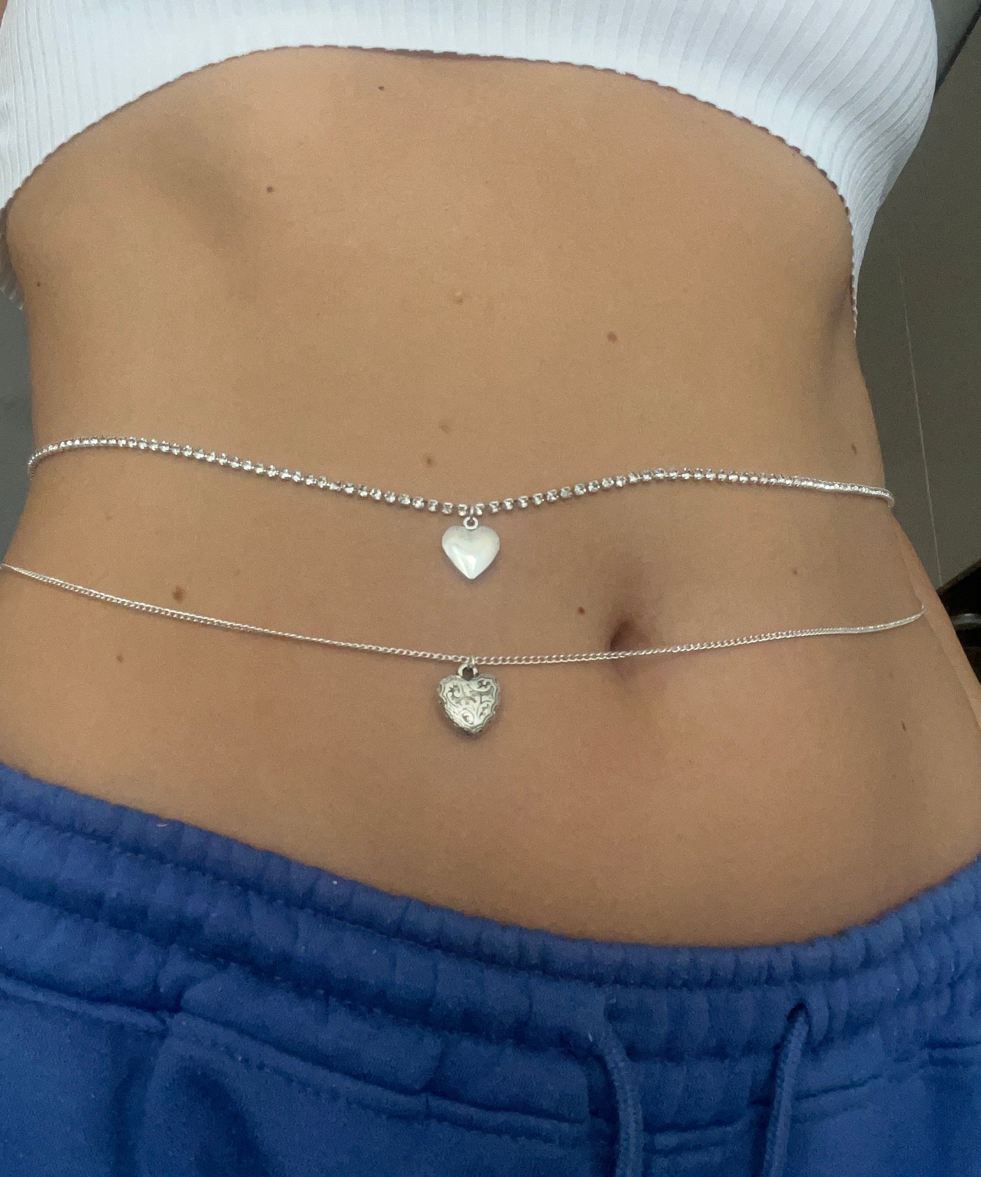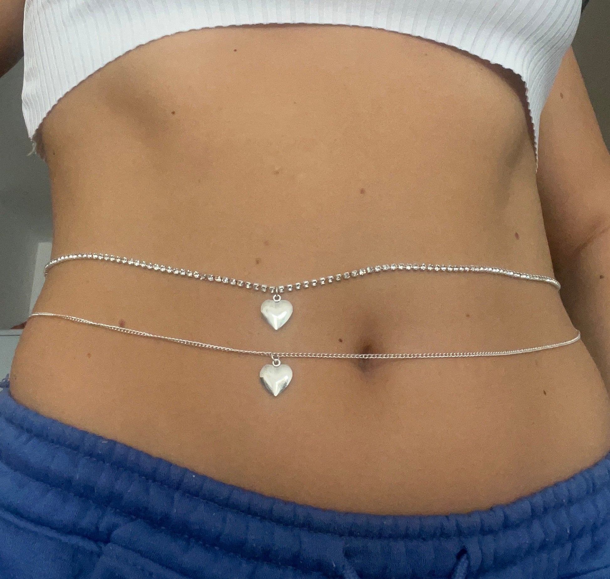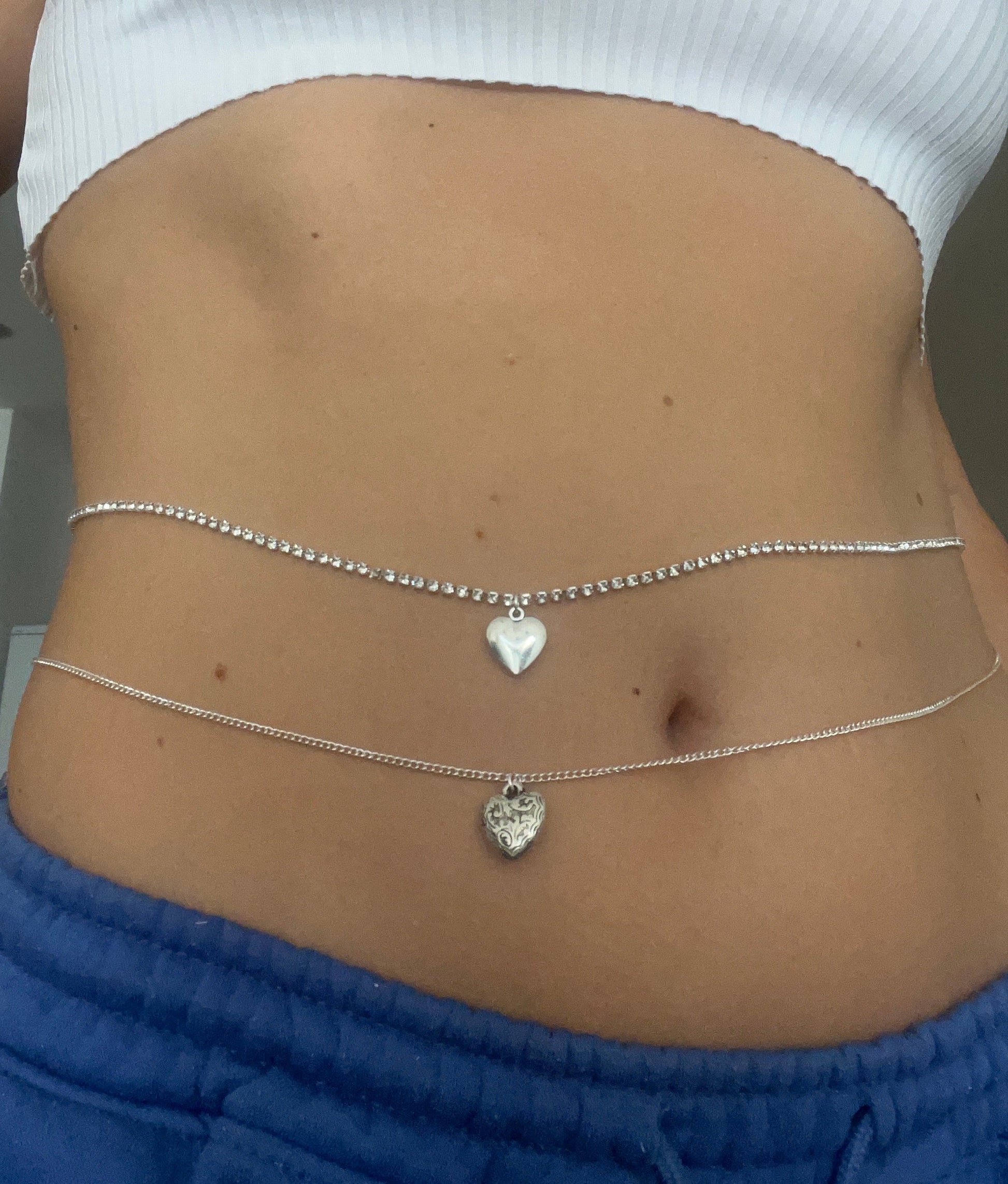 Silver heart belly chain