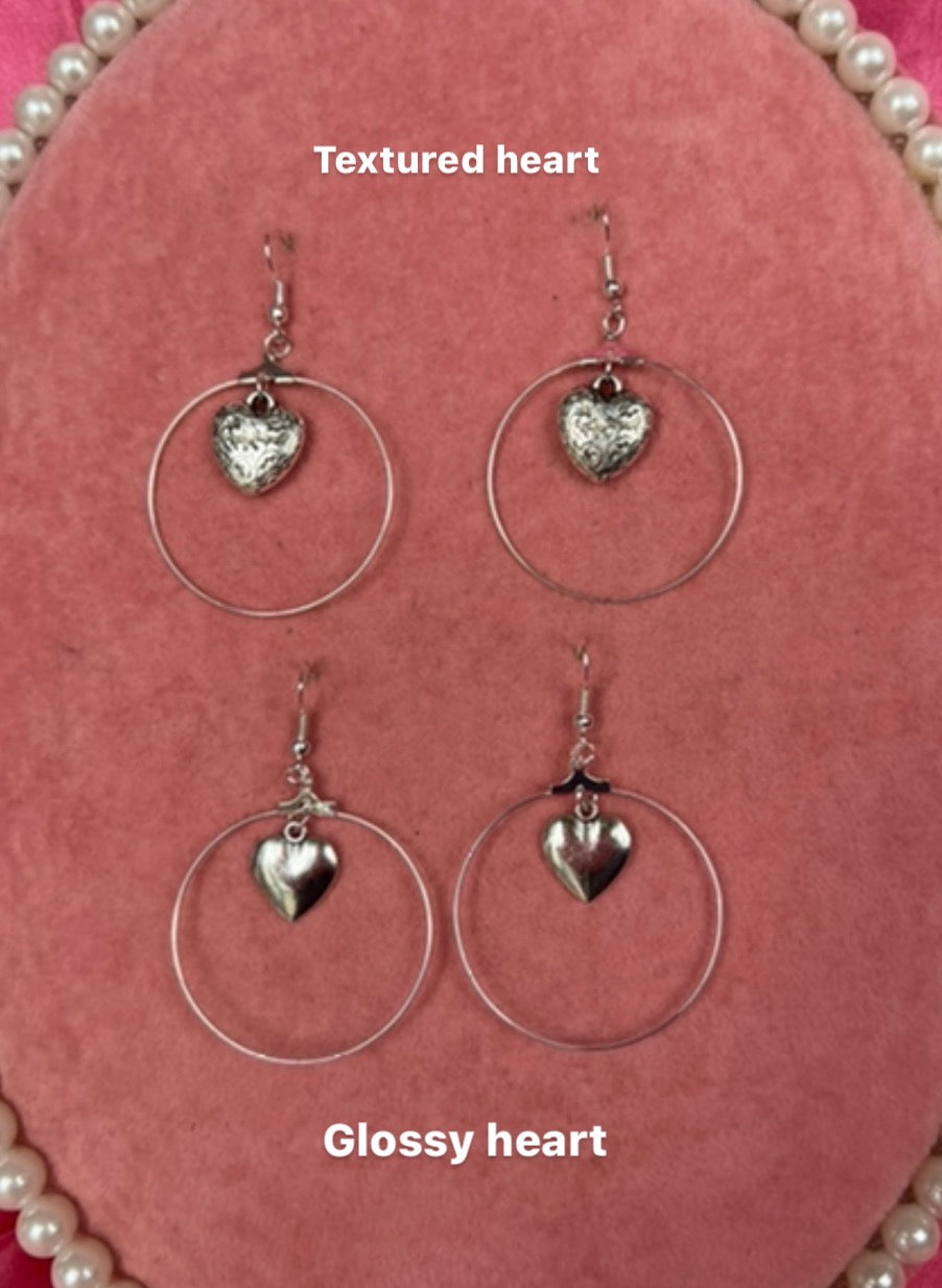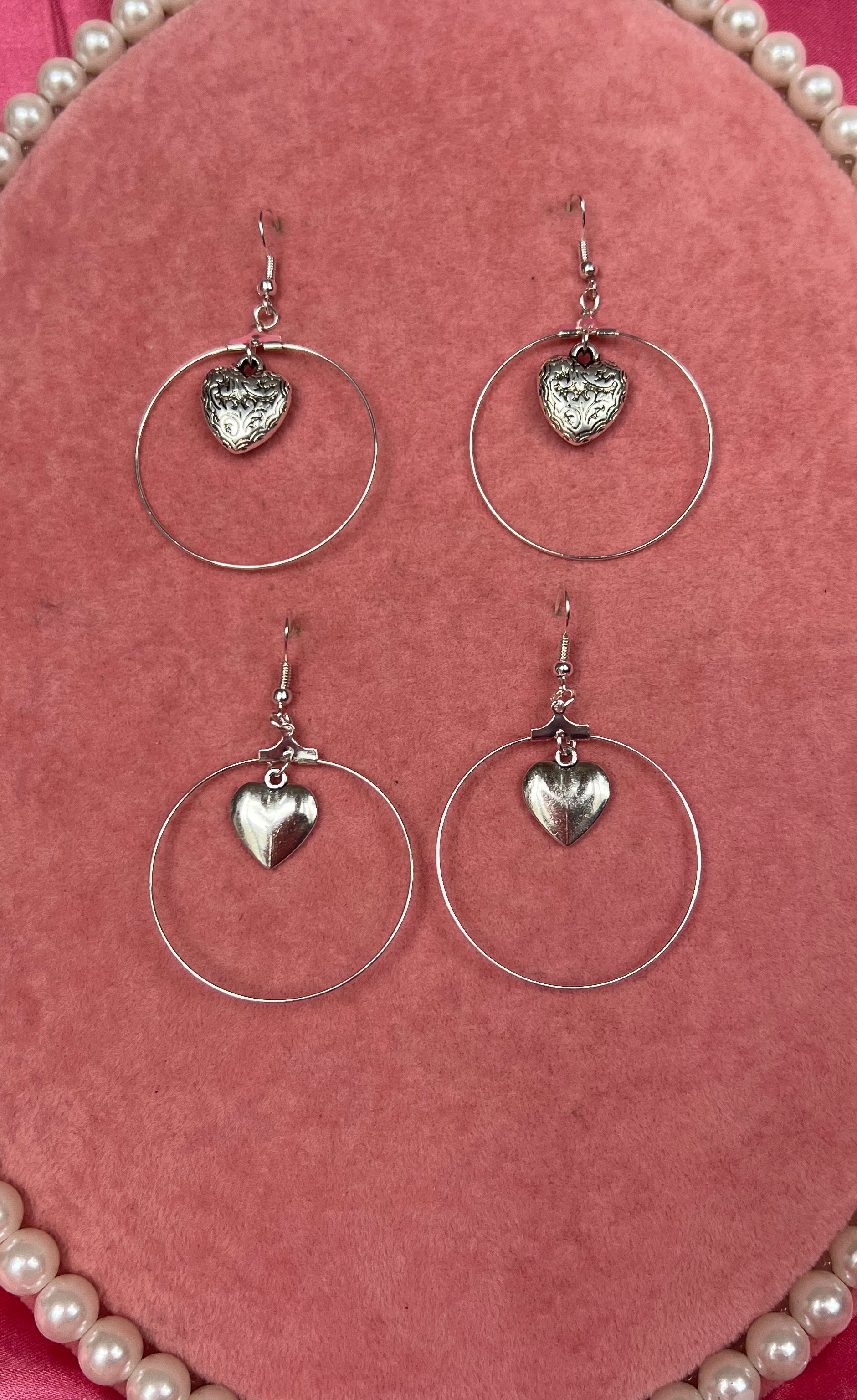 Beautiful handmade hoops in silver with cute heart pendant detail.