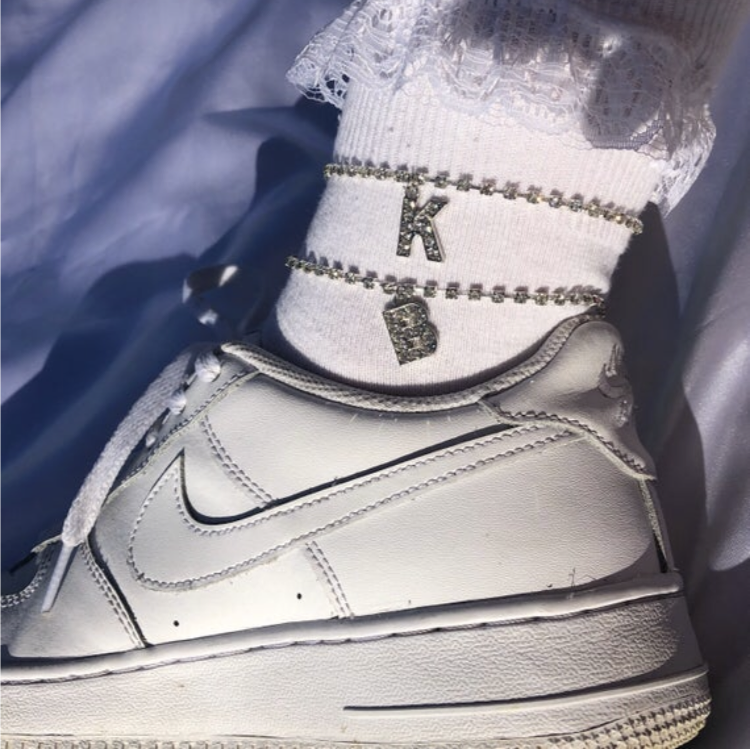 Silver letter anklet