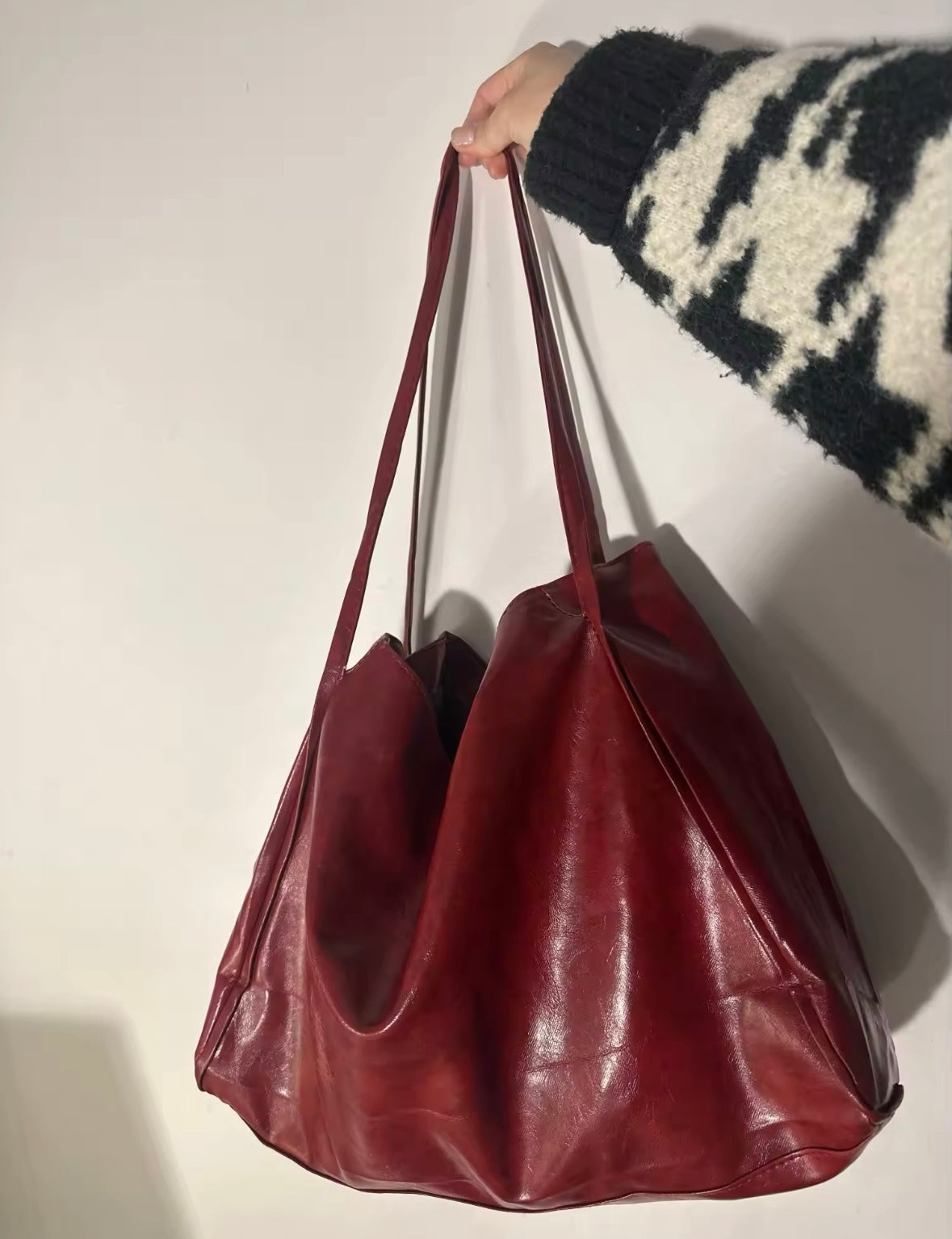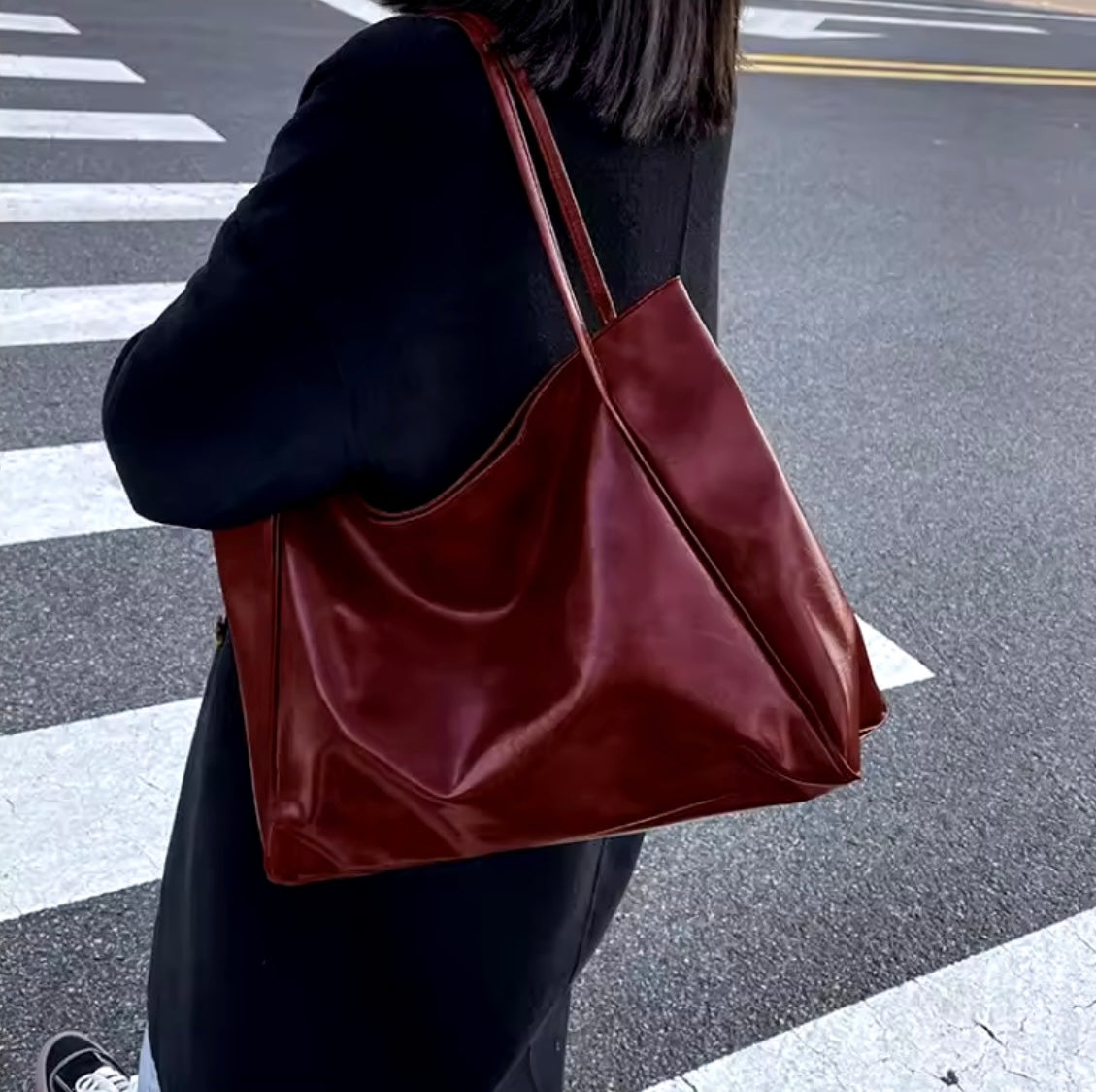 The Simple bag is a versatile tote bag made of faux leather, available in both classic black and bold red. Its high-quality materials offer durability and style, making it a great choice for any outfit. Perfect for everyday use or special occasions.