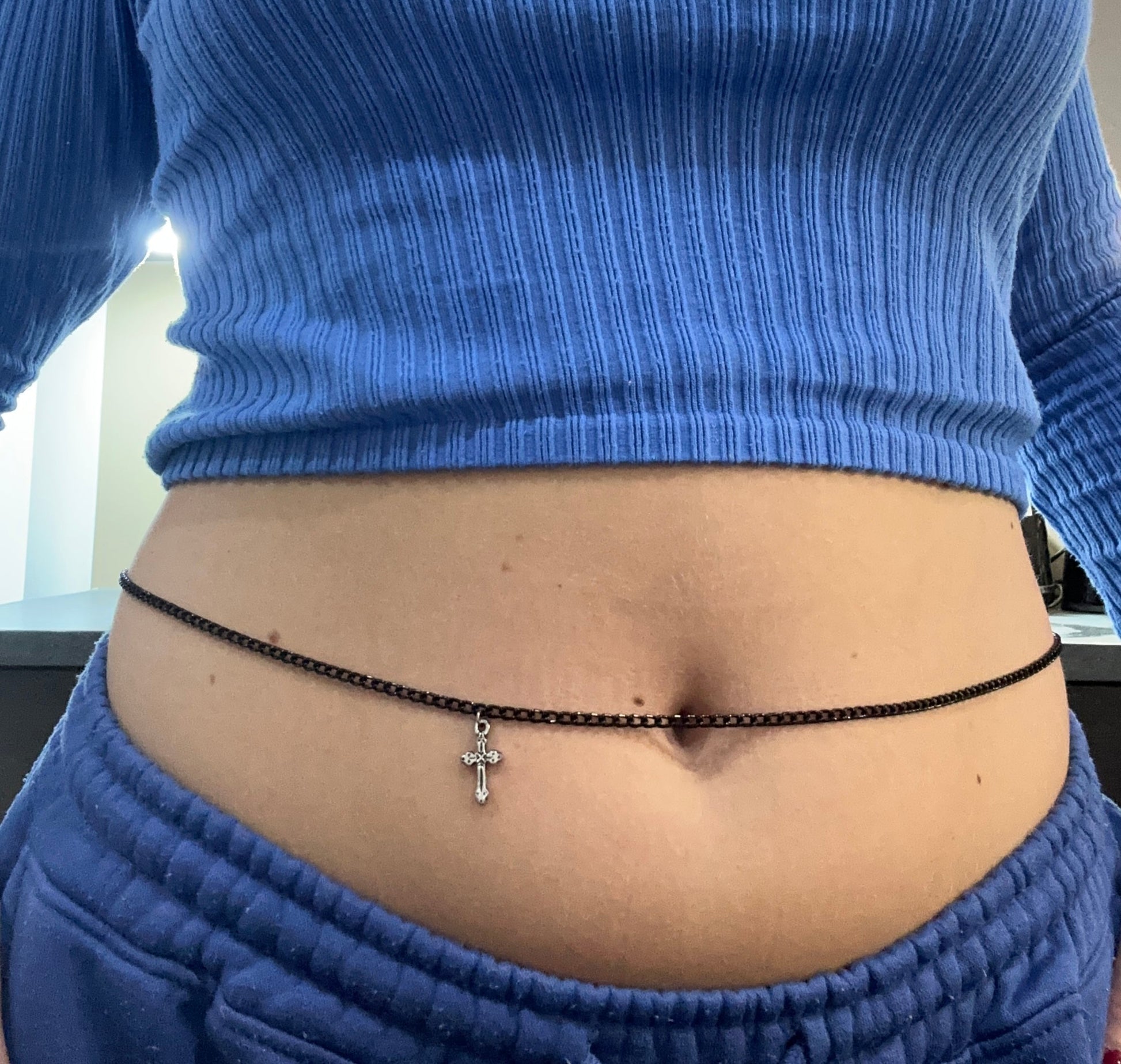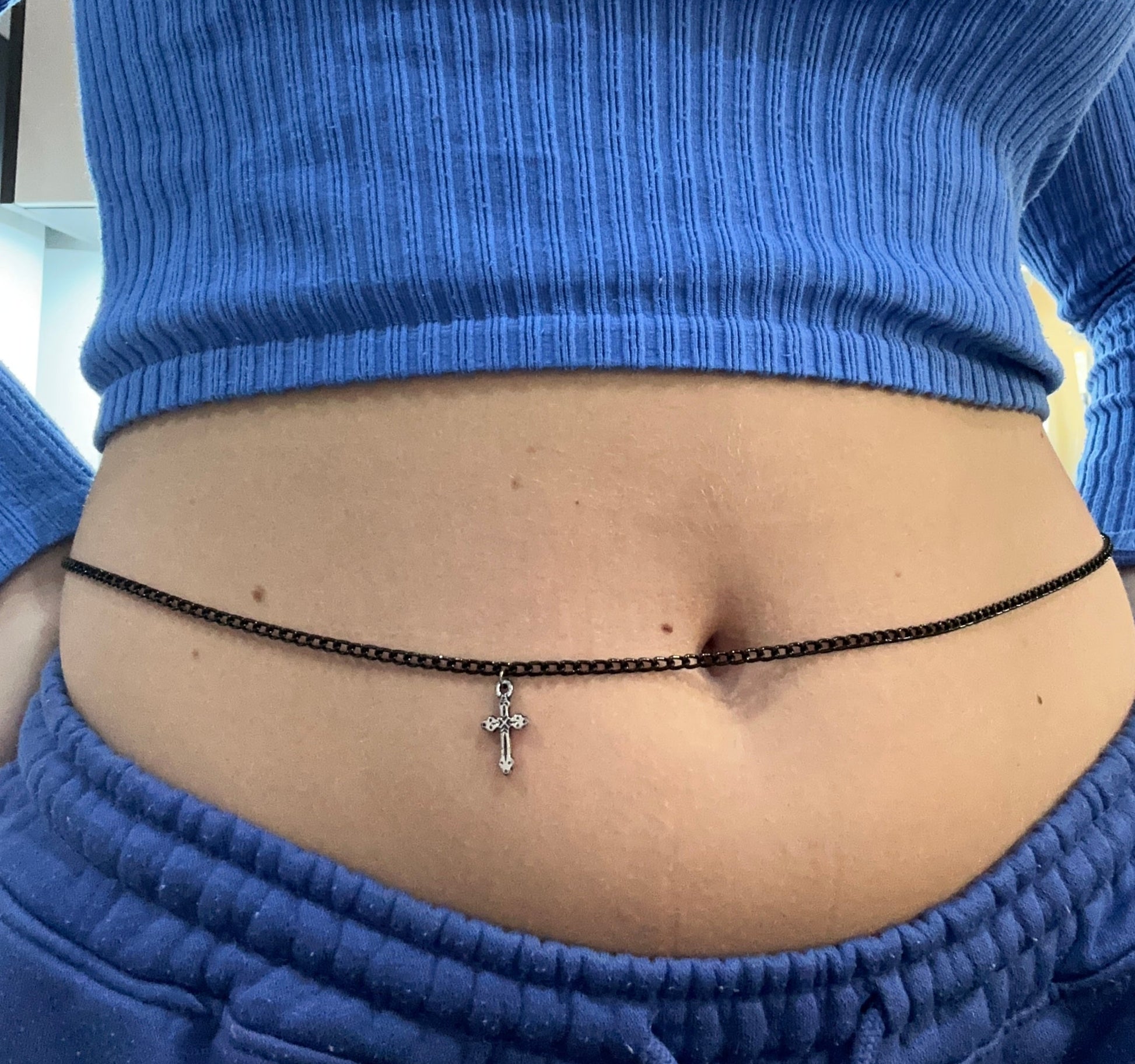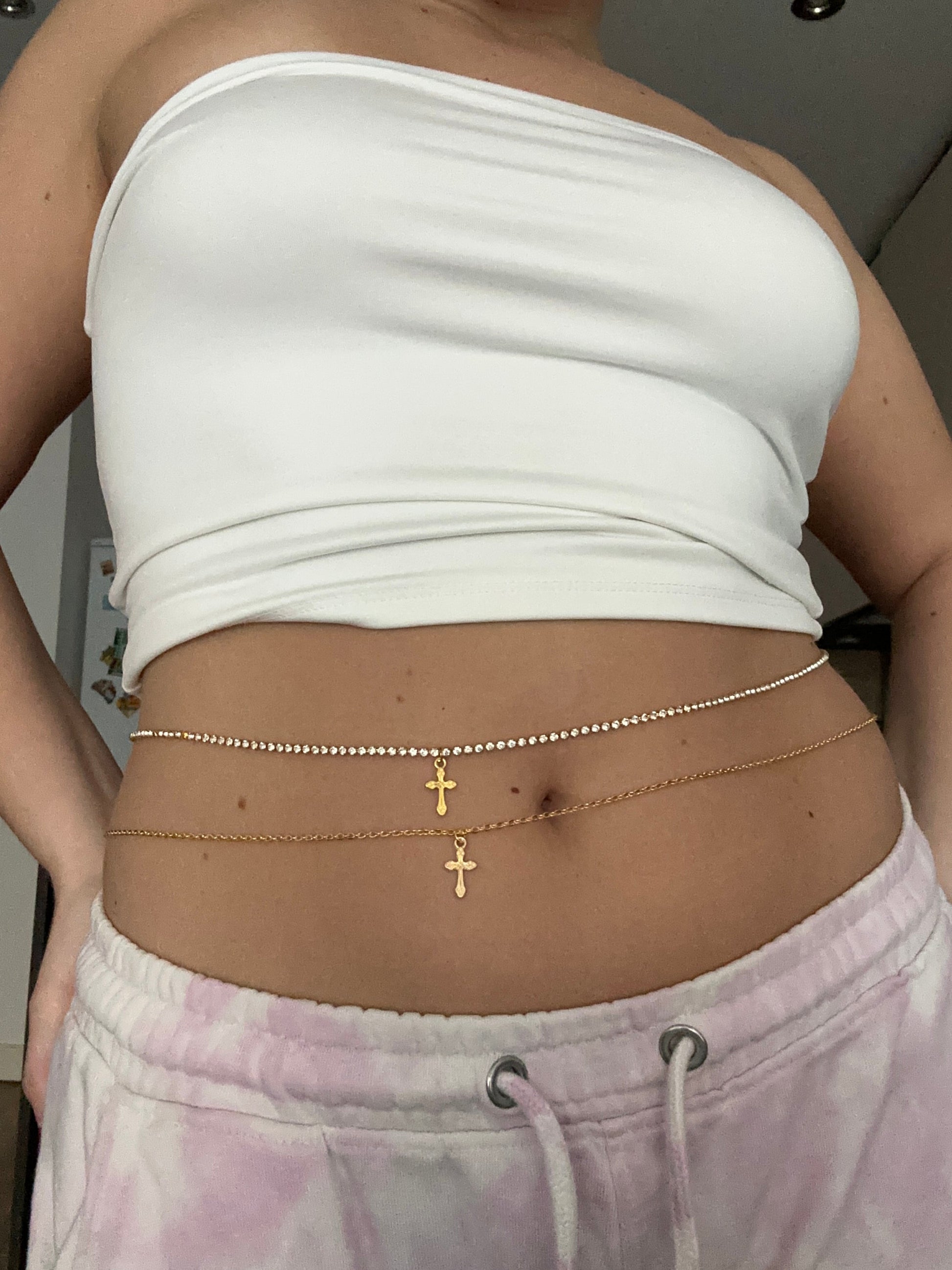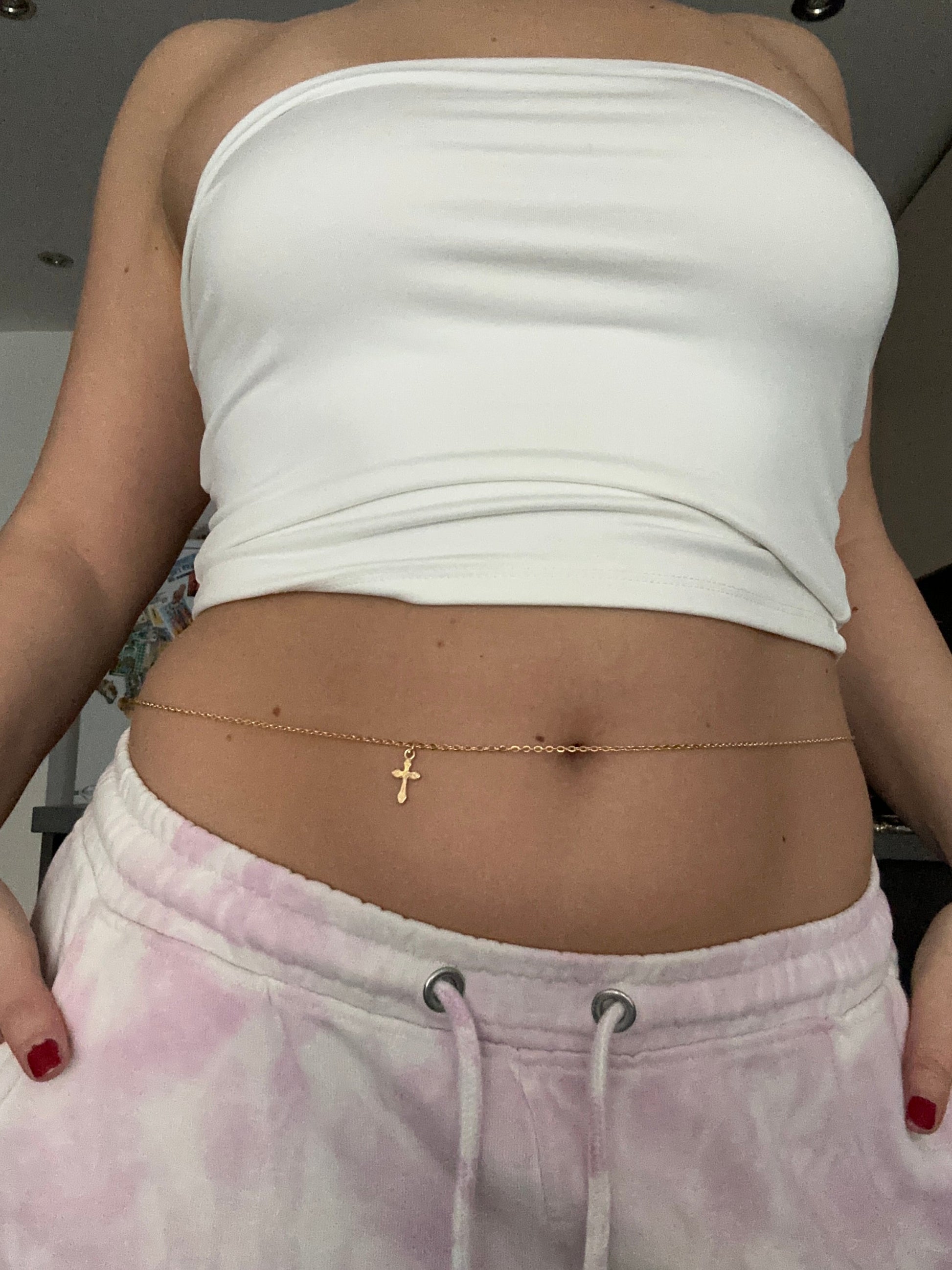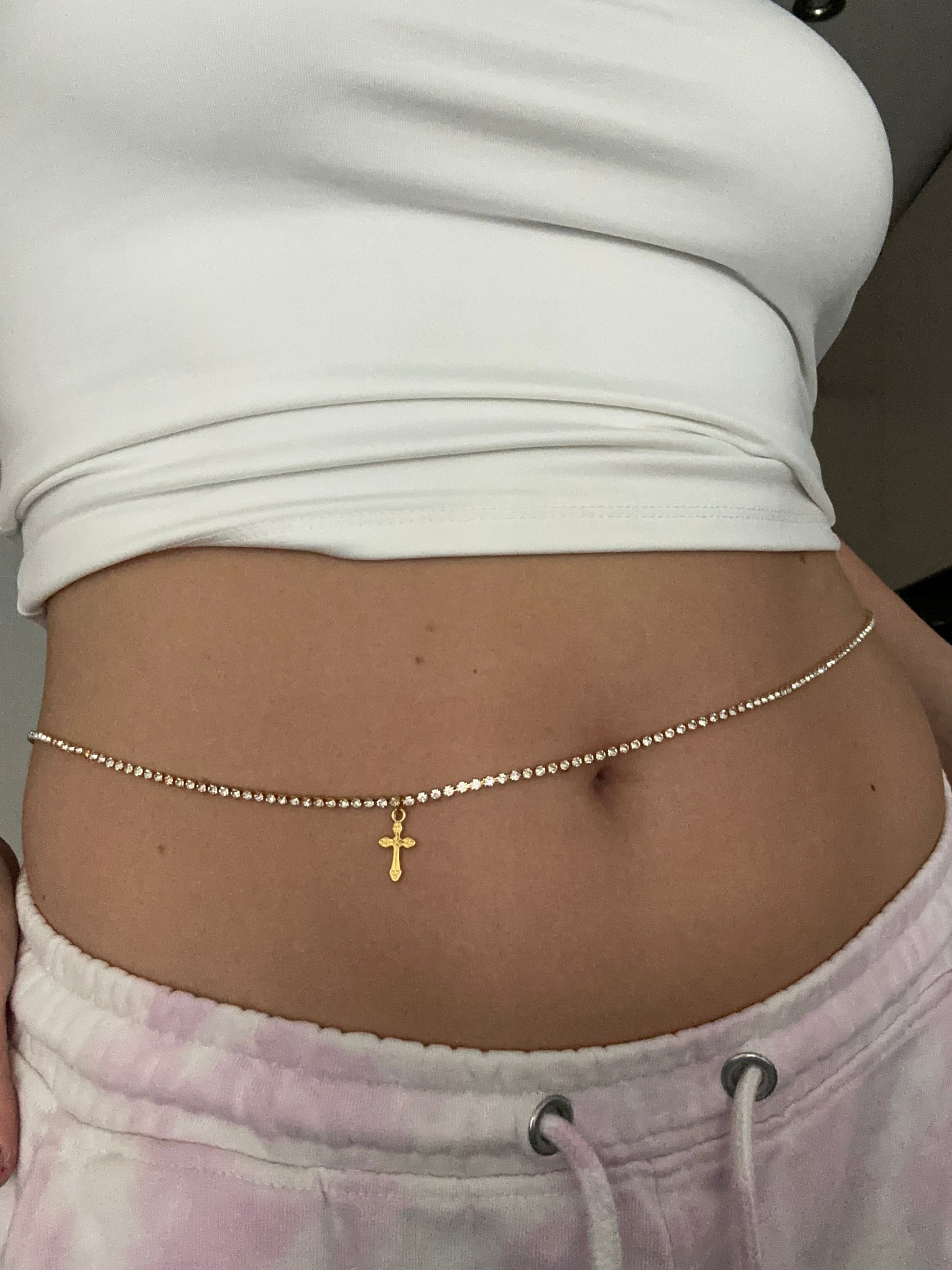 Small cross pendant belly chain