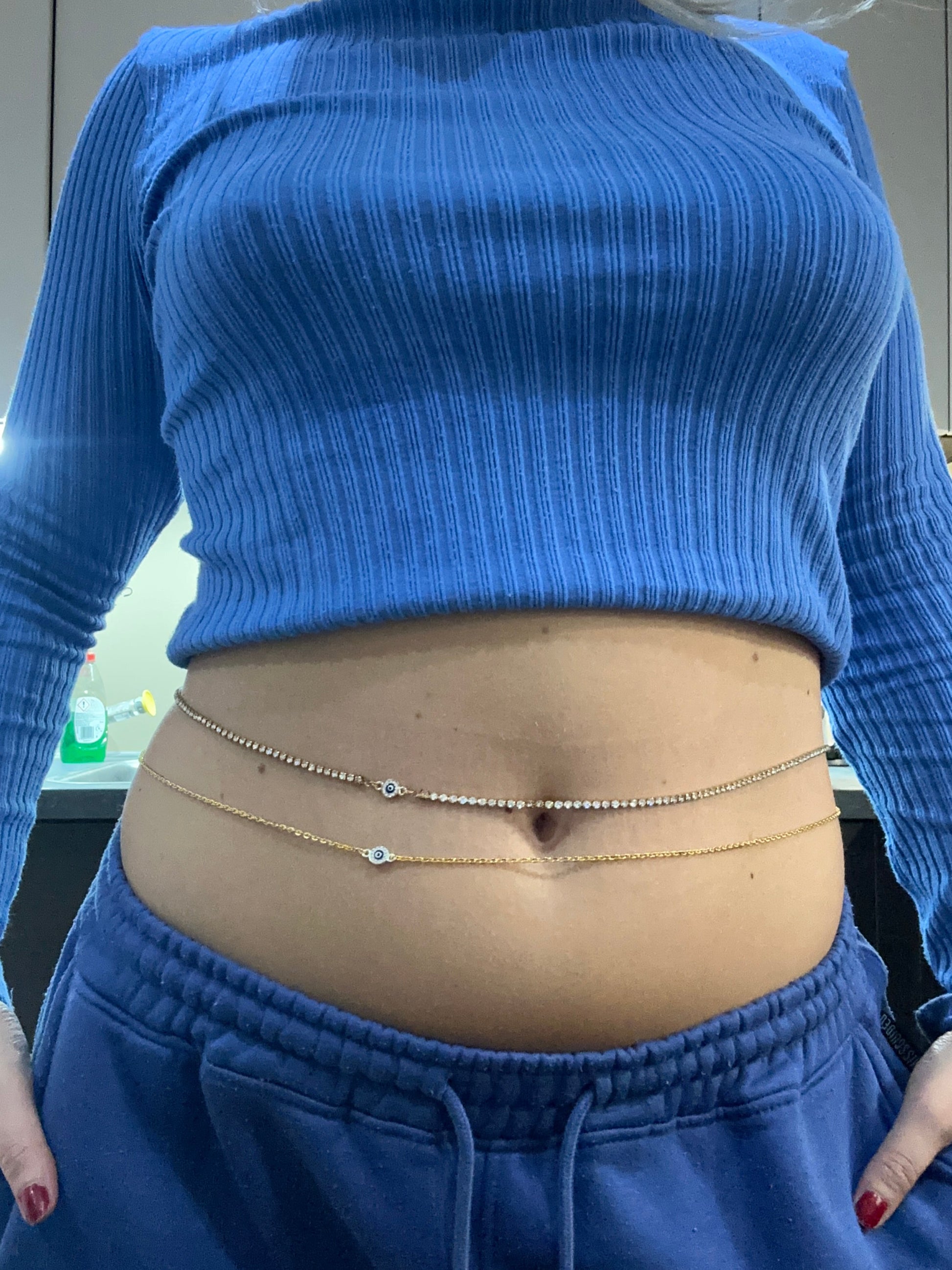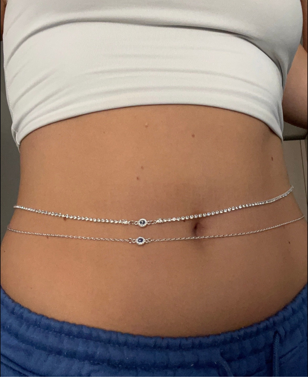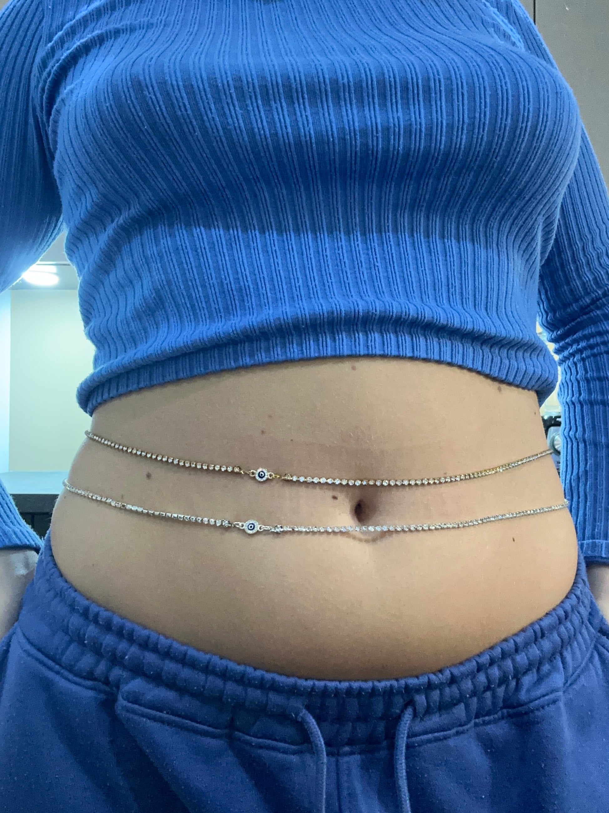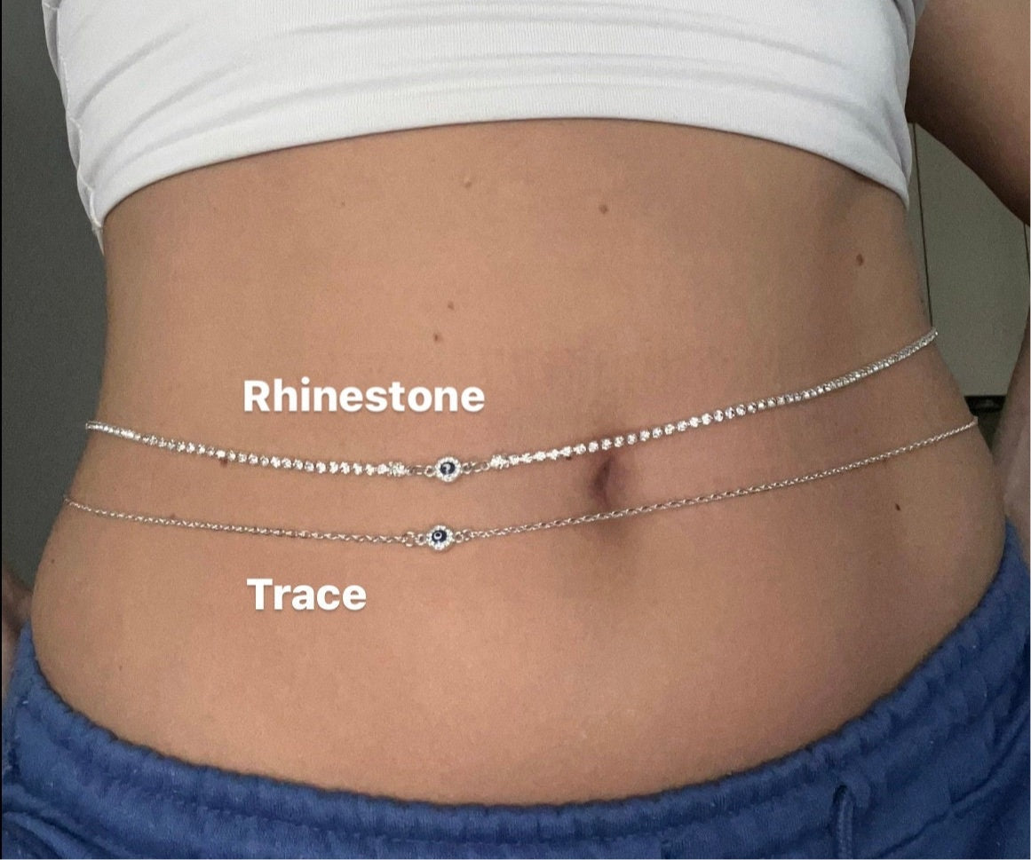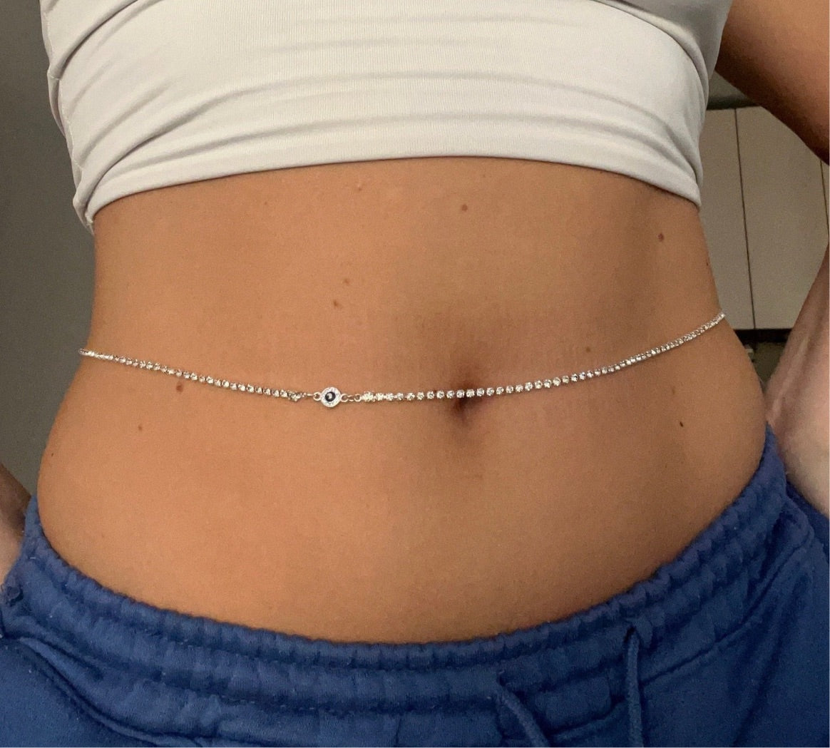 Small crystal evil eye belly chain