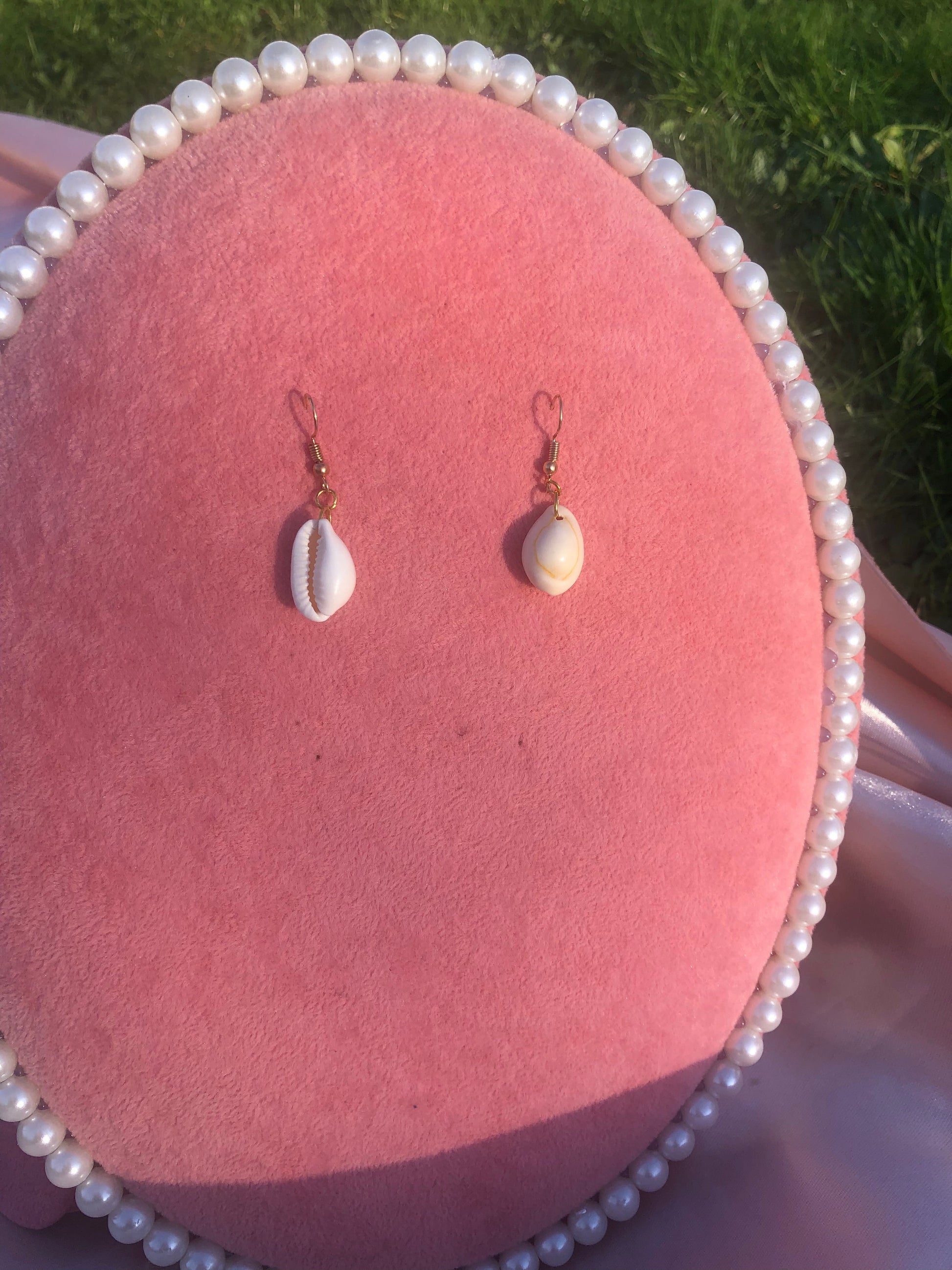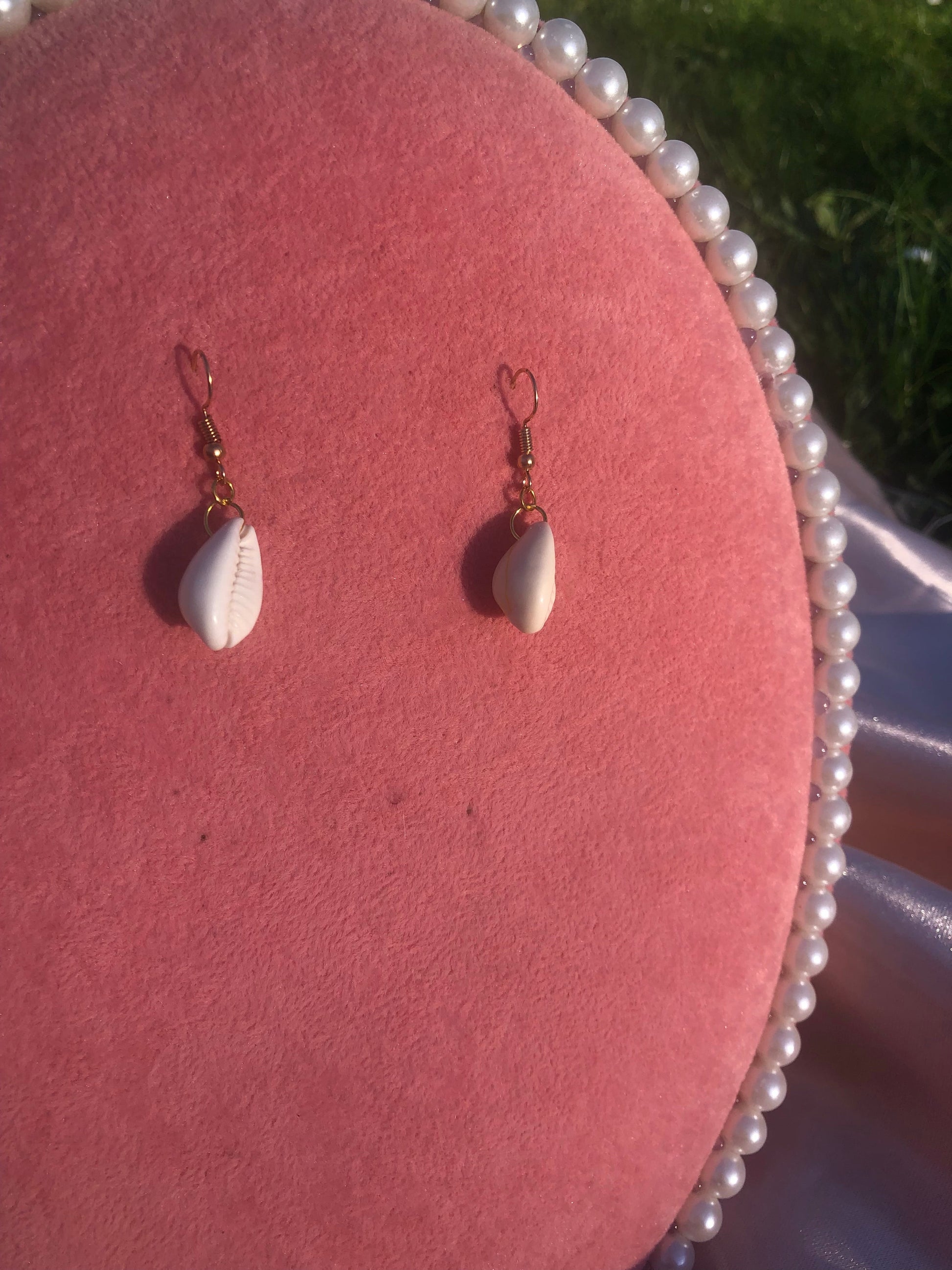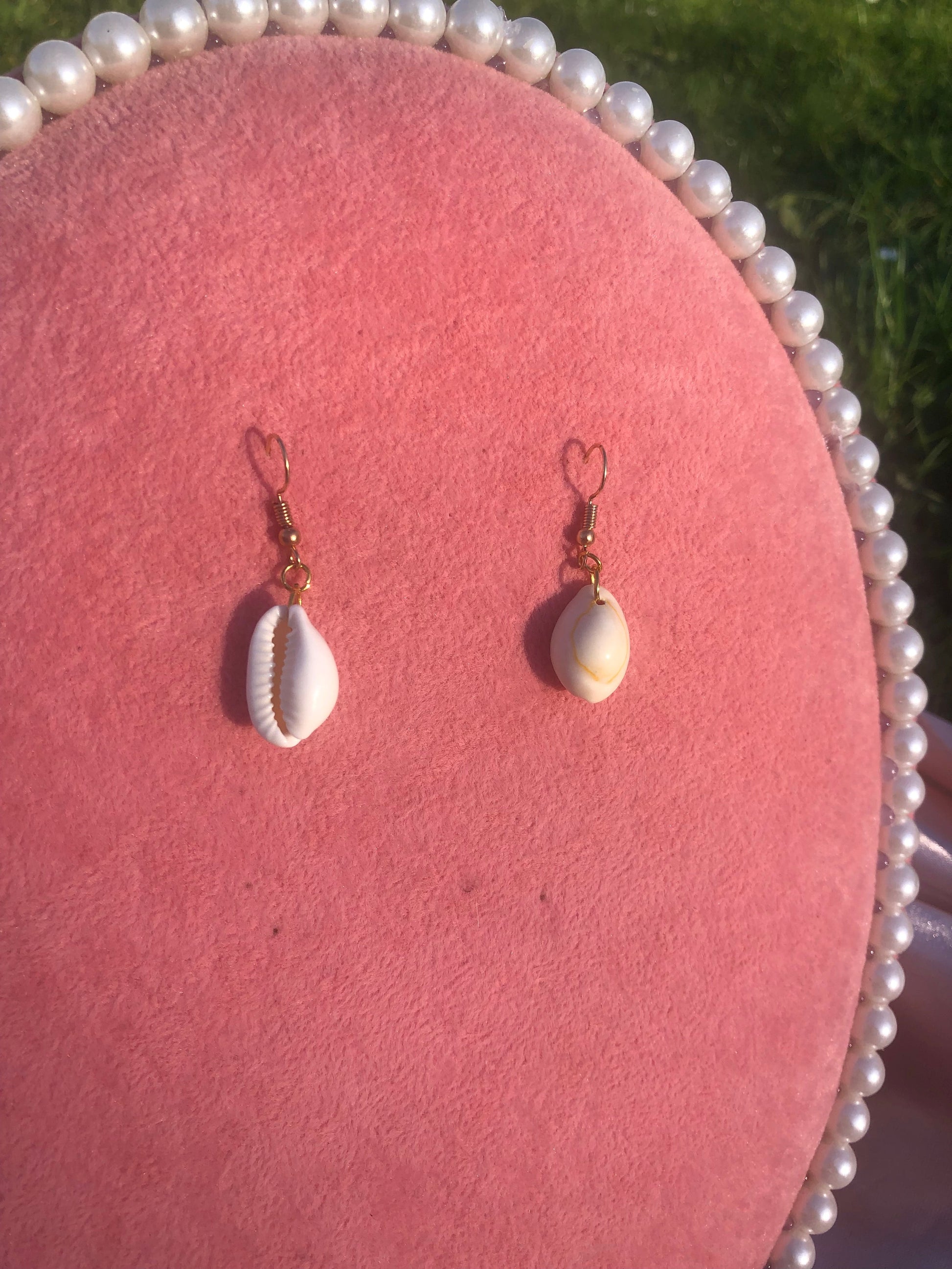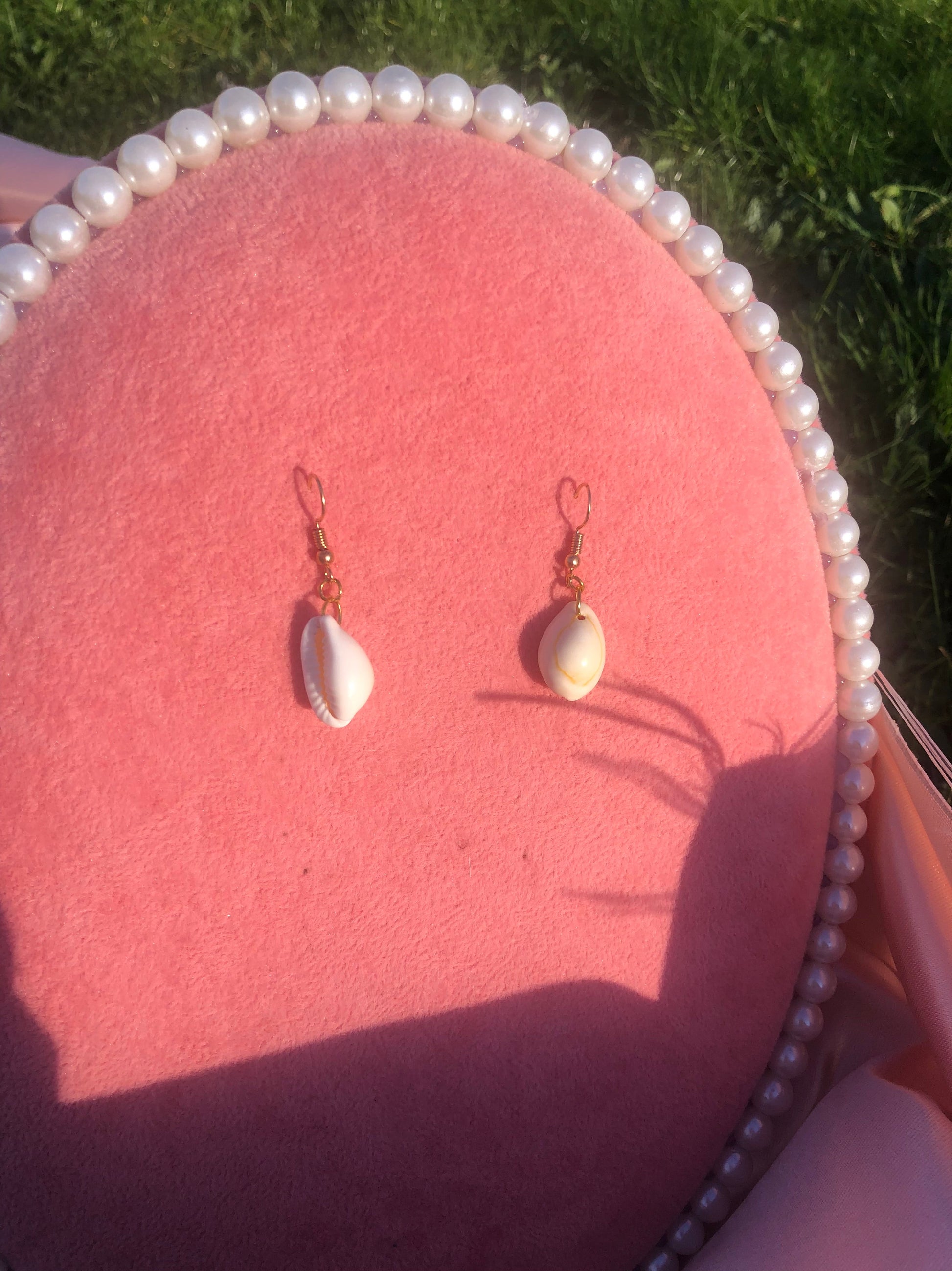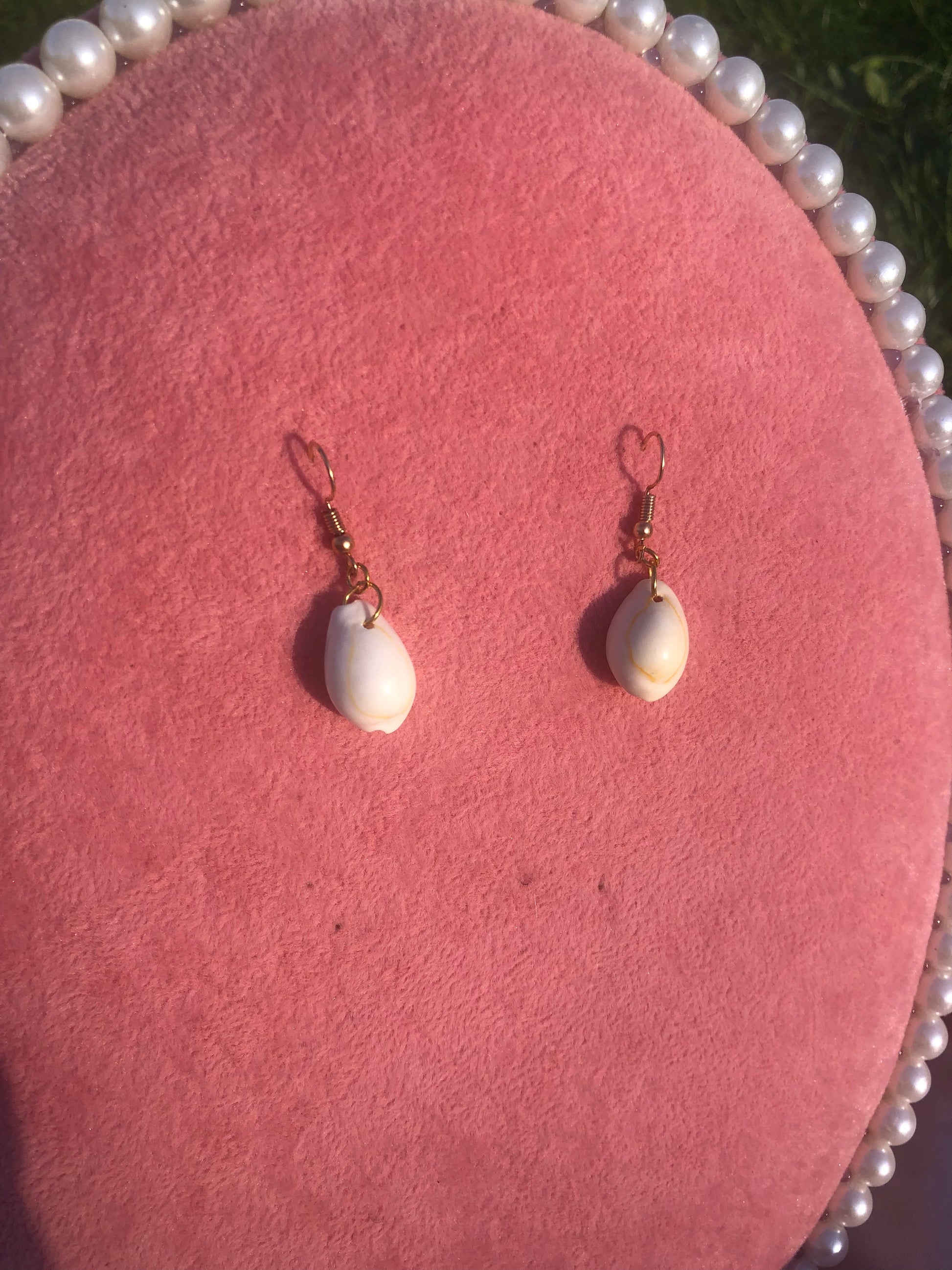 Cute handmade earrings with seashell pendants.