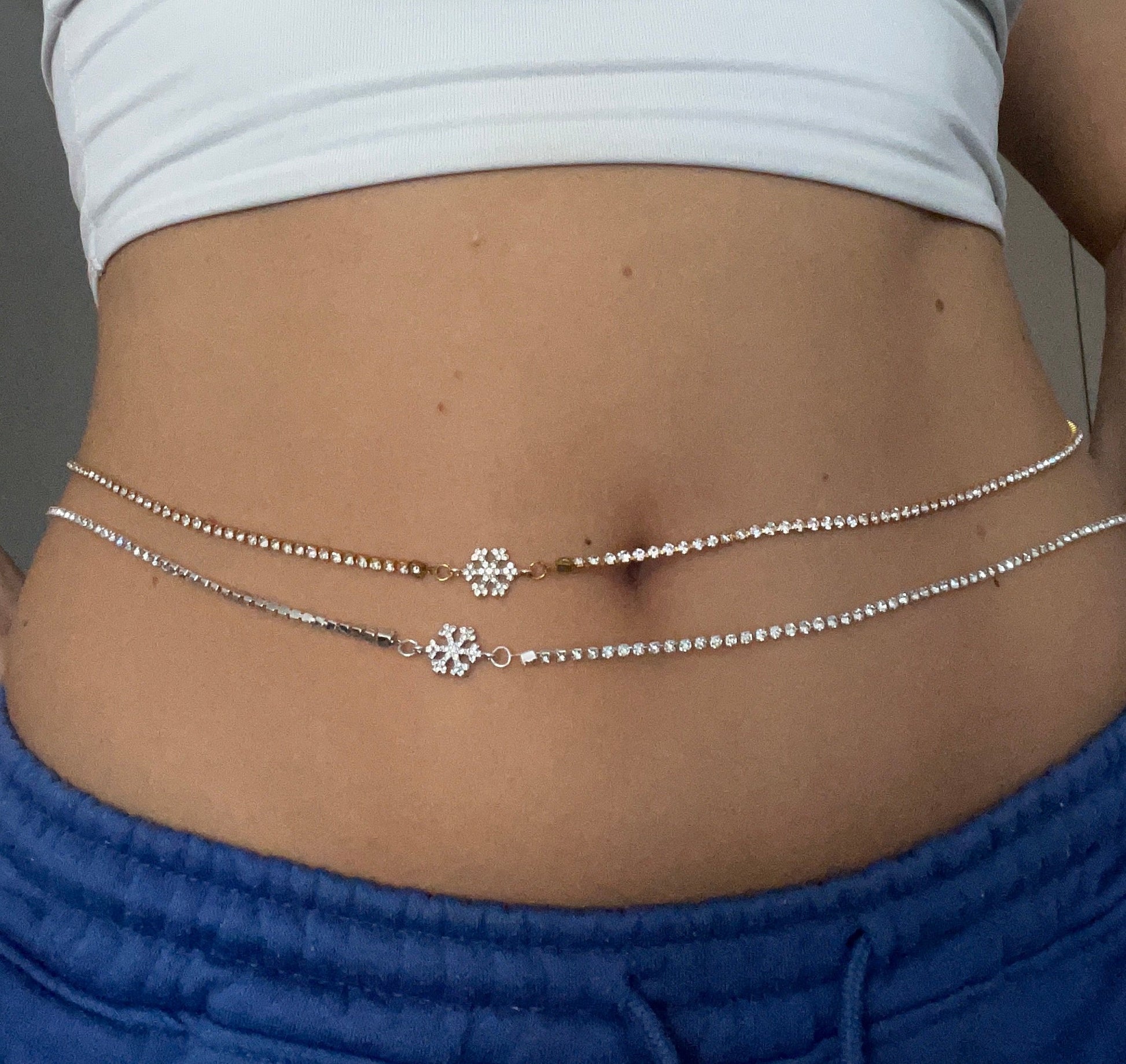Beautiful handmade belly chain with cute snowflake pendant detail.