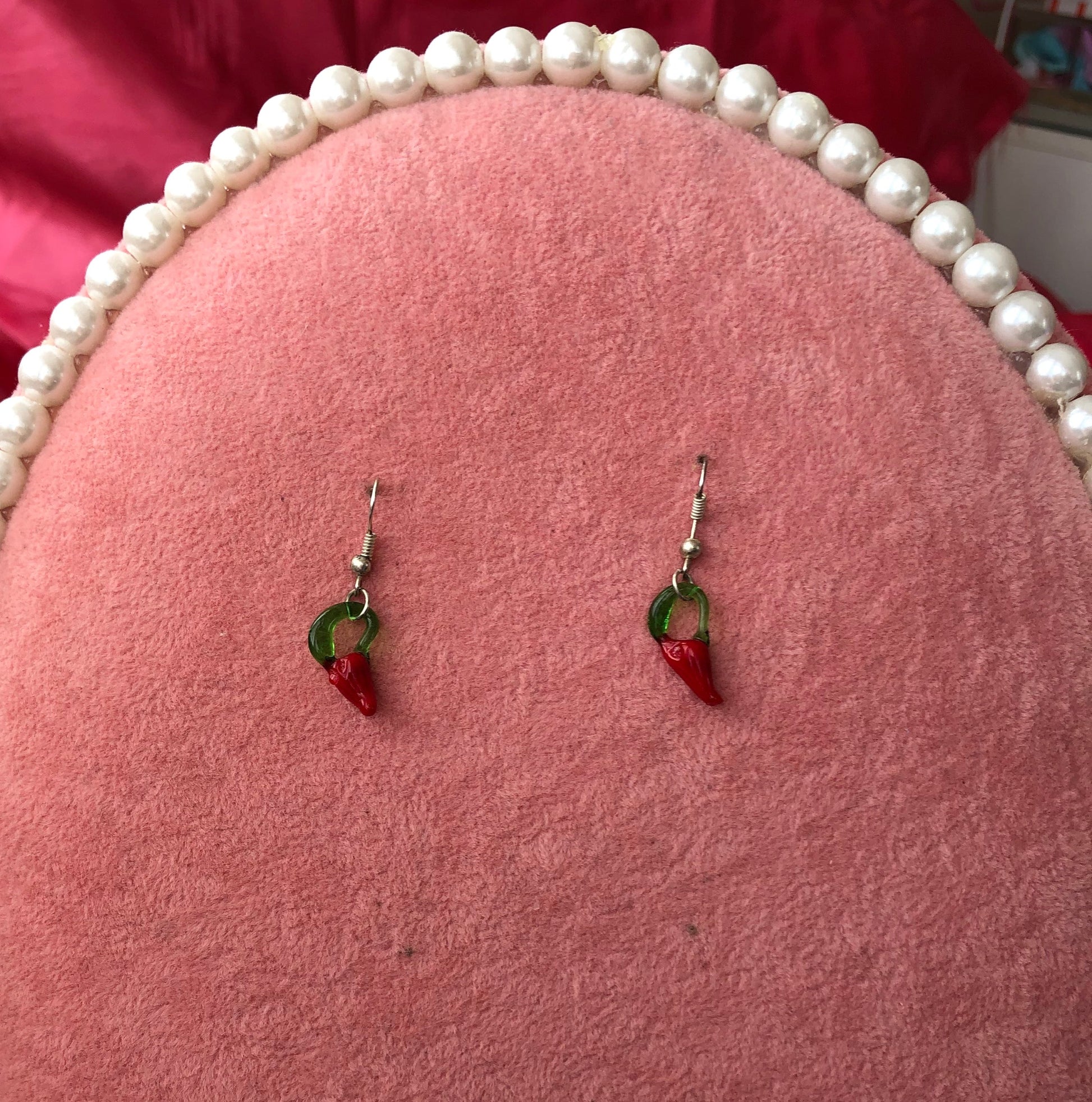 Cute red peppers earrings. Great to combine with the spicy necklace as a set.