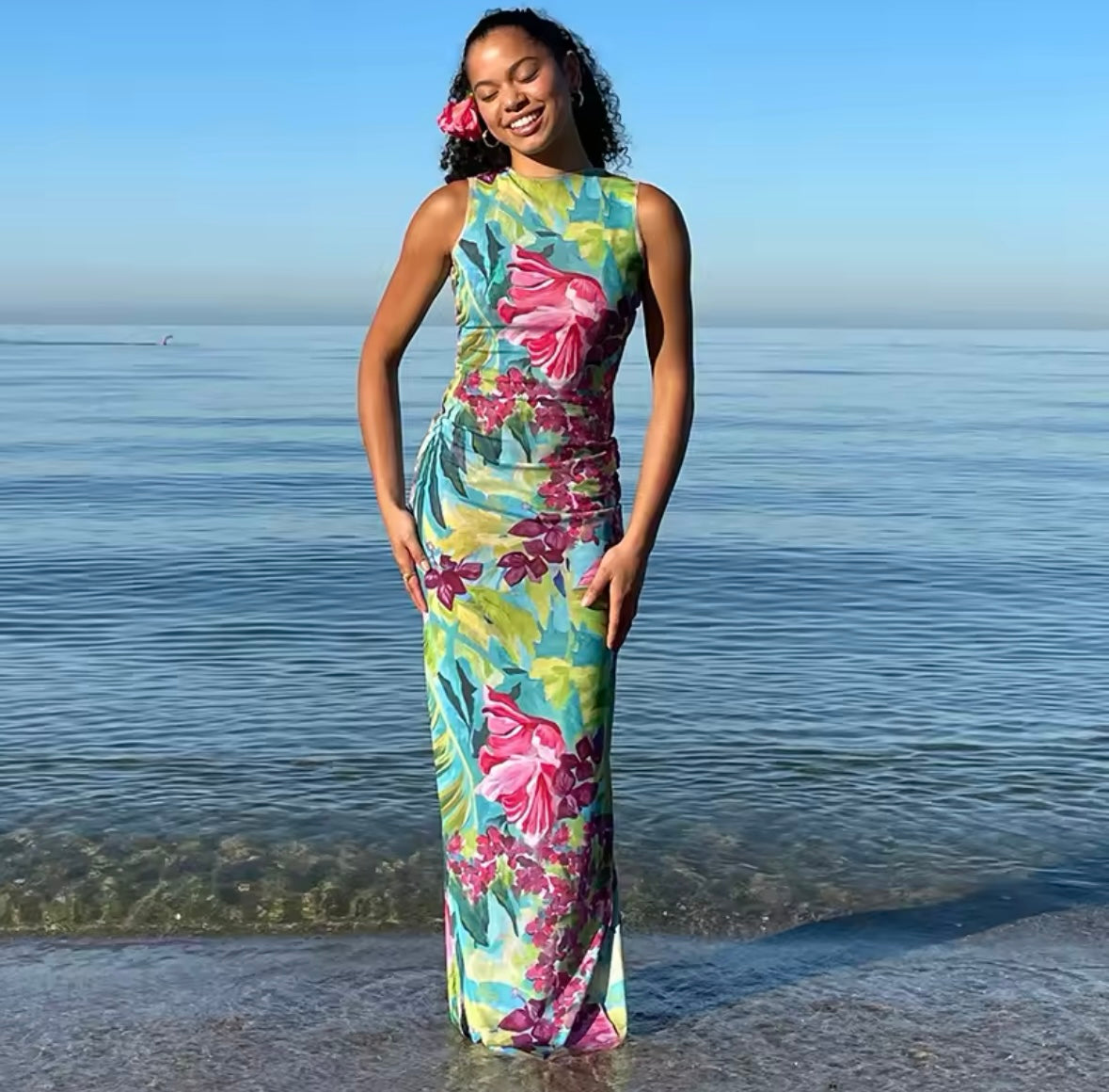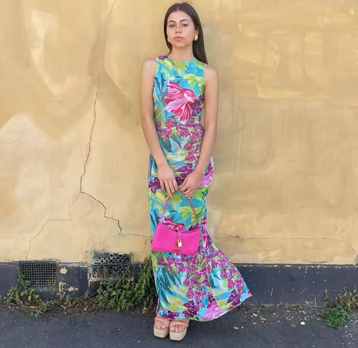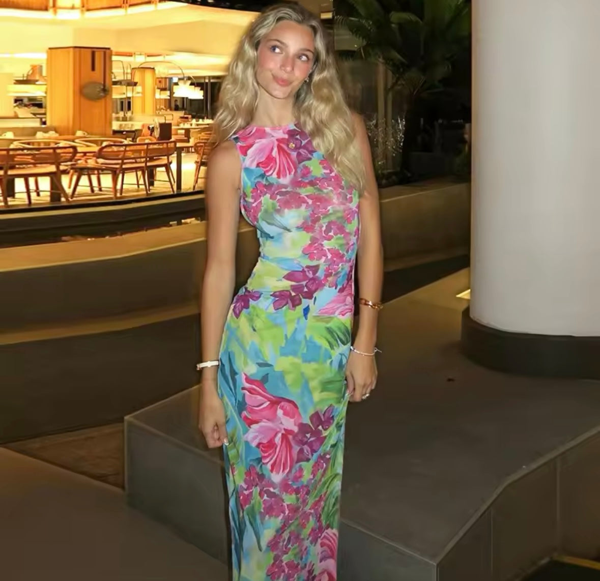 Stay stylish this spring with our Maxi Flower Print Dress. Crafted with intricate flower designs, this dress is perfect for any occasion. Elevate your wardrobe with this must-have piece.