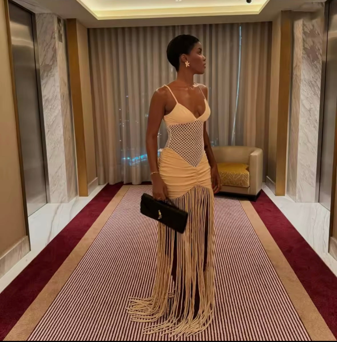 Introducing our new Summer Maxi Tassel Dress in beige. Made with lightweight and breathable fabric, this dress is perfect for warm summer days. The tassel details adds a touch of bohemian flair, making it a stylish and comfortable option for any occasion. Stay cool and chic this summer with our maxi tassel dress.