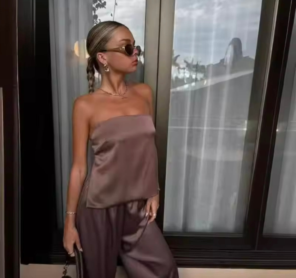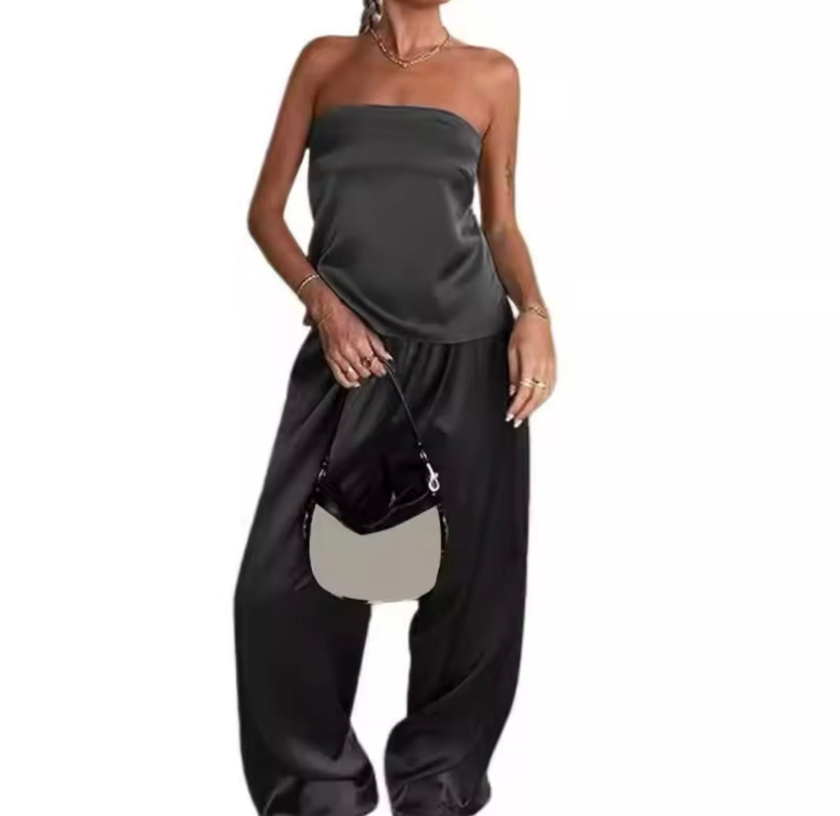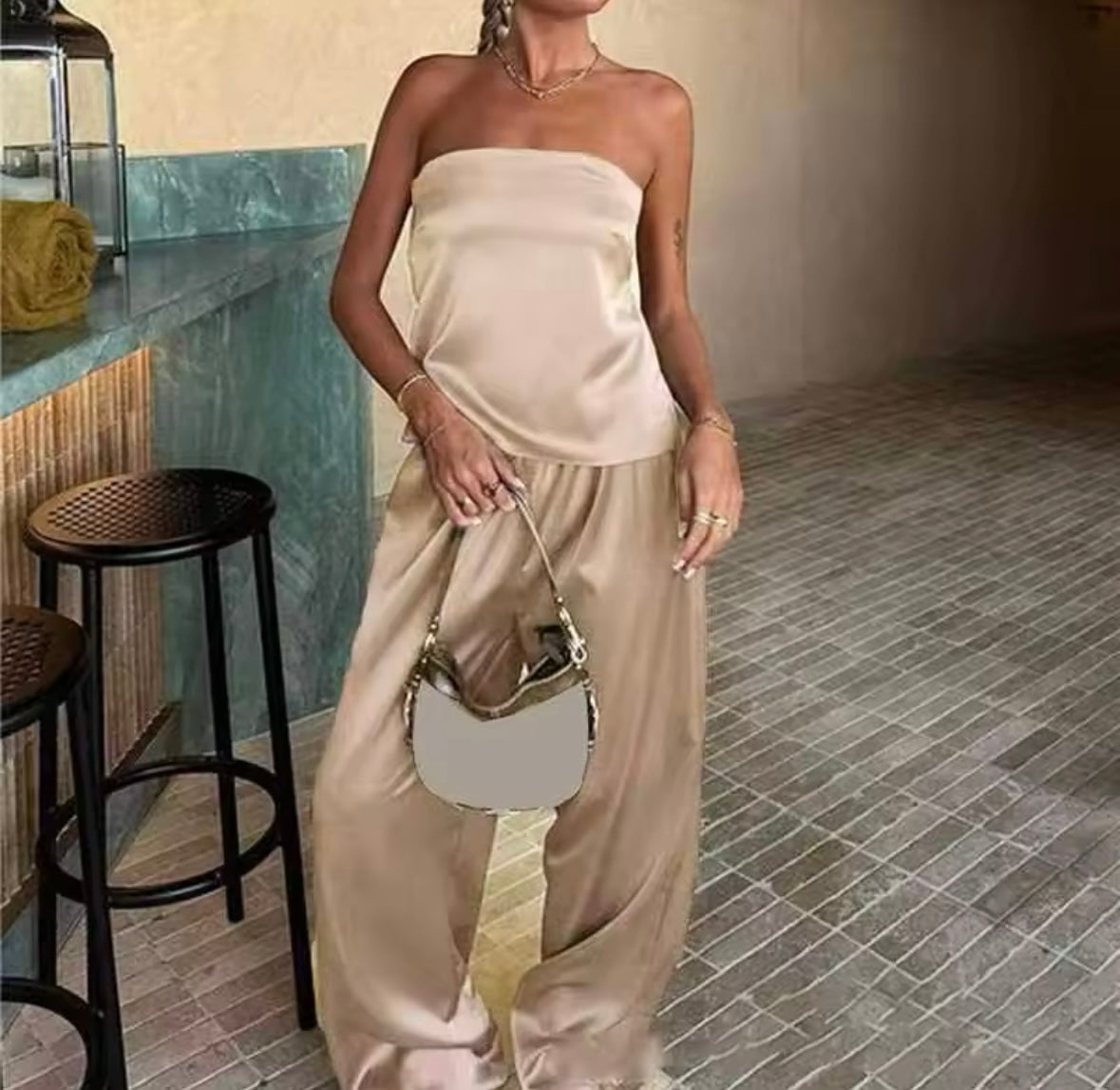 Elevate your style with our Satin Co Ord set. Made with luxurious satin like material, this set exudes elegance and sophistication. Perfect for any occasion, it offers a polished and put-together look. Get ready to make a statement with our Satin Co Ord.