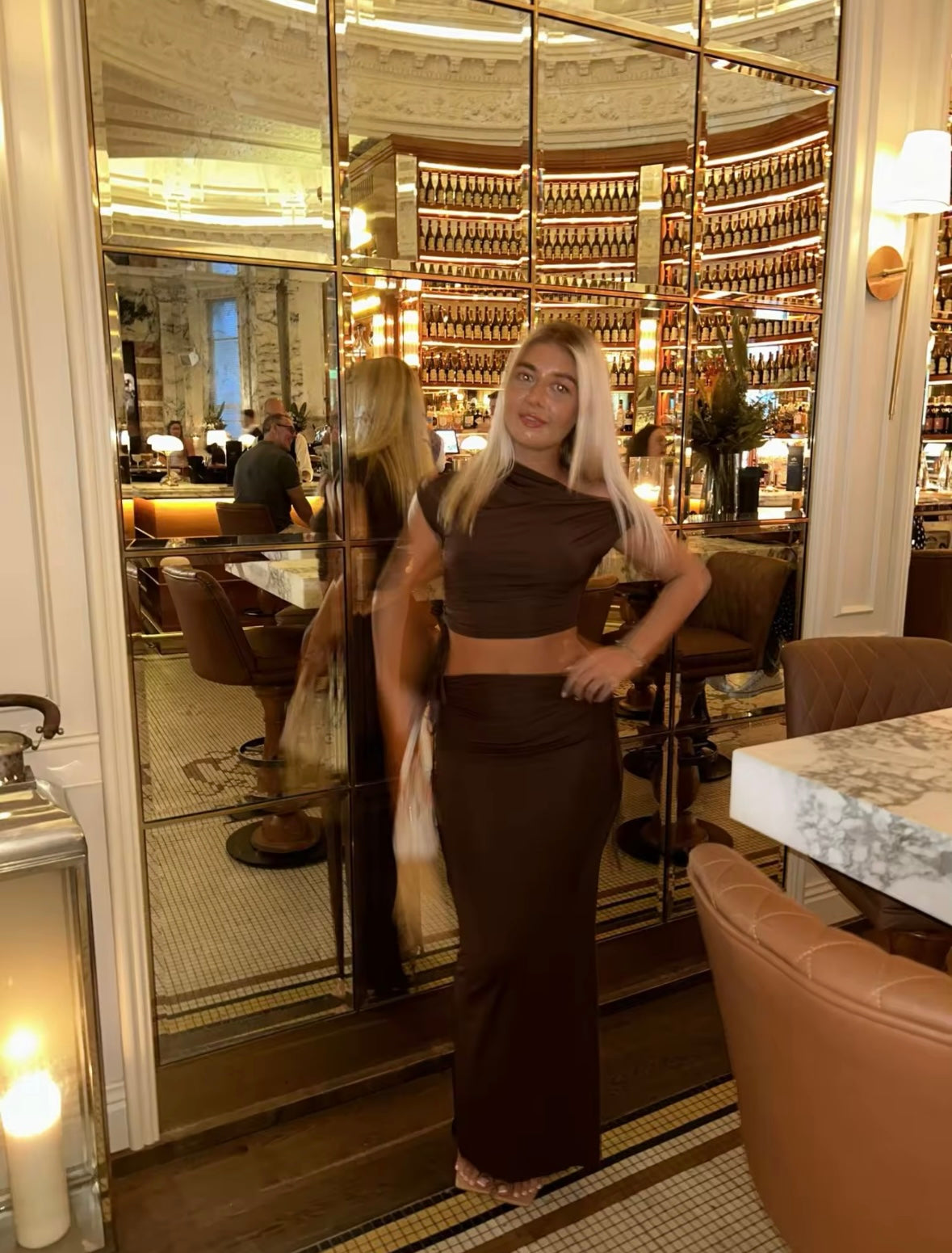 This crop top and maxi skirt co ord set combines trendy style with versatile function. The cropped style of the top offers a modern and flattering look, while the maxi skirt provides comfort and coverage. Perfect for any occasion, this two piece set is a must-have for your wardrobe.
