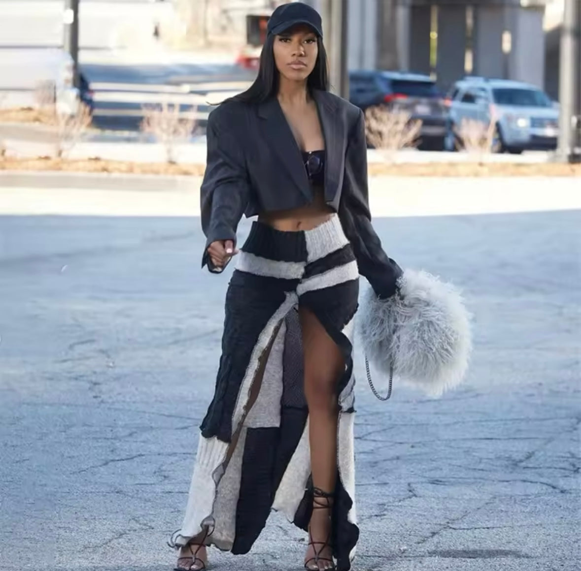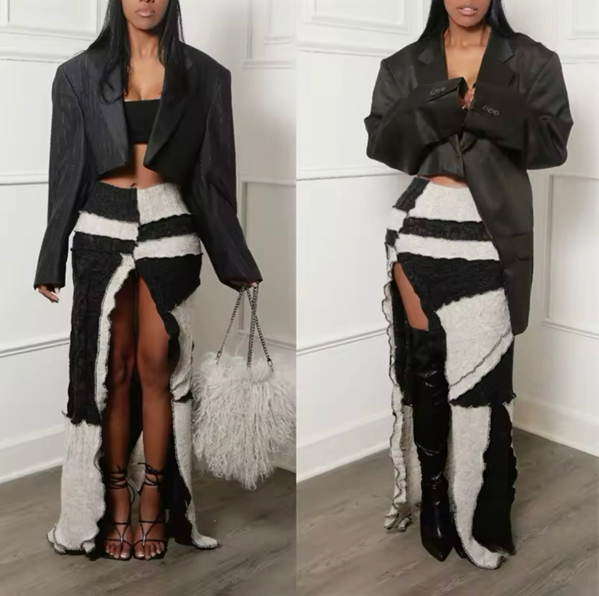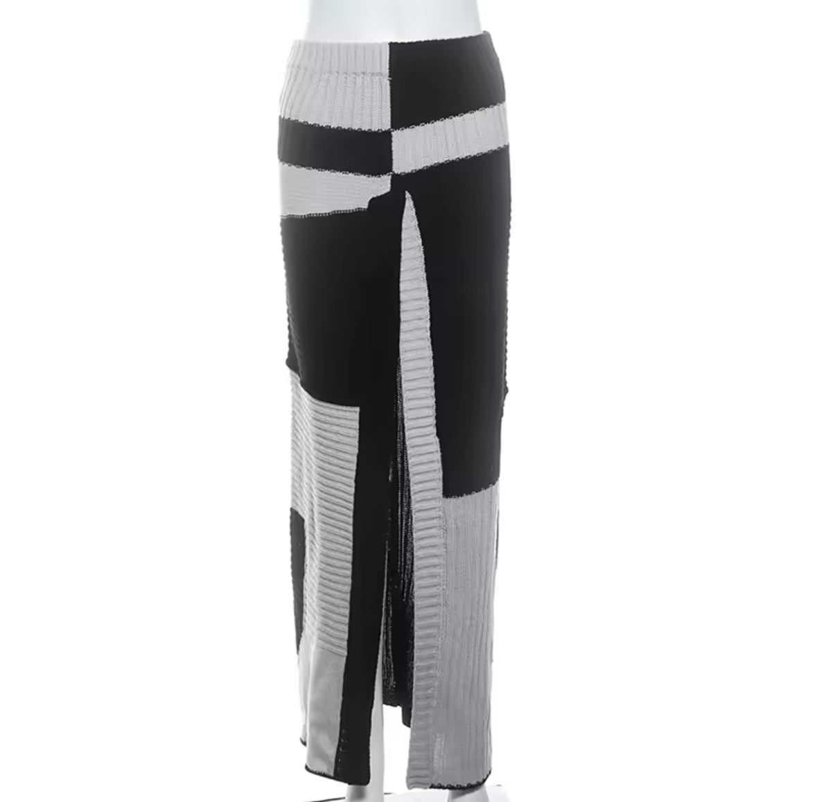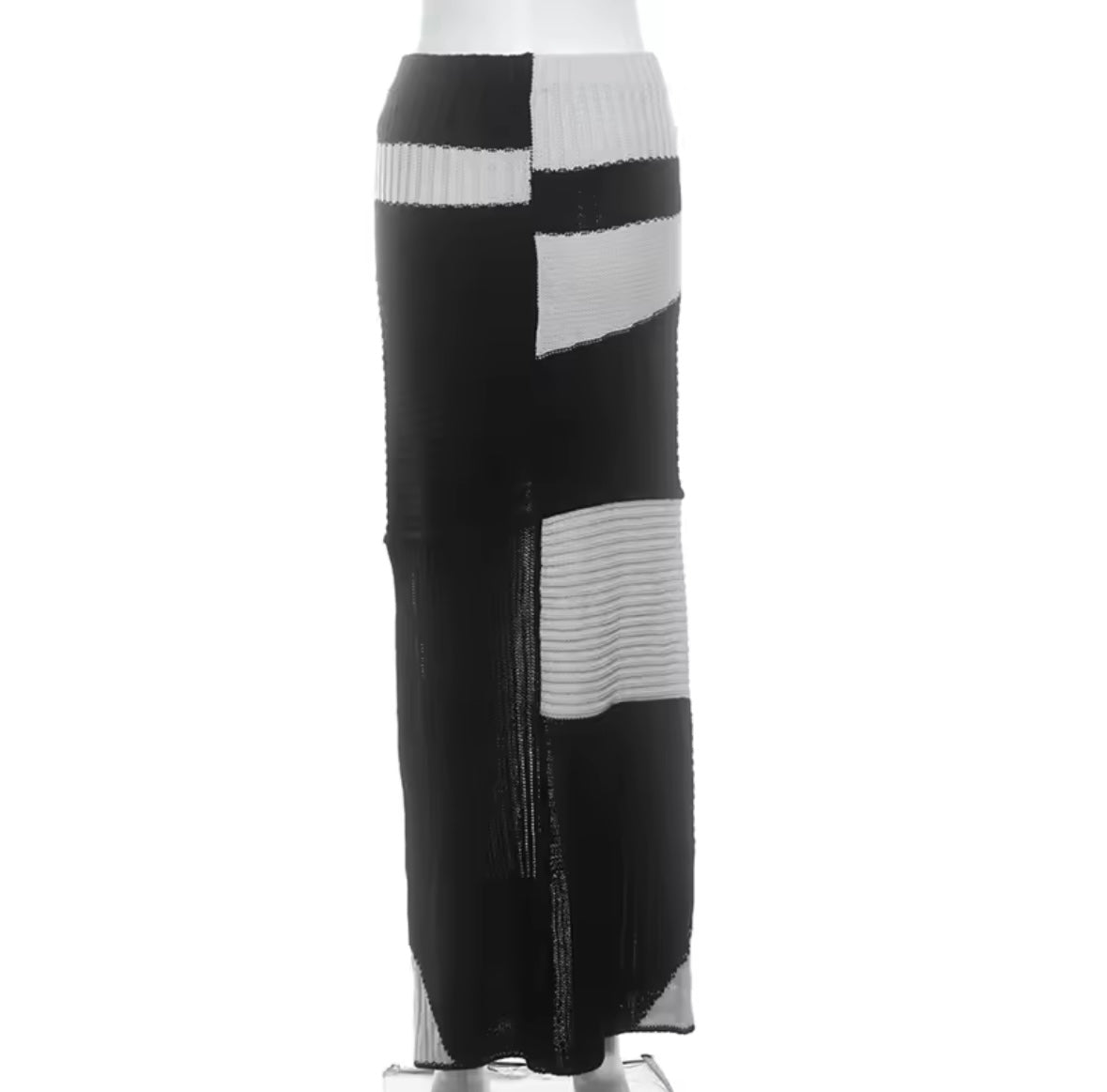 This Colour Block Maxi Skirt is a versatile addition to any wardrobe. Made with a soft knit material, it features a unique colour block design that adds a touch of style to any outfit. Its maxi length offers both comfort and fashion, making it perfect for any occasion. Elevate your look with this must-have piece.