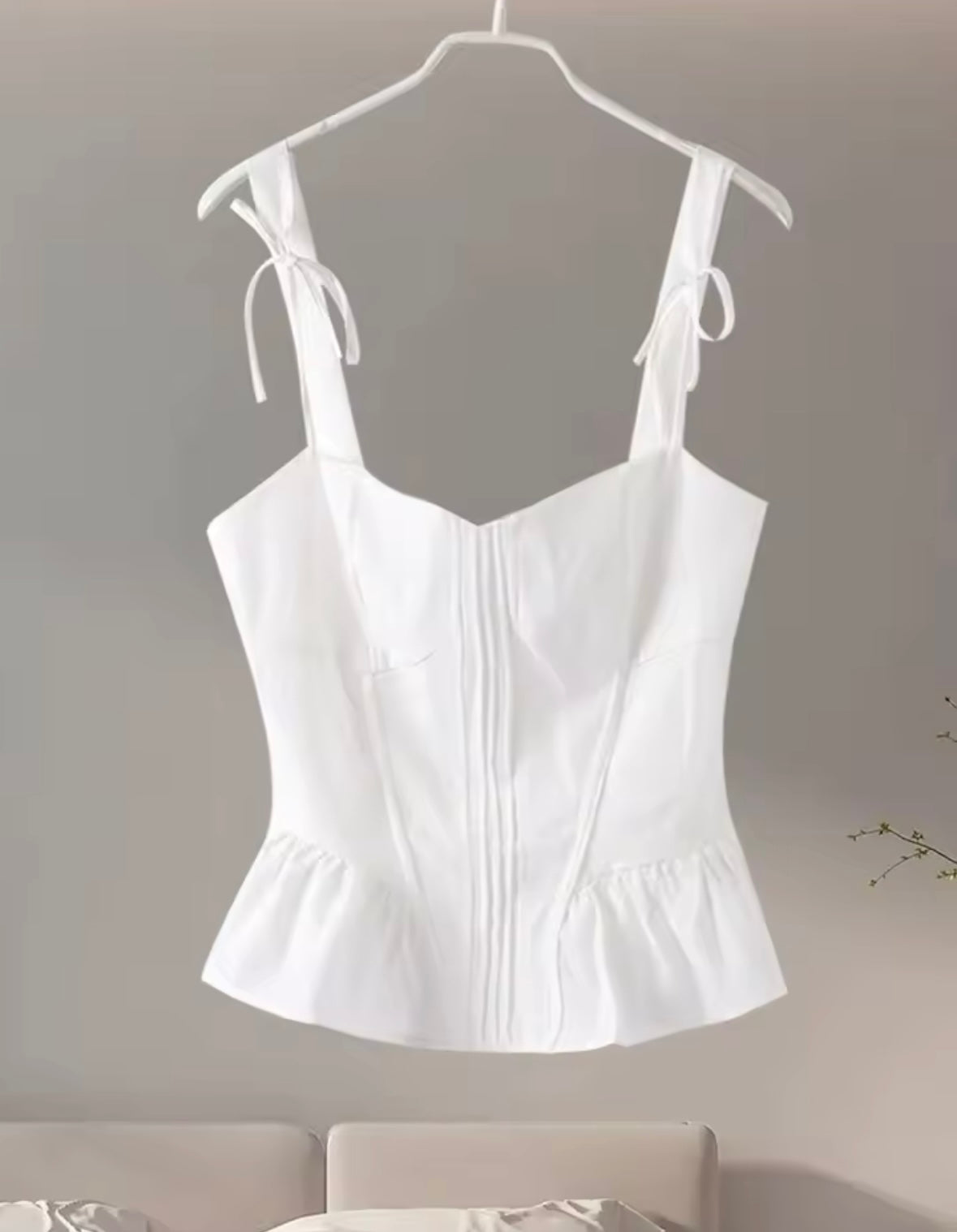 This white dainty top is expertly crafted from high-quality materials, providing both style and comfort. Its delicate design adds a touch of elegance to any outfit, making it a versatile piece for any occasion. Made with meticulous attention to detail, this top is a must-have for any wardrobe.