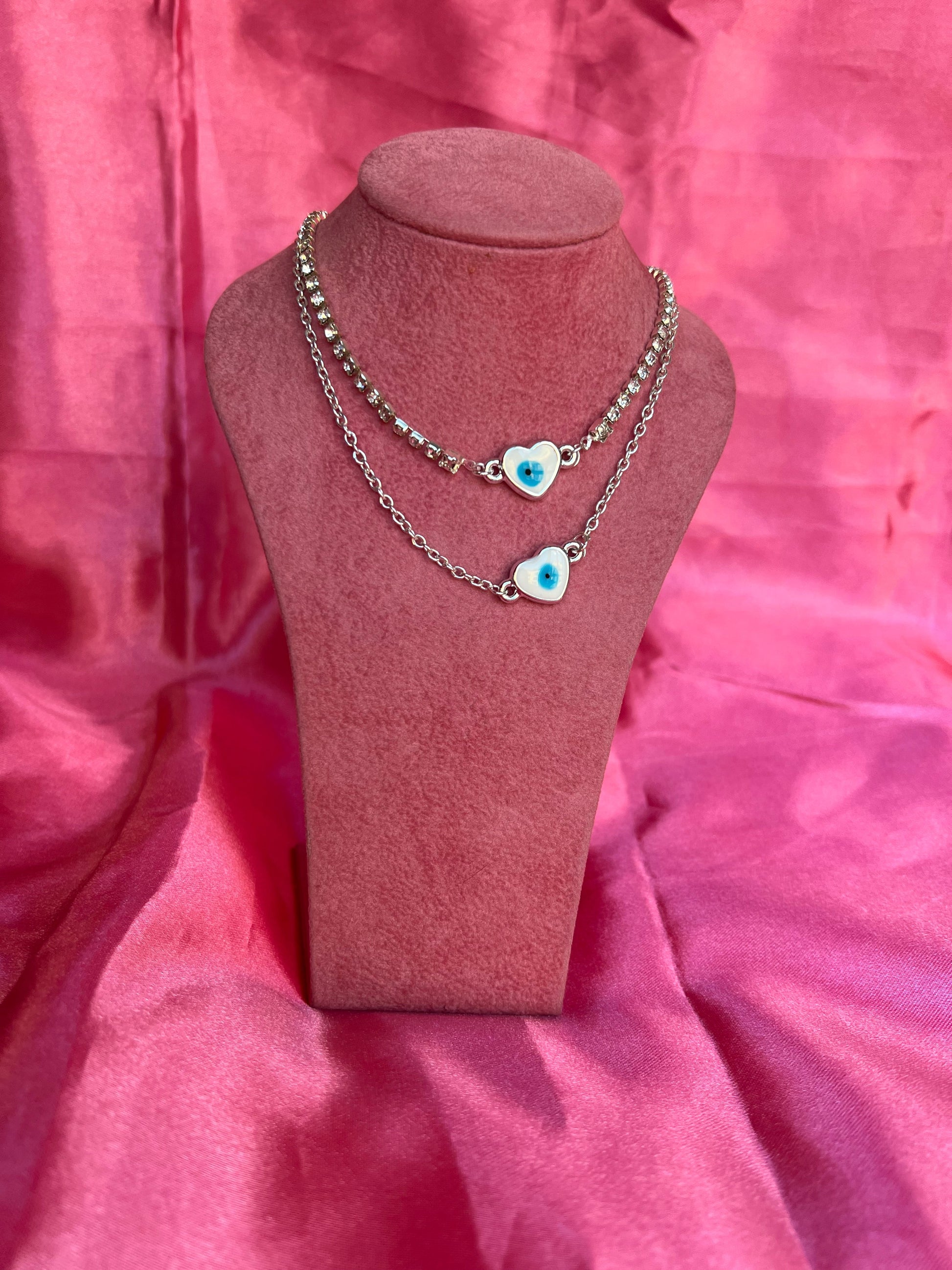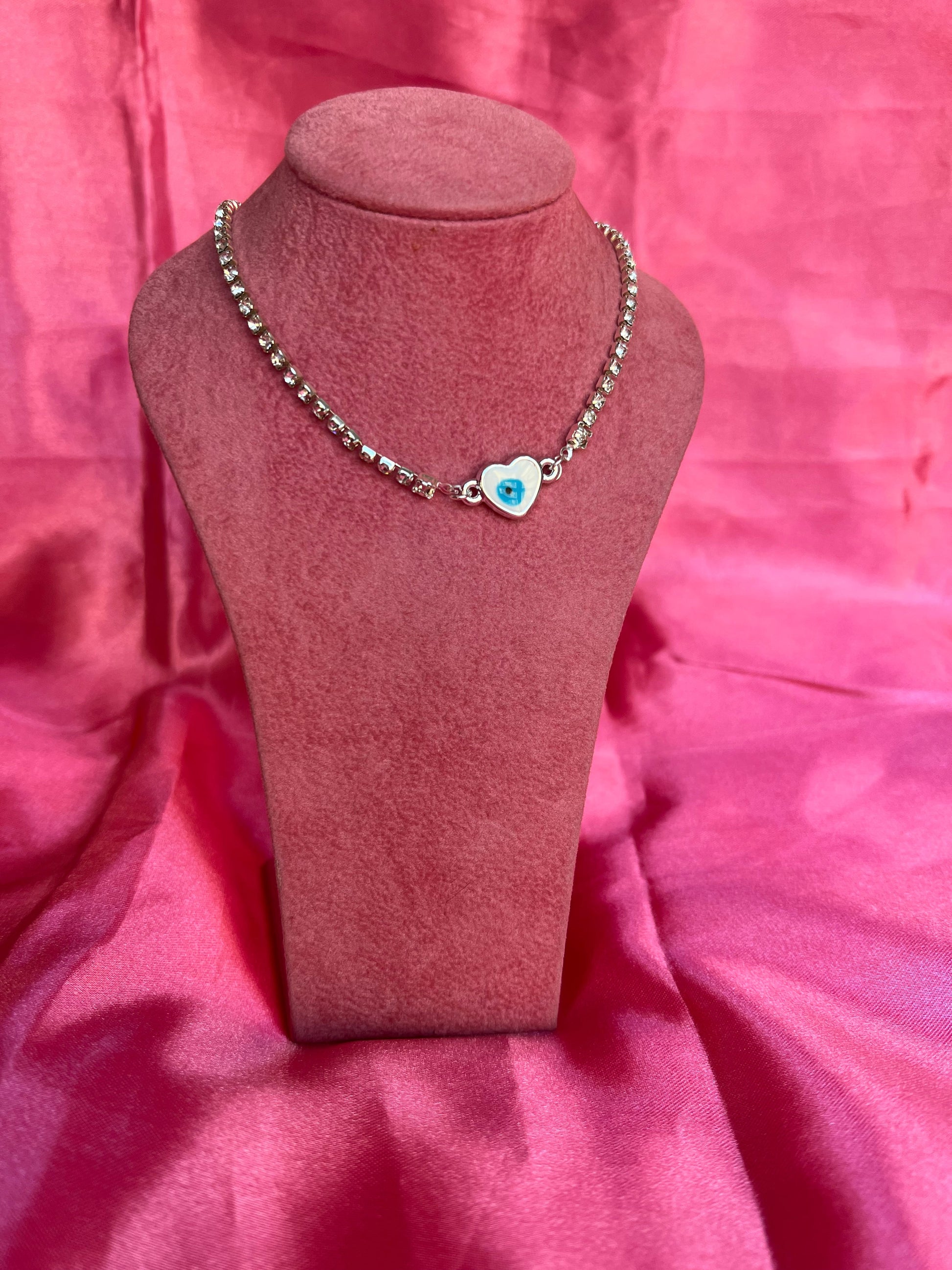 Cute necklace with heart shaped evil eye pendant.