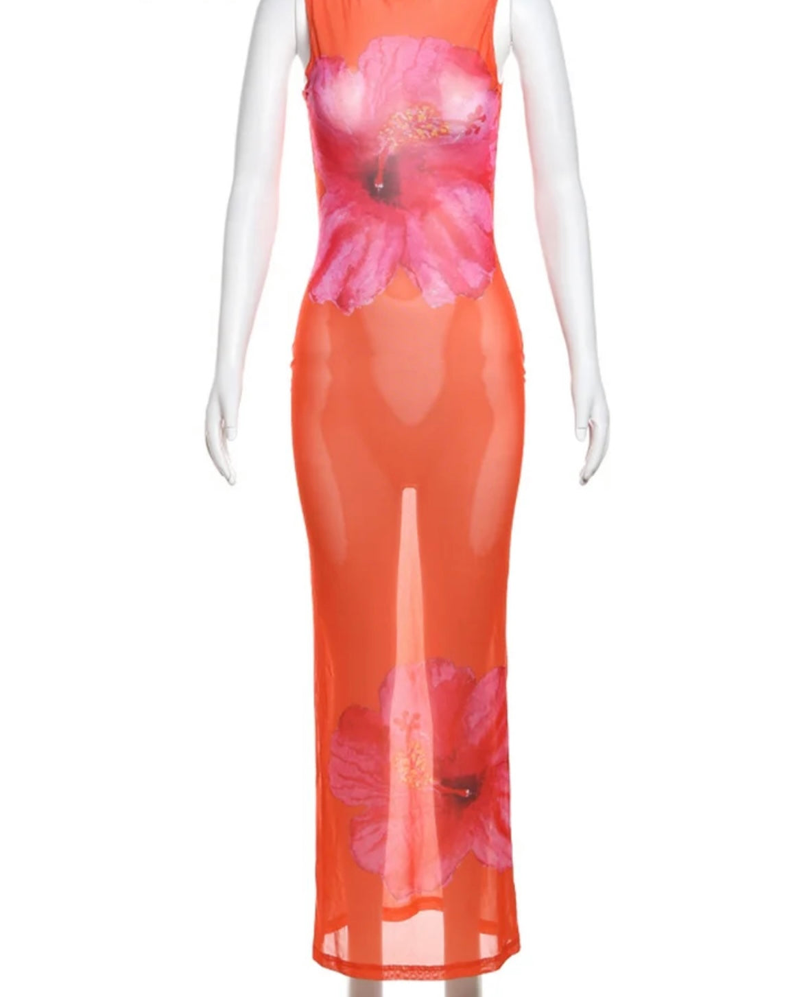 Expertly designed for maximum comfort and style, this orange mesh maxi dress is the perfect addition to your beach wardrobe. Elevate your beach look with this must-have dress.