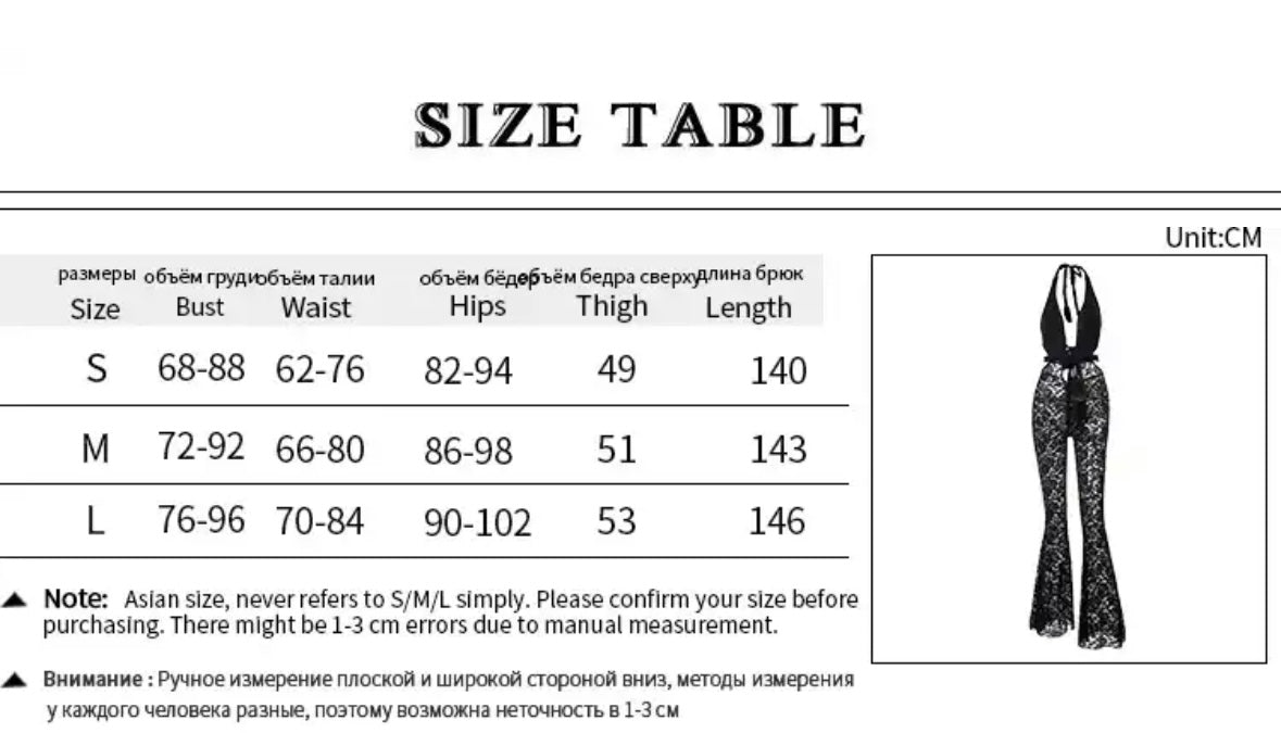 Elevate your style with our lace cut out jumpsuit. Featuring delicate lace detailing, this jumpsuit adds a touch of sexiness to any outfit. Crafted with attention to detail, it's the perfect statement piece for any occasion. Stand out from the crowd and feel confident in this must-have fashion item.