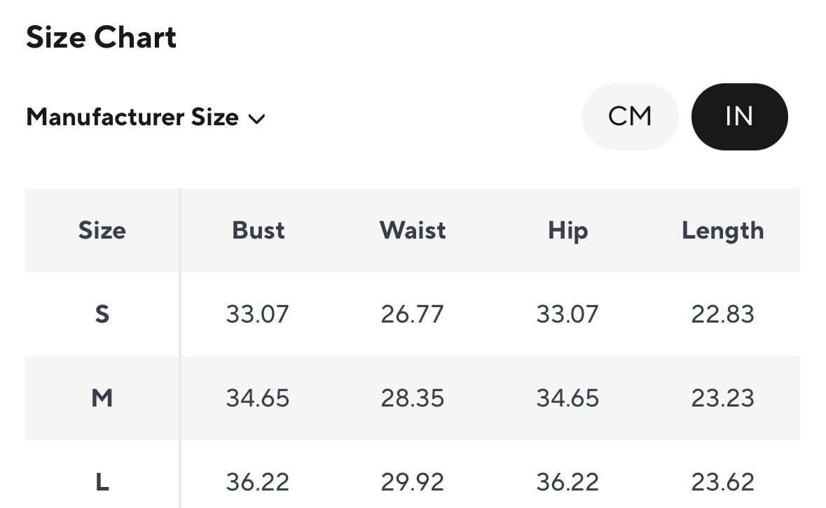 Available in S, M and L