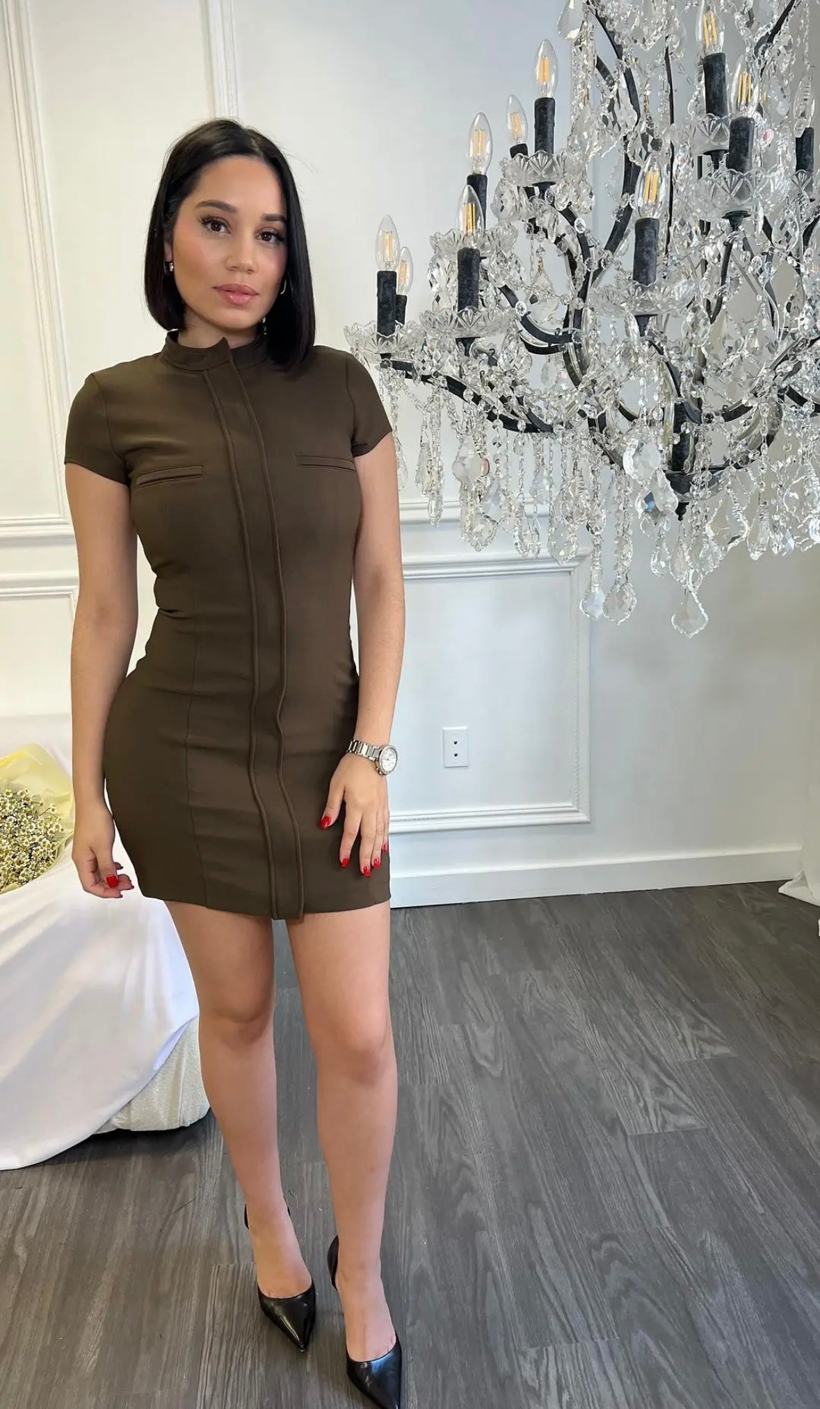 This zipper mini dress offers both a sexy and elegant look, perfect for any occasion. The zipper allows for easy wear and adds a sleek touch while the mini length adds a touch of playfulness. A must-have for any fashion-forward wardrobe.