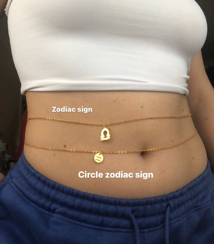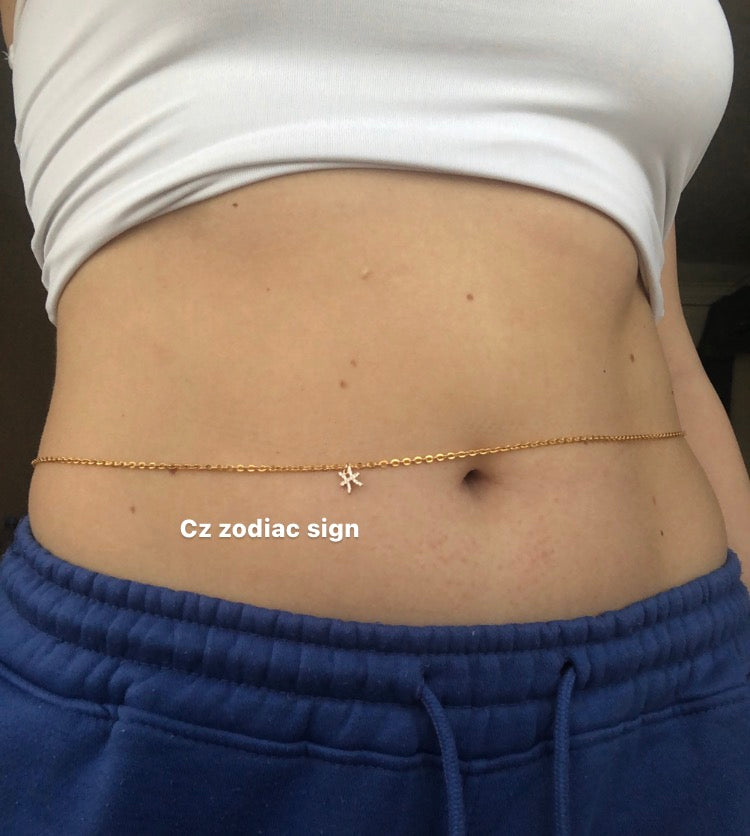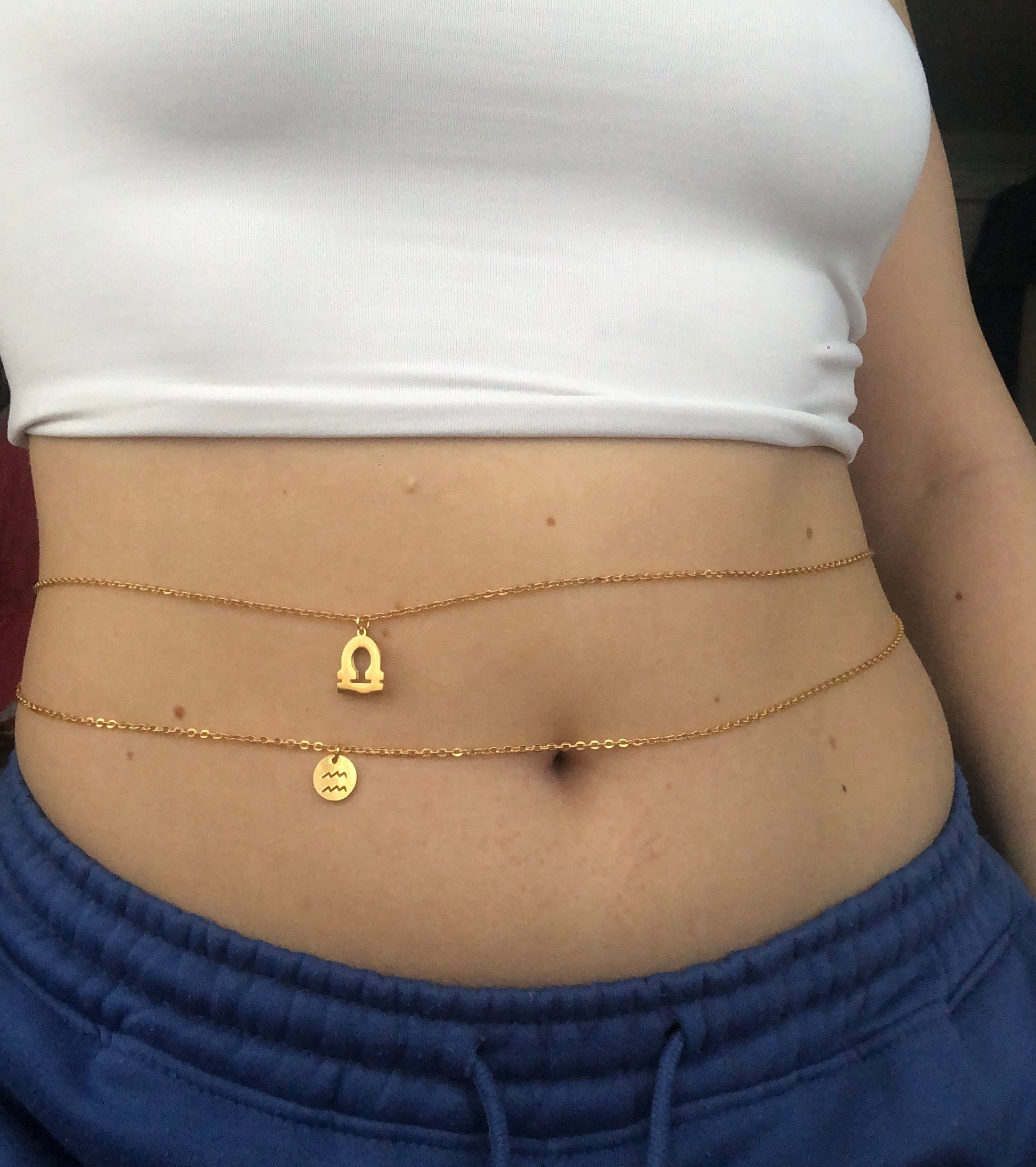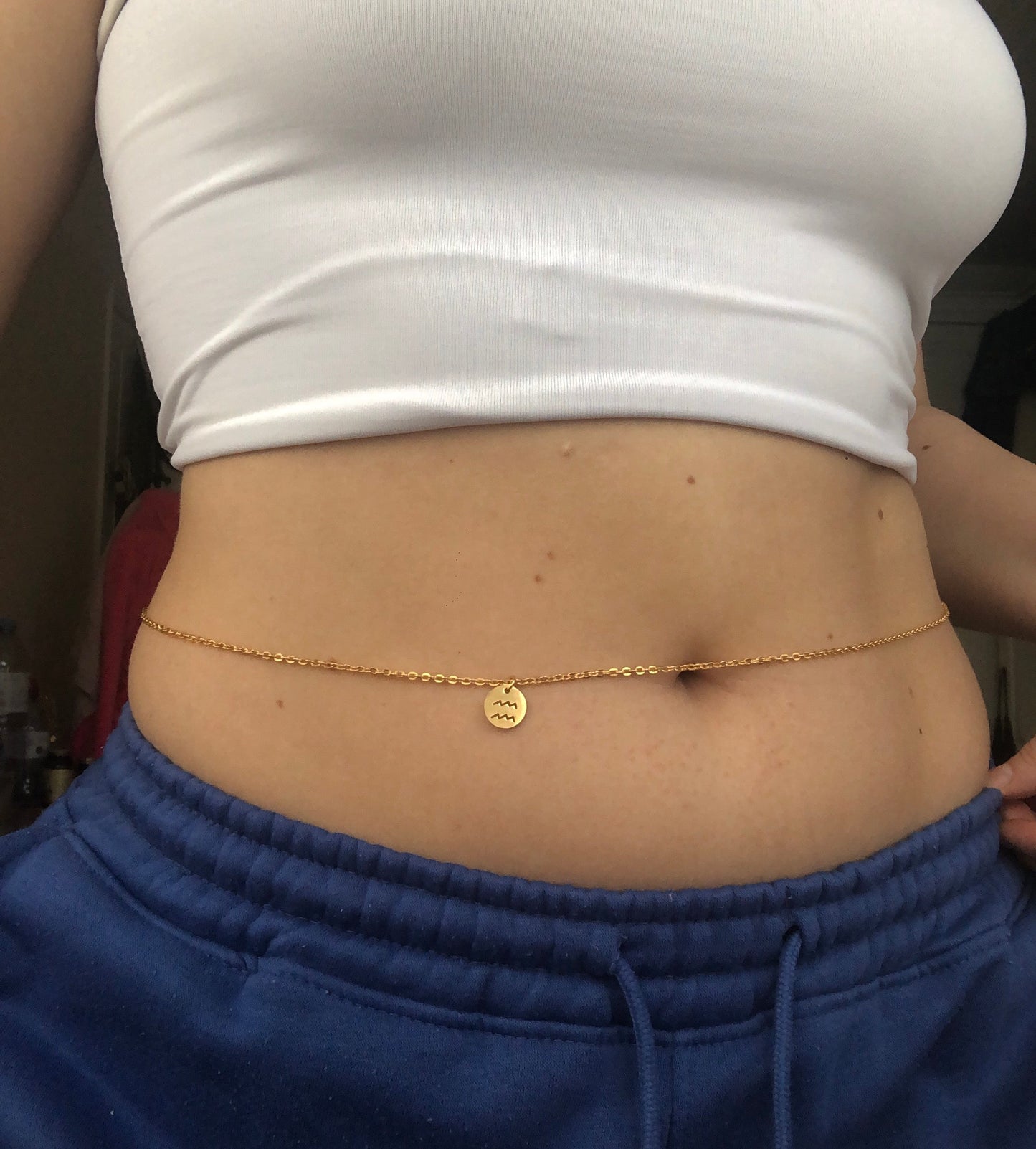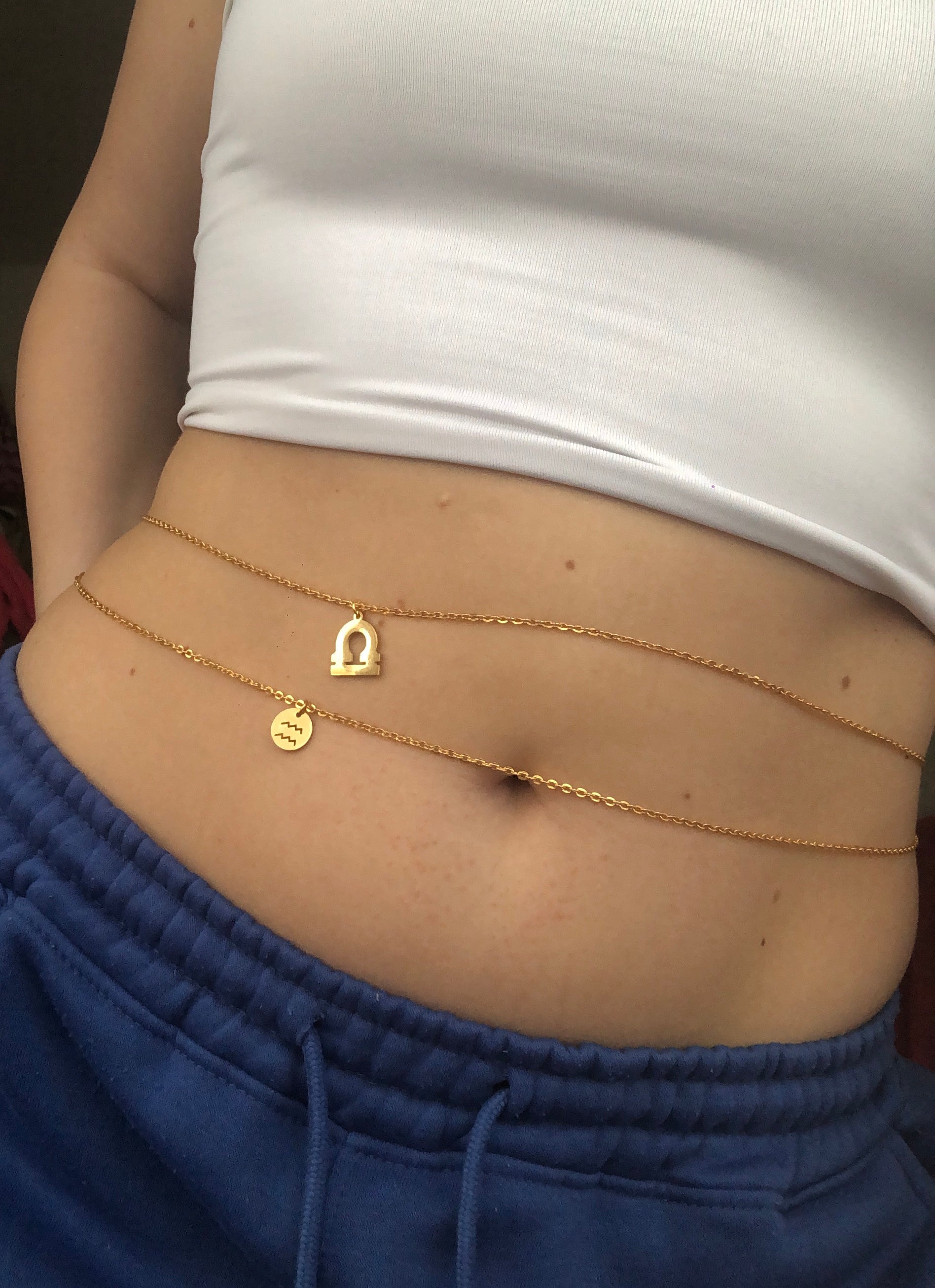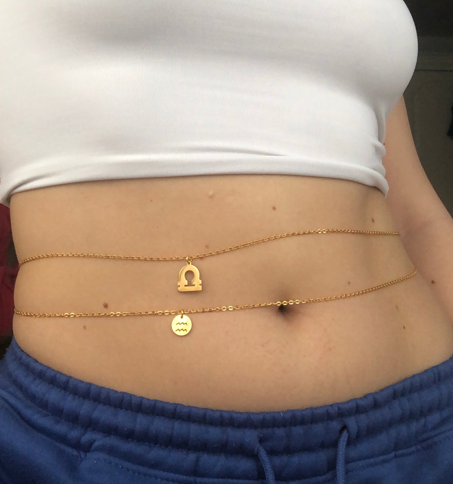 Beautiful handmade belly chain with cute zodiac sign pendant detail.